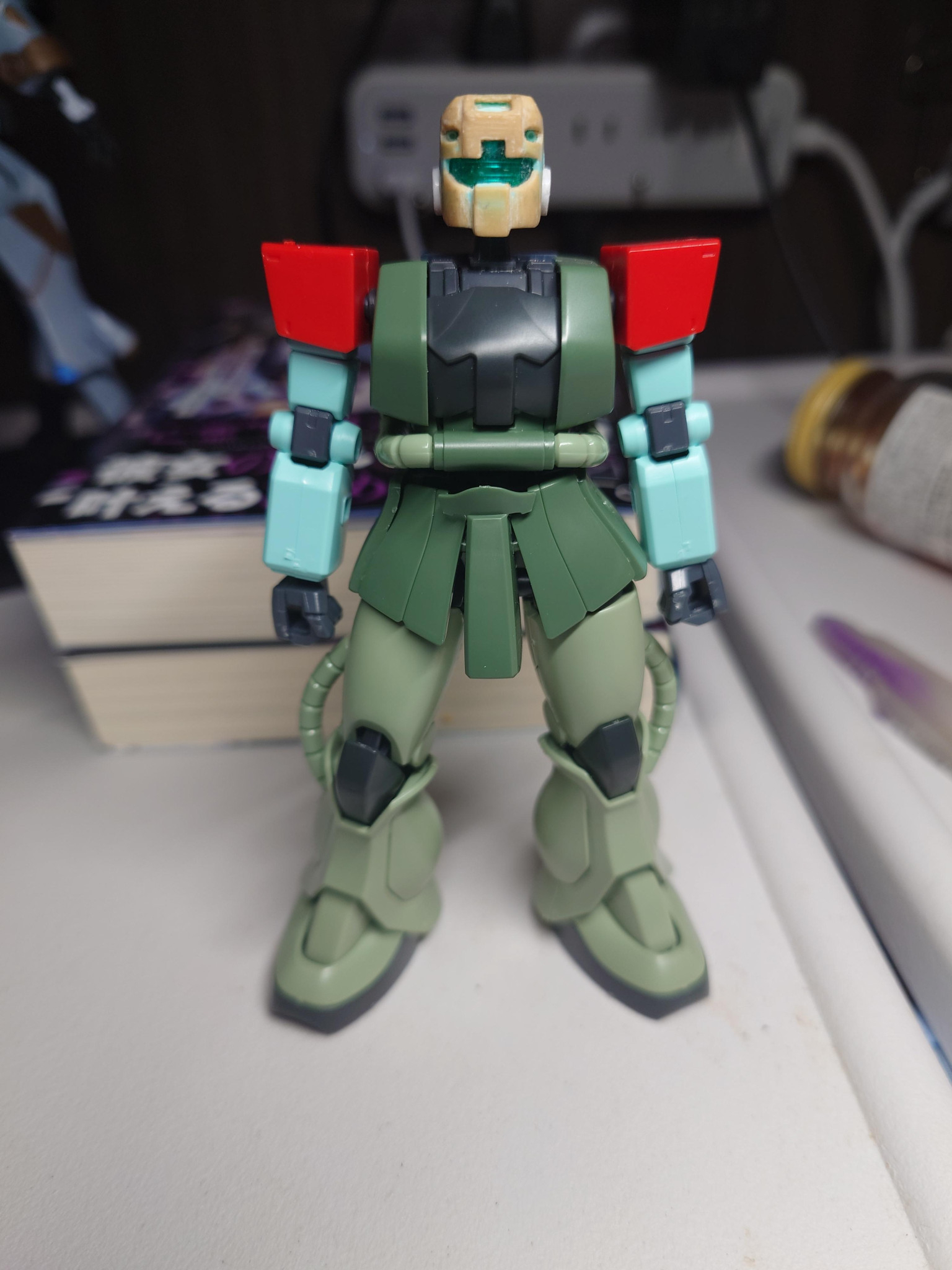 人生2回目のガンプラ改造&塗装。それもあって塗装ミスってたり工作技術甘かったりするけどザニーが手元にあるだけで満足度高し