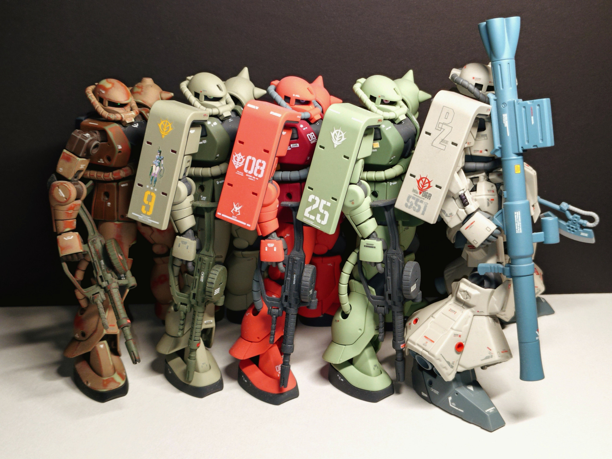 こちらは、元はシャアザクでしたが、丁寧に潰して量産にダウングレードしました。