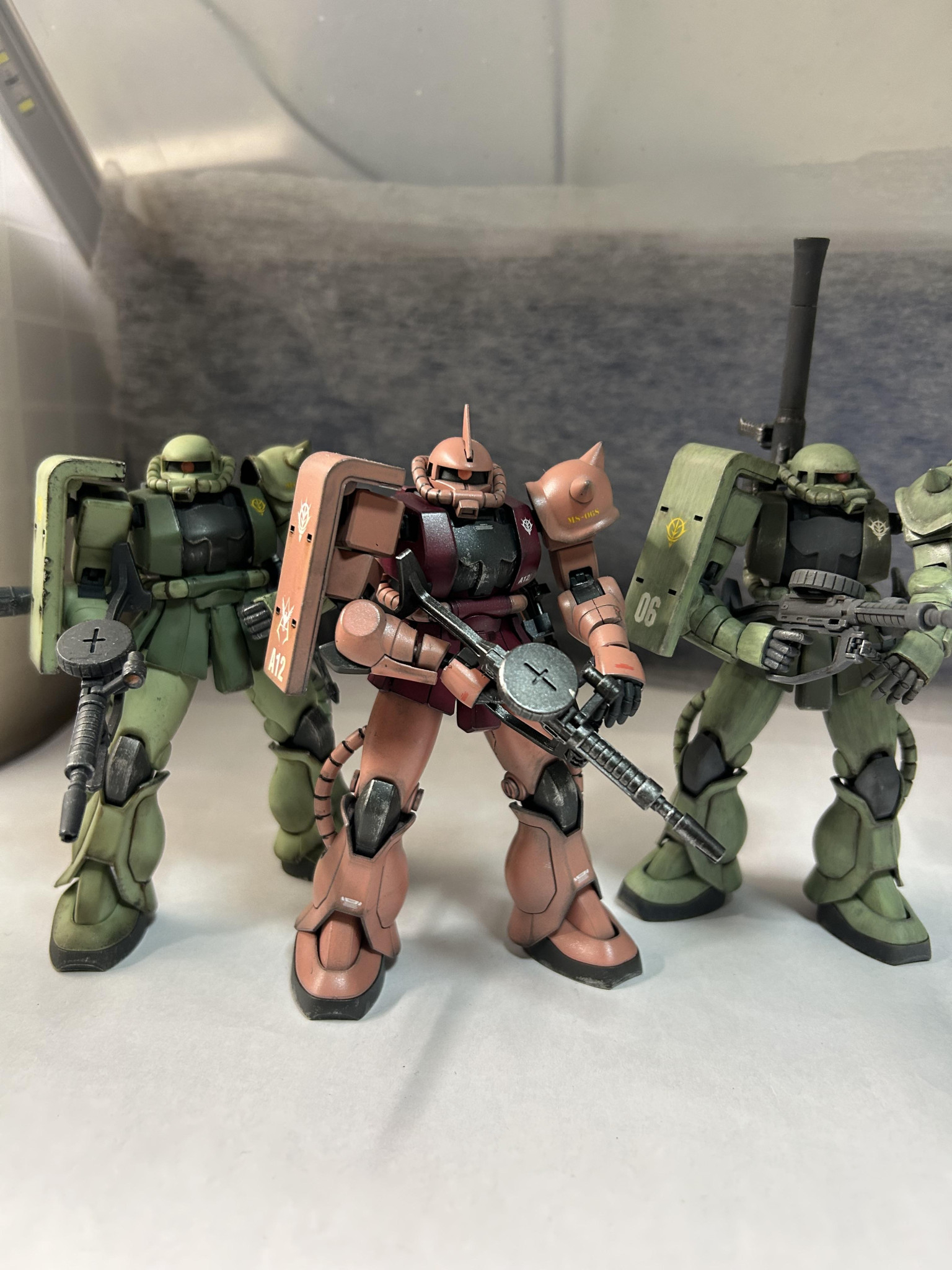 @ich_taka HG 2025.12/30更新 HGザクⅡ 筆塗り 88 41 いいねしたモデラー(41) 0 0 作品を共有 HGザクⅡリバイブ版を筆塗りしました。 今年最後の投稿になります。 ど素人の筆塗りチャレンジ作品になりますのでご容赦ください。清水圭さんの筆塗り目指してやっていますが全く上手くいきません😰展示会行って実物見ると違いすぎます🥲筆塗りのムラをどこまで残していいものか試行錯誤しています。背中のバズーカは余剰パーツを切り取ってバックパックに接着しました。前に製作した成形色ウェザリングのザクⅡと並べてみるとまあどちらも似たような感じ。ザクは何体いてもいいのでまだまだ増やしていきます。 HG ザクⅡ コメント コメントをして応援しよう コメントにはログインが必要です @ich_taka アラフィフになってから始めた初心者です。 7 HG 百式 リバイブ版 HG百式リバイブ版を全塗装しました。 5 HG ZZガンダム HGのZZガンダムを全塗装しました。 5 HGシュツルムガルス HGシュツルムガルスをウェザリング塗装しました。 5 HGキュベレイマークII HGキュベレイマークIIを全塗装しました。 @ich_takaさんのページ この作品をお薦め作品に設定する Please login to update your profile! Please login to update your profile! Please login to update your profile! Please login to update your profile!
