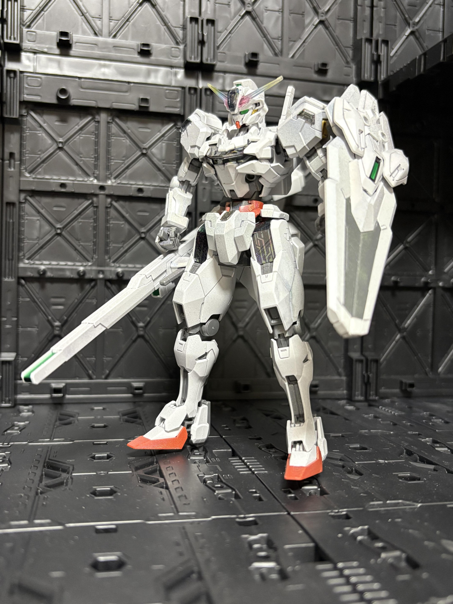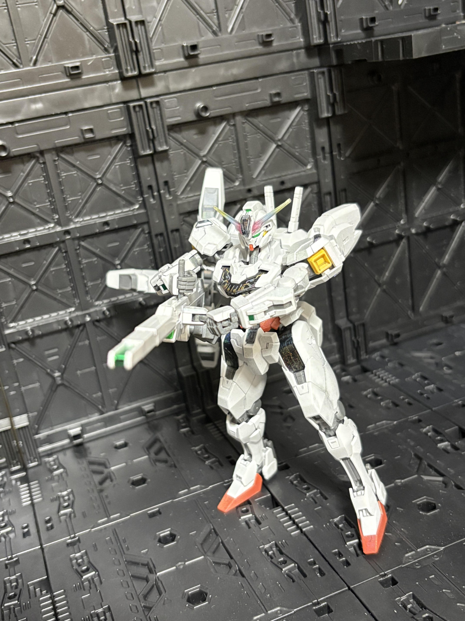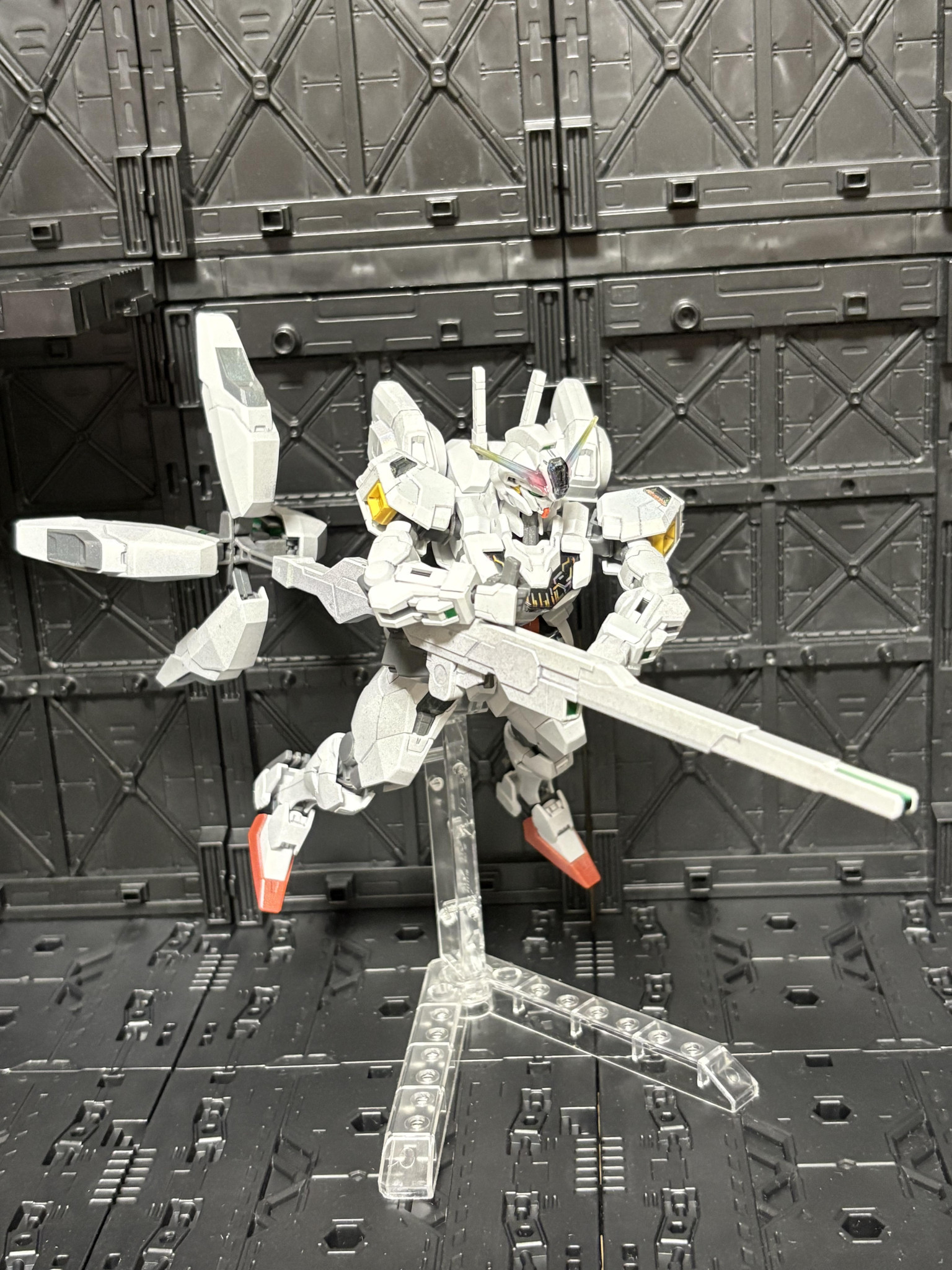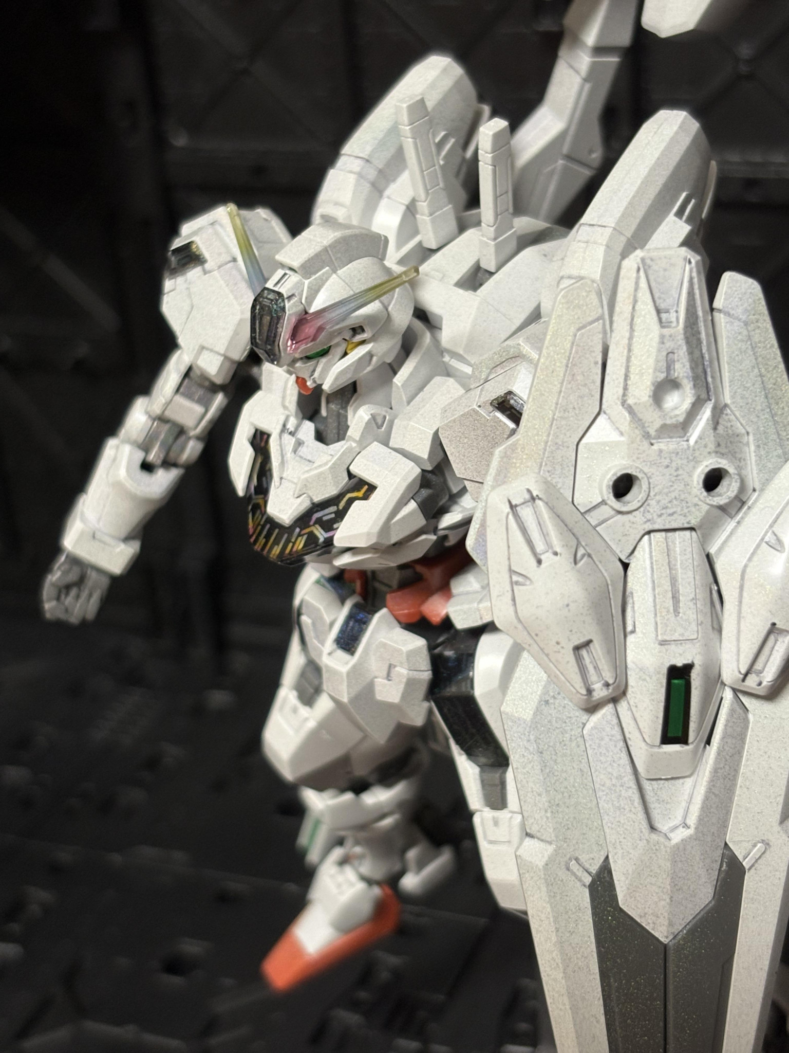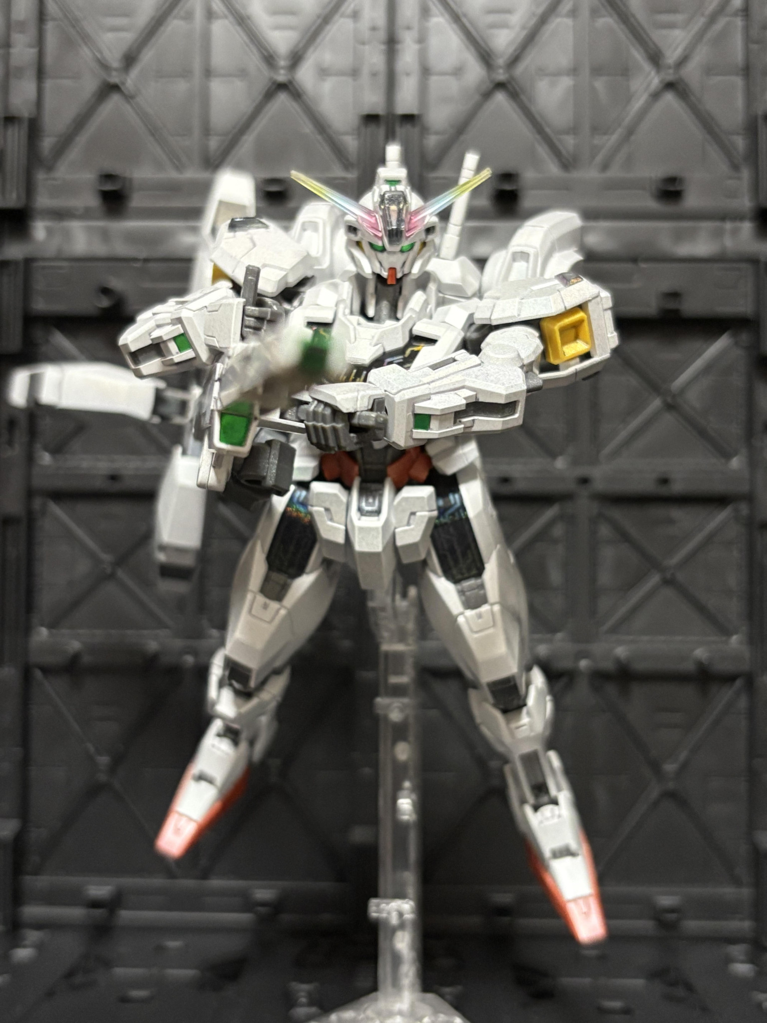 虹色のホログラムがいい感じの塗装で素晴らしいですね🤩しかも、綺麗なキャリバーンと愛称抜群(gundam-kao3)キャリバーンのもともと持ってる美しさをさらに引き立てましたね(gandam-hand2)
