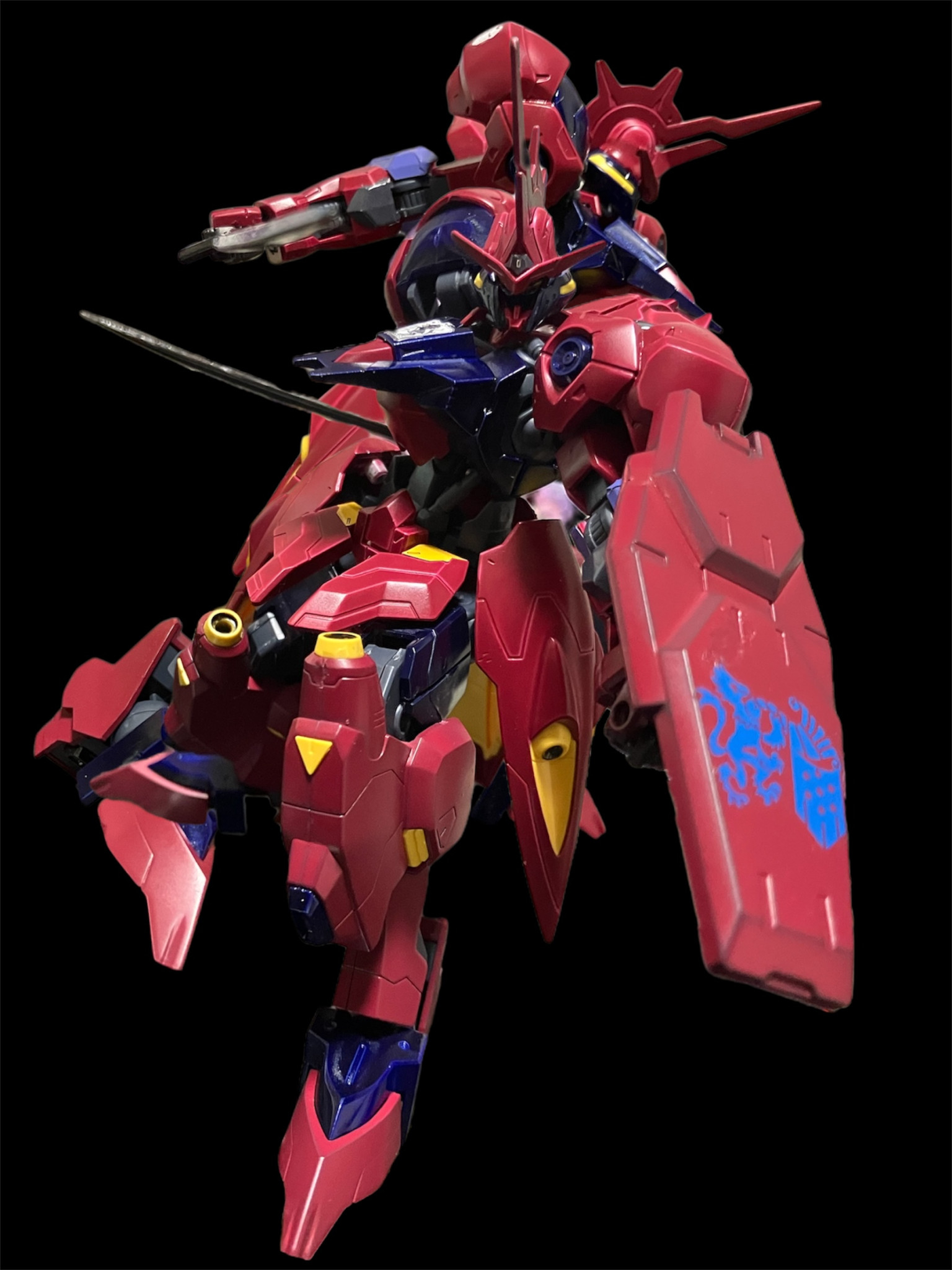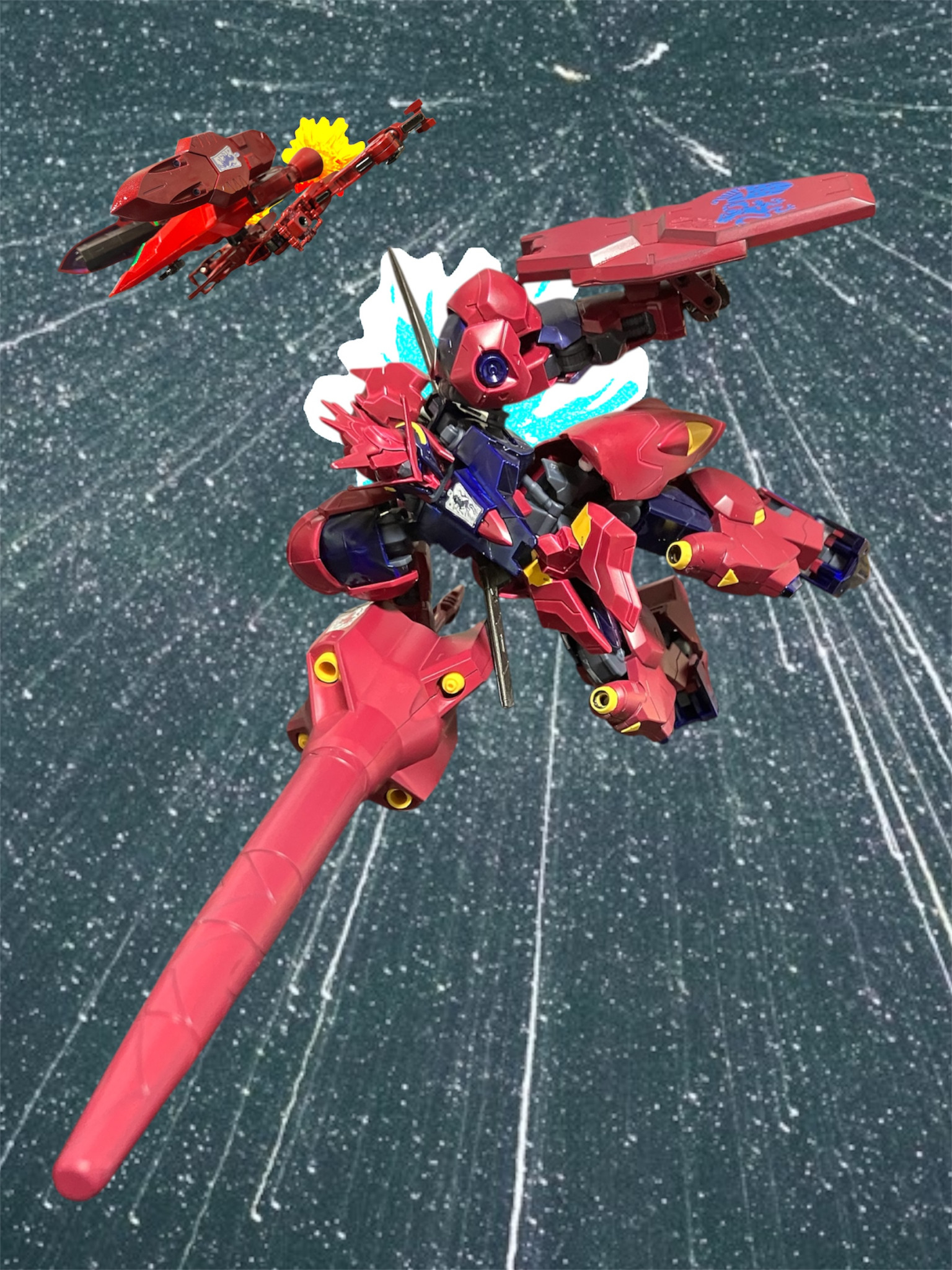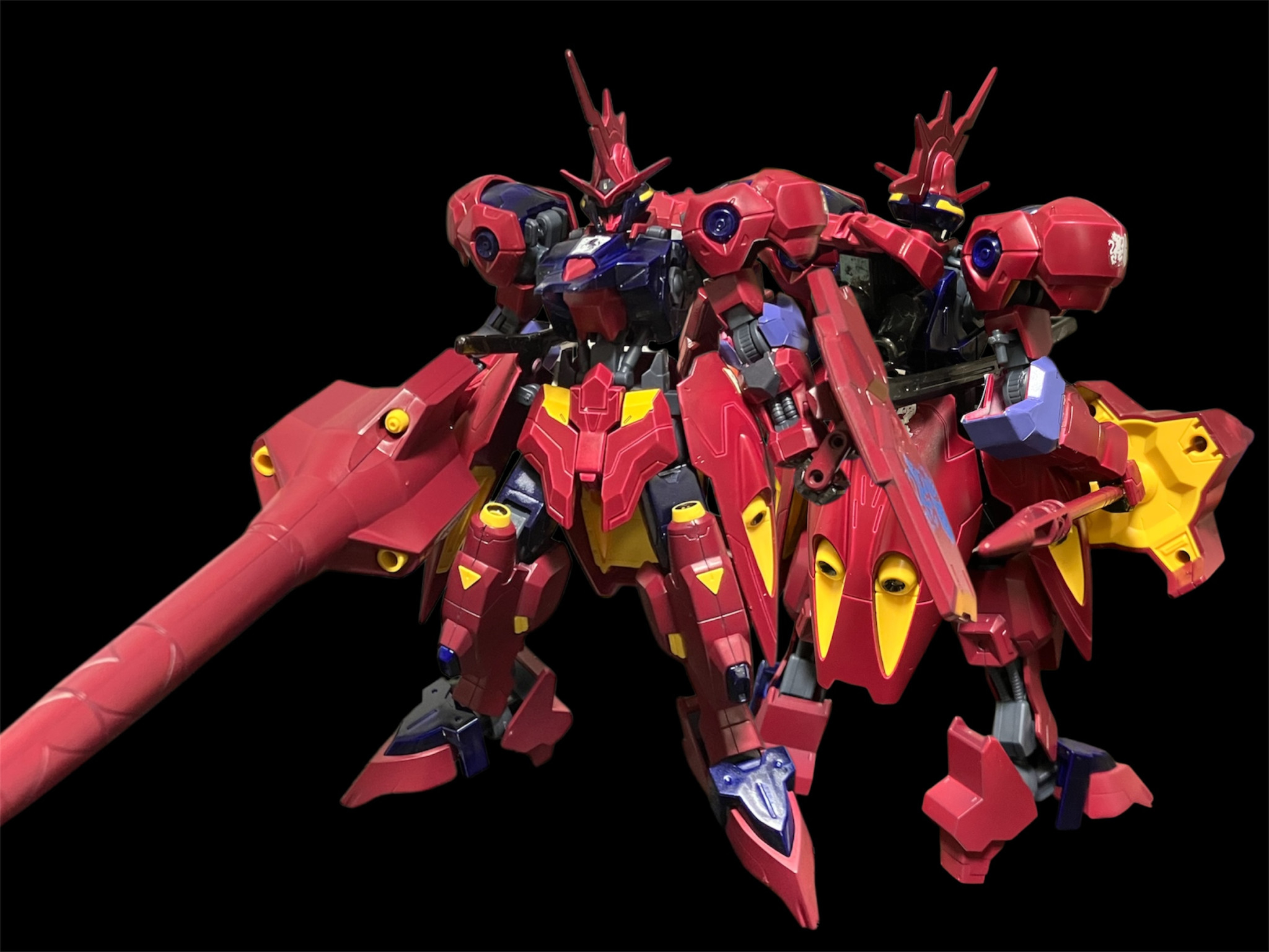 キマリス・ロッソ^_^キマリスヴィダールを改修した機体で、背部アクティブバインダーをスラスターノズルに交換するなど細かい強化措置を施してます。
