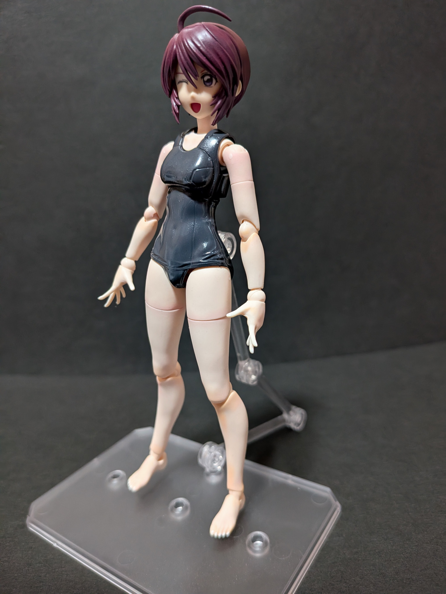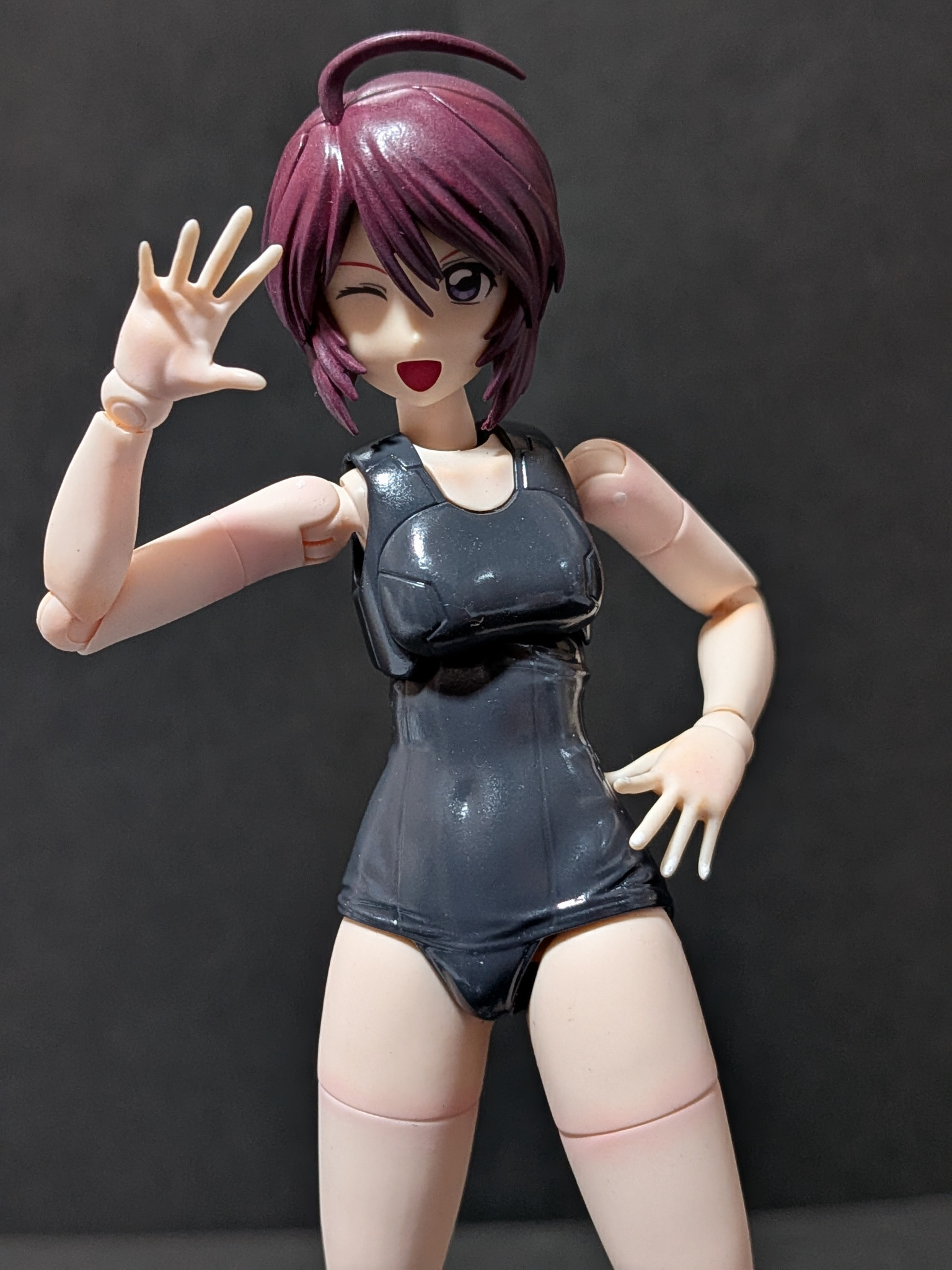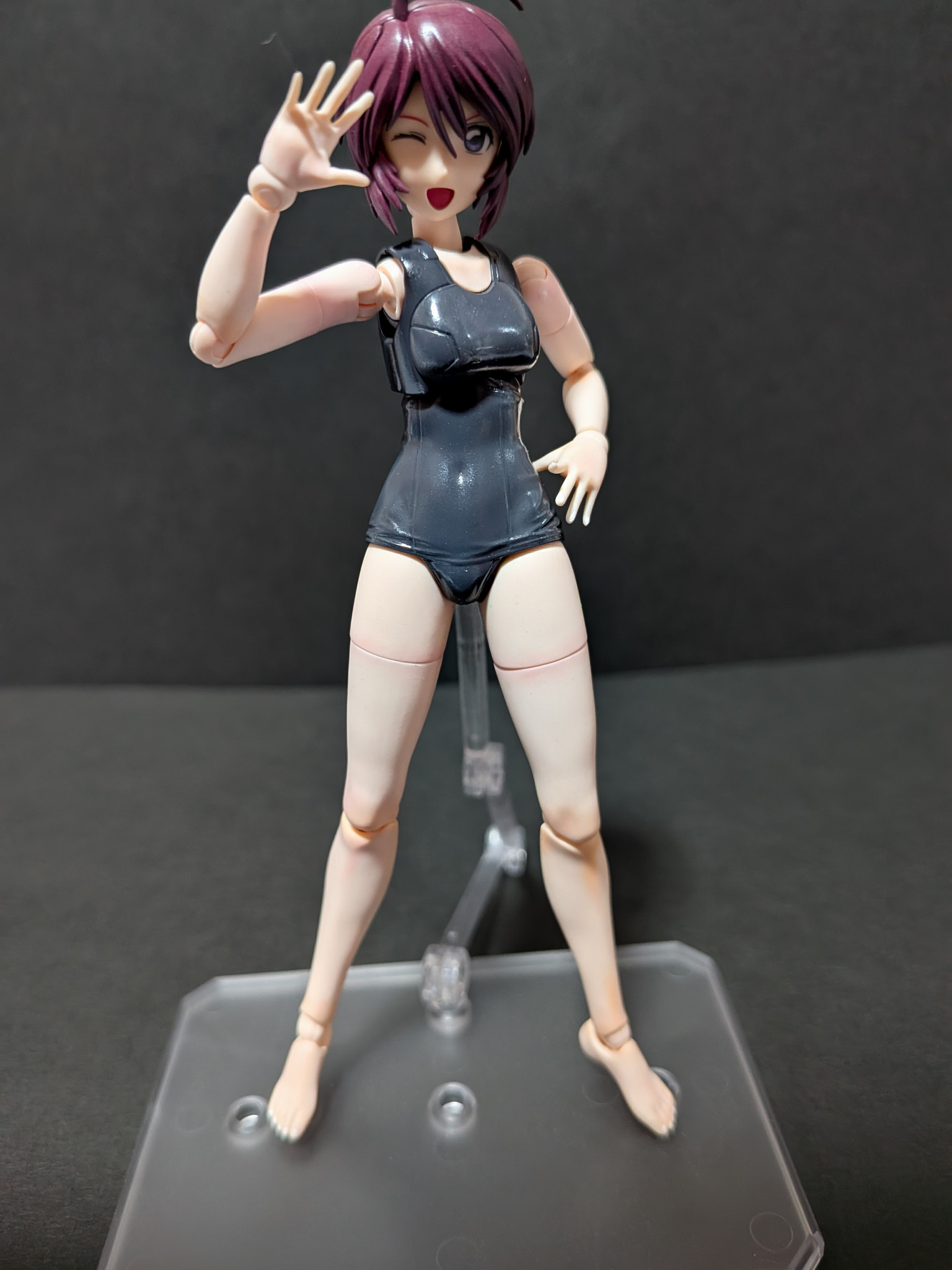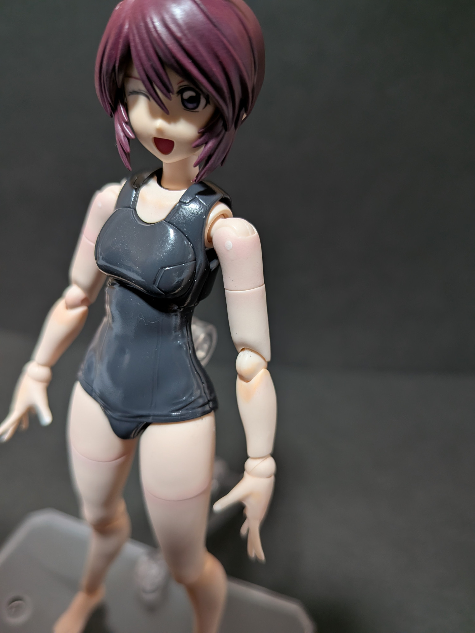 水着部分はMSファントムグレーで塗装し光沢吹きました。最初少し白濁しましたがストーブの温風で白濁がなくなりました。