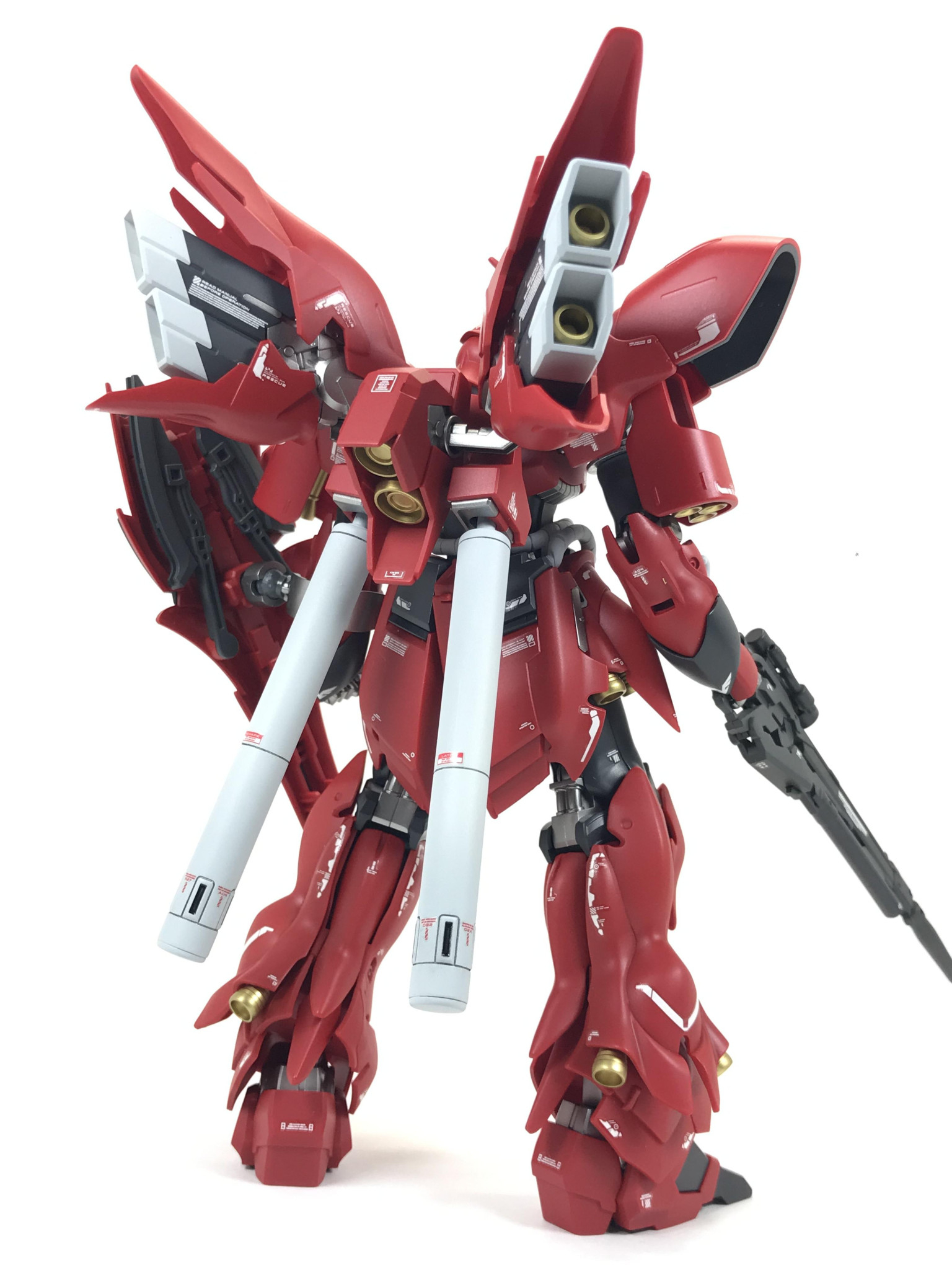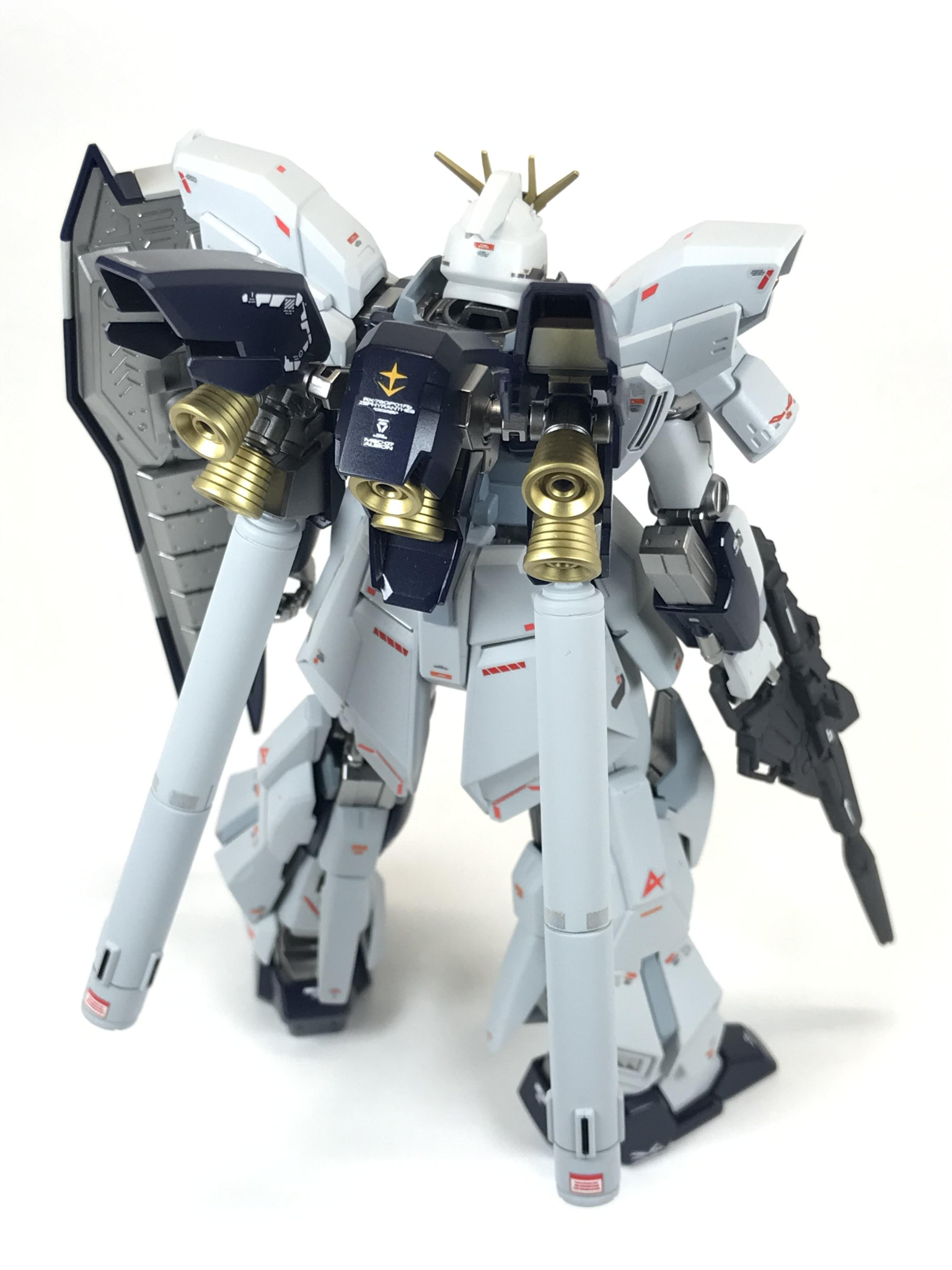 バックショットです。こちらもノーマルのままです。シナンジュとフォルムは同じですが、角張ったデザインなので、いかにも連邦系という感じがしますね。