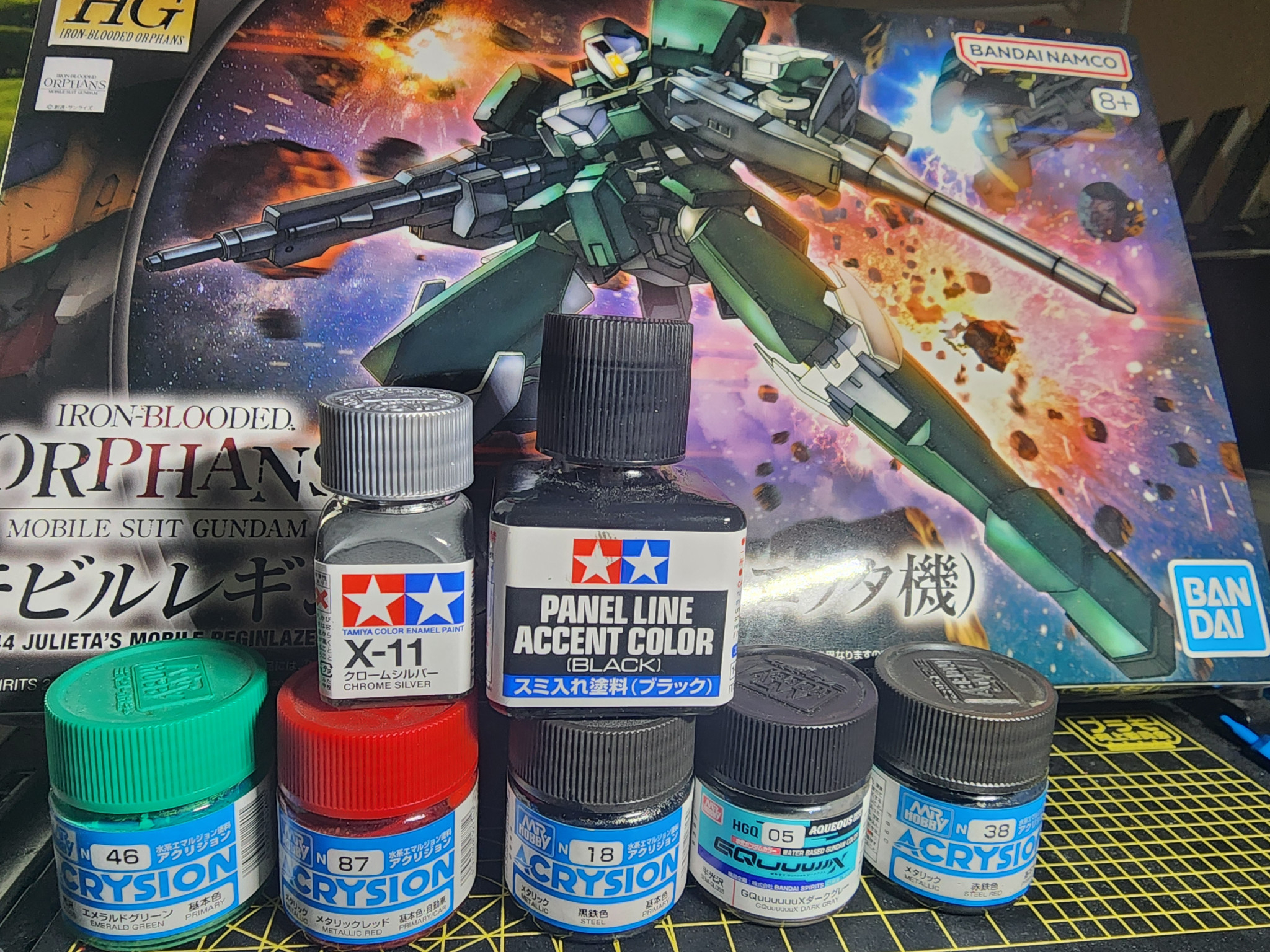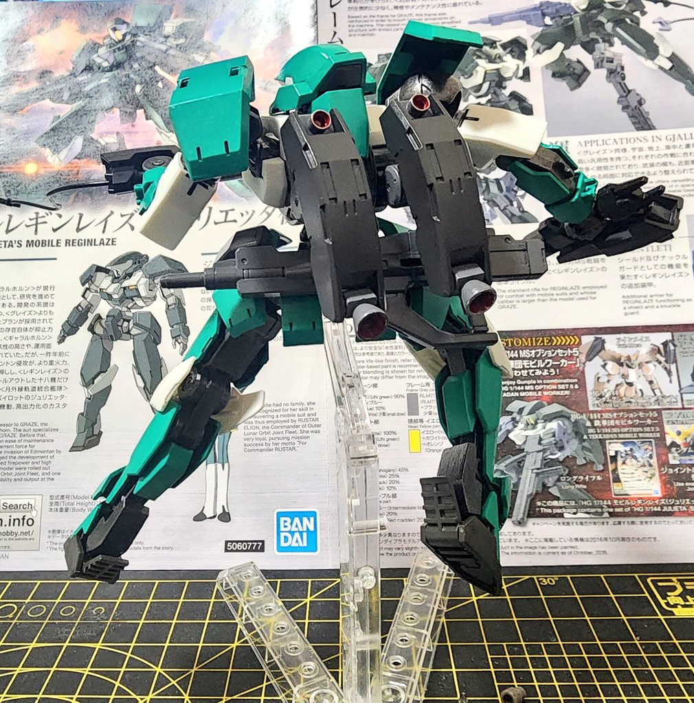モビルレギンレイズ(ジュリエッタ機)成型色がこいめのグリーンだったので外装はエメラルドグリーンに塗りました