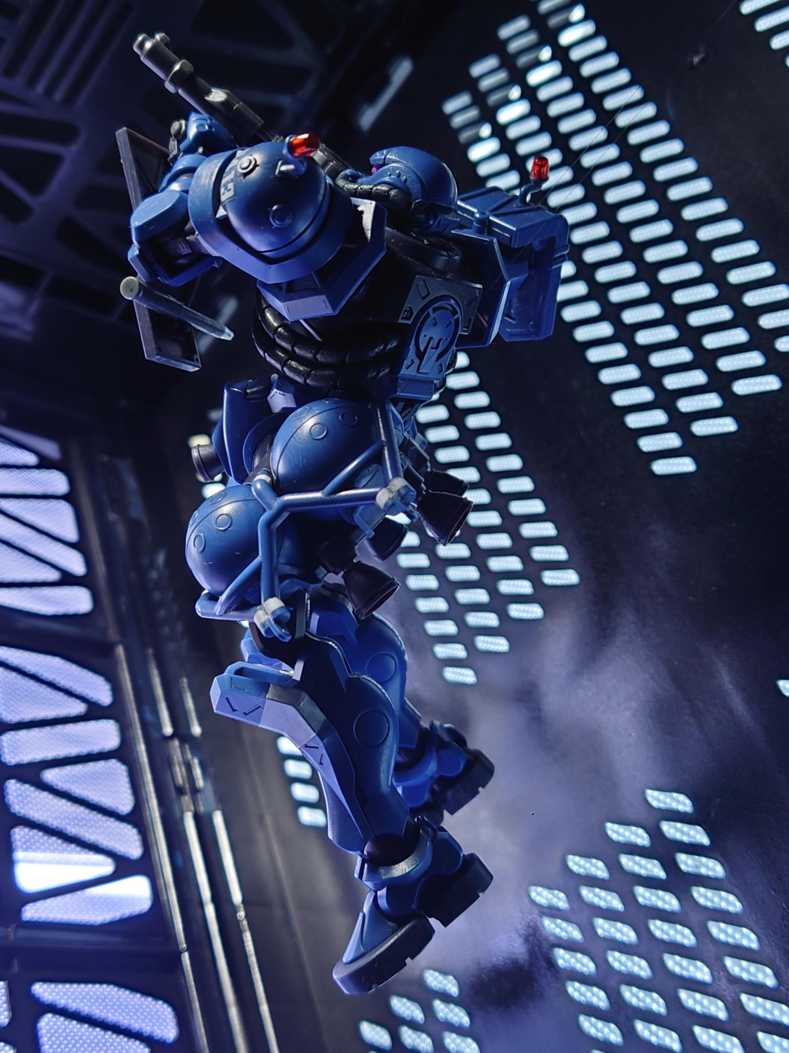 ガンダムが頭部グルリしたけど、ザクならば下半身に推進器が集中しているので、上半身グルリで射撃が理にかなってると思った。実際にガンプラはグルリできるし、推進軸が安定してたりもする。ベテランとかならやってたかも。