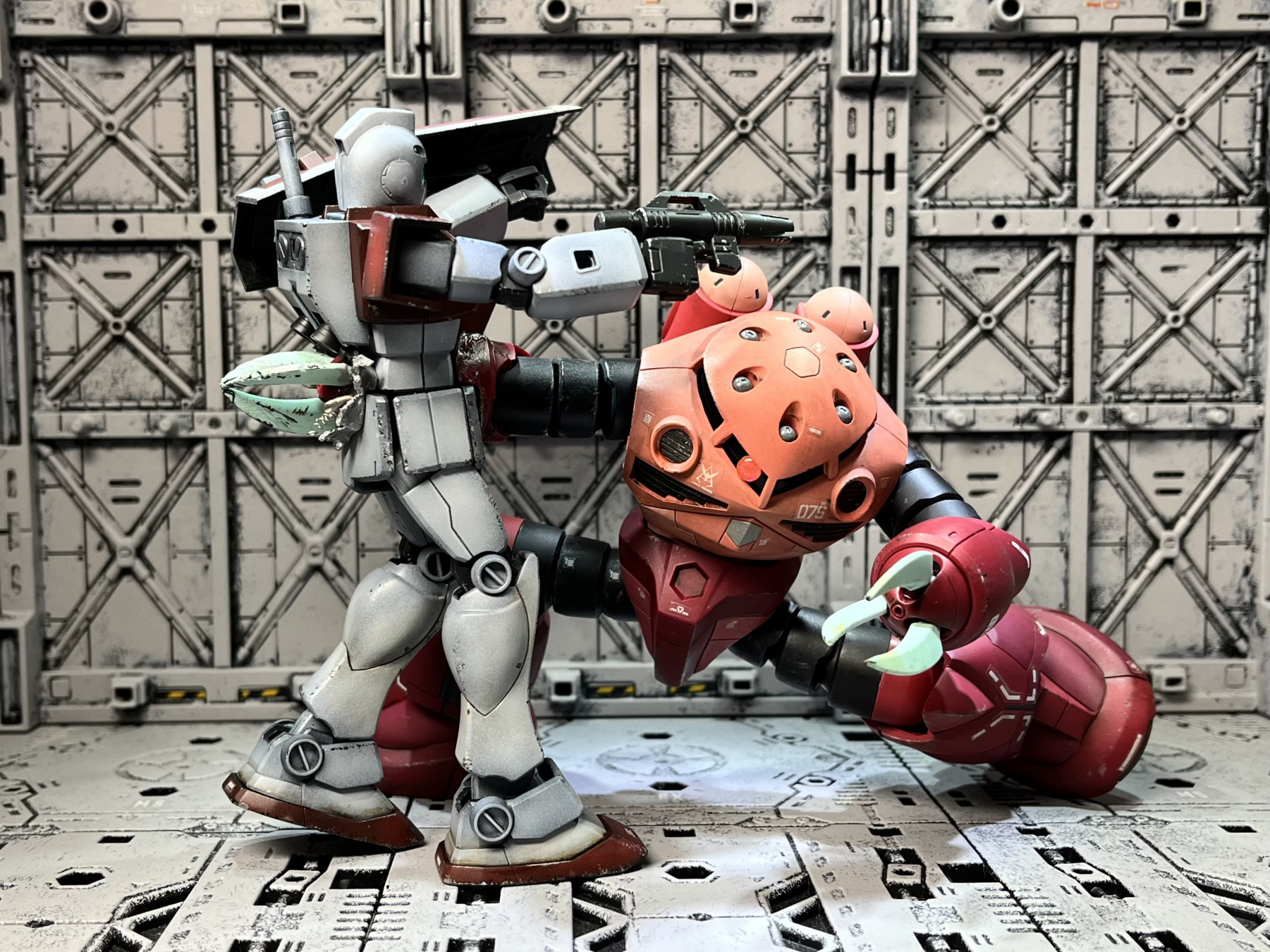 アムロ ナミエ HG 2025.12/31更新 ジャブローに散る!名シーン再現 88 54 いいねしたモデラー(54) 4 0 作品を共有 ようやくHGUCジムが手に入ったので、以前作ったズゴックとお手合わせ。 作ったばかりのジムに穴を開けたくなかったので、ジャンクパーツのズゴックの腕だけ入手して、分割してジムのお腹と背中の形状に整形して両面テープで貼り付けています。リアルだと、こんなふうにならないとは思いますが、まあ雰囲気ということで😅 コメント コメントをして応援しよう コメントにはログインが必要です cinnamon-1 2時間前 めちゃリアル🤩 凄い迫力‼️ アムロ ナミエ 52分前 ありがとうございます! ズゴックがカッコよく見えるようポージングさせてみました😊 ニャア軍曹 3時間前 アムロさんっ! ジムのめくれ感が超リアルっす🤤✨✨ ヨダレが止まりませんっヽ(´エ`)ノ✨ アムロ ナミエ 49分前 ありがとうございます! どうやったらそれっぽく見えるか、プラ板貼ったりパテ持ったりハンダで溶かしてみたり…いろいろ試してたら、何となく形になりました♪ アムロ ナミエ 老化防止のため2025年春からガンプラ製作を始めた還暦間近のジジイです。 3 HGUCアッガイ 念願のHGアッガイ入手できたので、早速作りました。 2 セイラ専用軽キャノン ファースト世代のジジイは、このカラーリングに惹かれました♪ … 2 HGUC ガンキャノン 全体的に明るいカラーリングにしました。 初心者なりに、見よう… 2 万博終了 結局、行けないまま万博終了しちゃいました。 ガンプラでも眺め… アムロ ナミエさんのページ この作品をお薦め作品に設定する Please login to update your profile! Please login to update your profile! Please login to update your profile! Please login to update your profile!