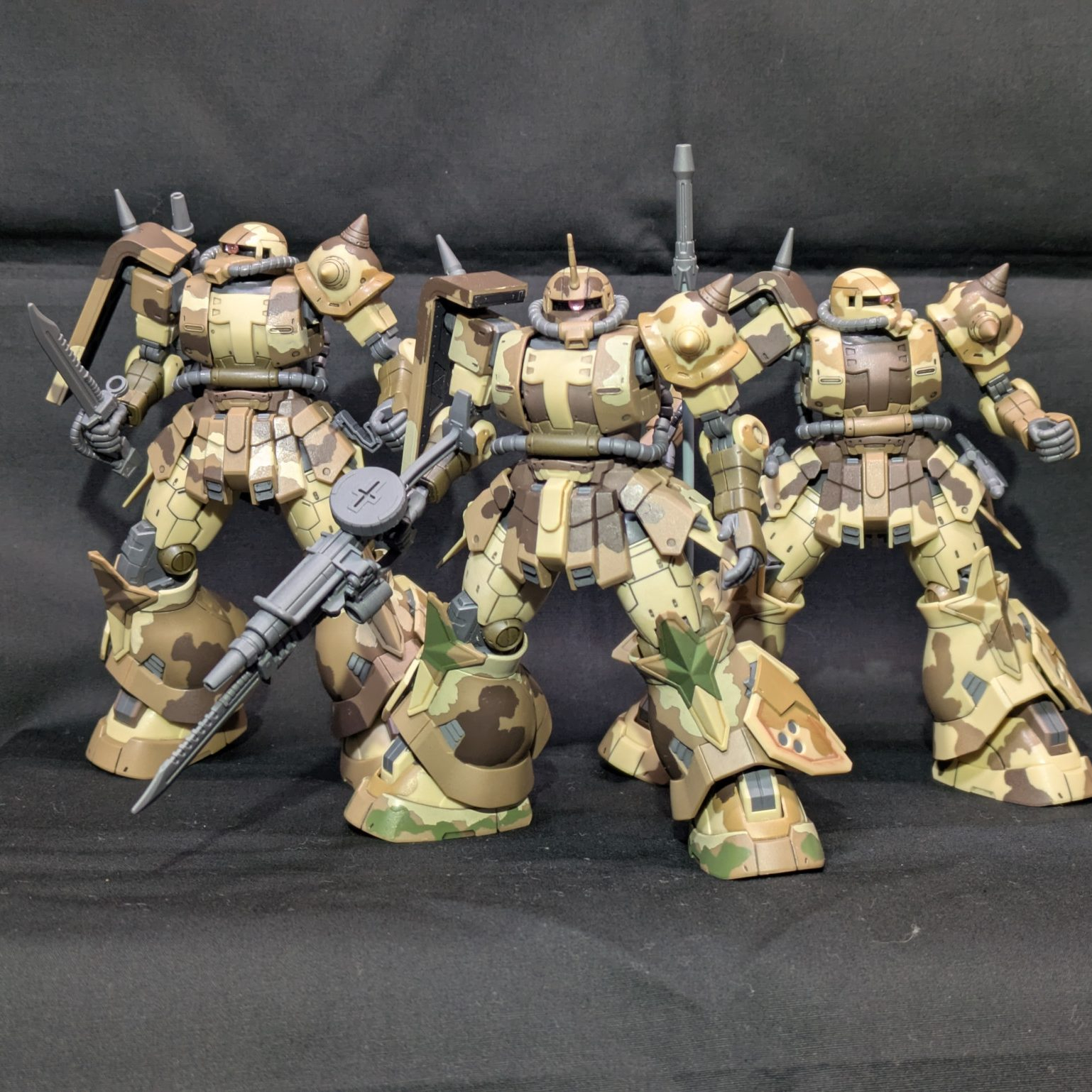 さなだむつき HG 2025.12/31更新 HG サザンクロスザク 72 55 いいねしたモデラー(55) 0 0 作品を共有 サザンクロスザク3体揃ったのでアップしまーす。やはりザクは並べてなんぼですよねえ。 隊長機エグバ機。迷彩、当初デカールでやろうとしましたが曲面に馴染まず破れてしまったので、塗装でやっております。ダナン機。成形色に迷彩塗装の簡単仕上げです。デカールで困った皆さんも塗装すると簡単でいいすよ。サンホ機。コイツザクばっか作ってんな?(n回目) サザンクロスザク、まだ1個あるので(最初部下機が出ると思ってなかったので)また何かやりたいですね。 コメント コメントをして応援しよう コメントにはログインが必要です さなだむつき ストレート組み+小改造、筆塗りメインのおじモデラーです。量産機大好き。近年塗装技術のバリエーションが増えてきて楽しいです。 8 HG1/144 ジョニーライデン専用ゲルググ プレバンのジョニゲルです。 スジ彫り工作でシンプルに制作しま… 10 HG ガンダムファラクト HGファラクト完成しました。 ペイル社、ロシア感あったので限… 12 HG ガンダムキャリバーン 全身に差し色でグレー入れています。難しいことは何もw 14 MG1/100 FAガンダムTB サンボルFAガンダム、ラストセッションver.をダメージモデ… さなだむつきさんのページ この作品をお薦め作品に設定する Please login to update your profile! Please login to update your profile! Please login to update your profile! Please login to update your profile!