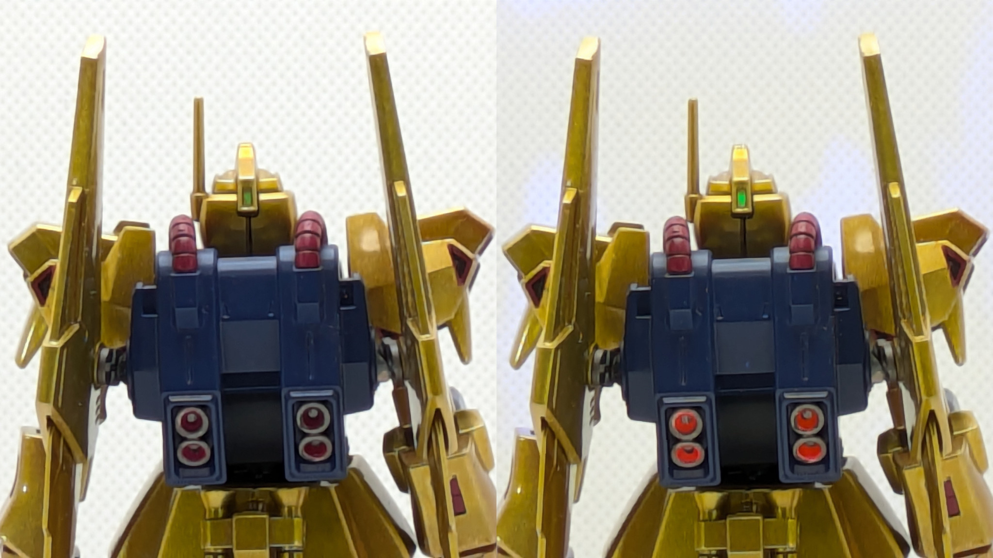 あとは背面カメラとバックパックのスラスター部分も光るようにしてます。