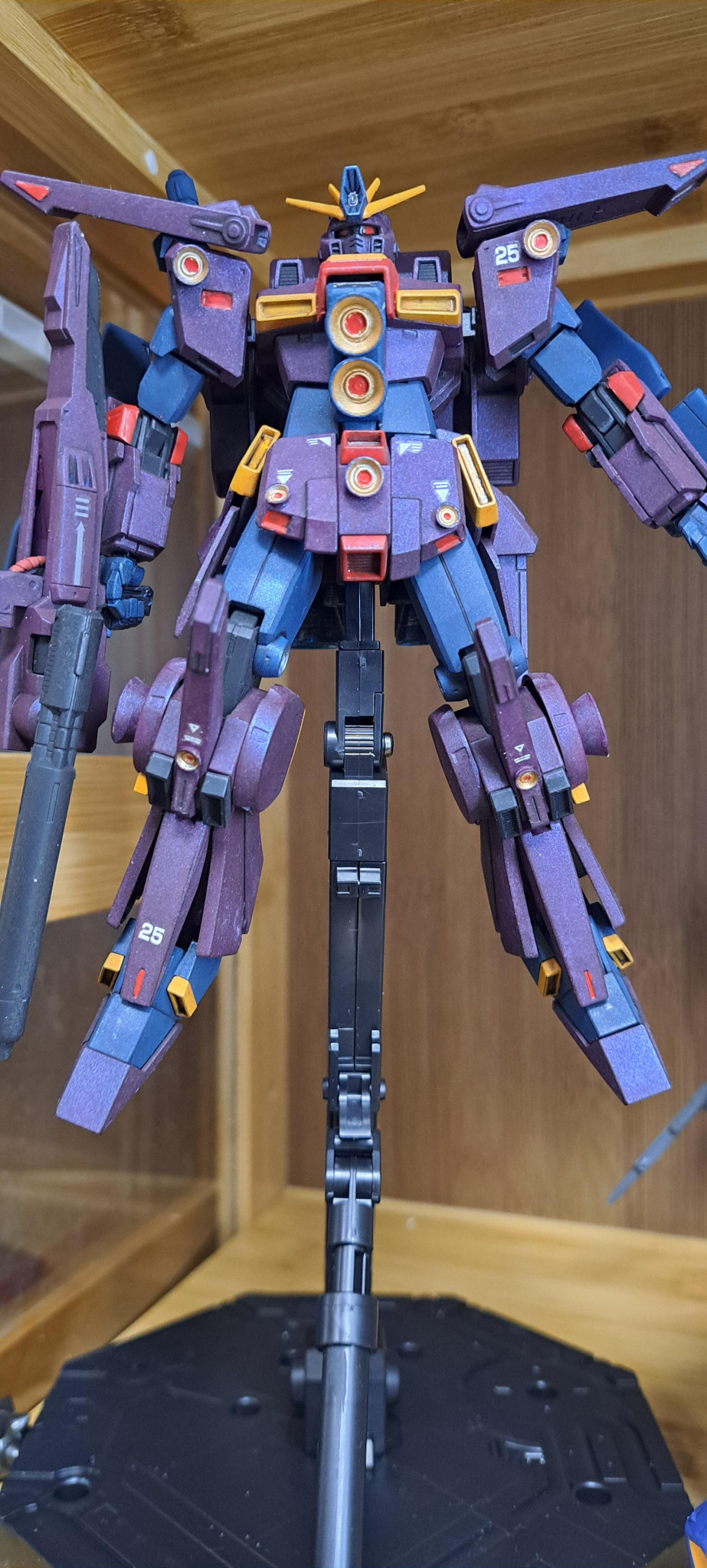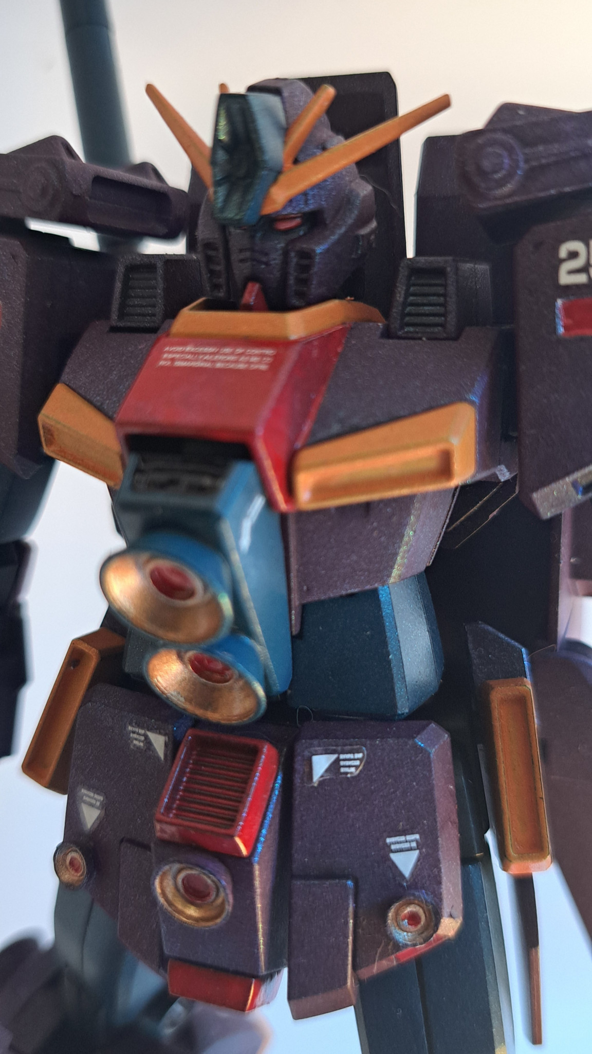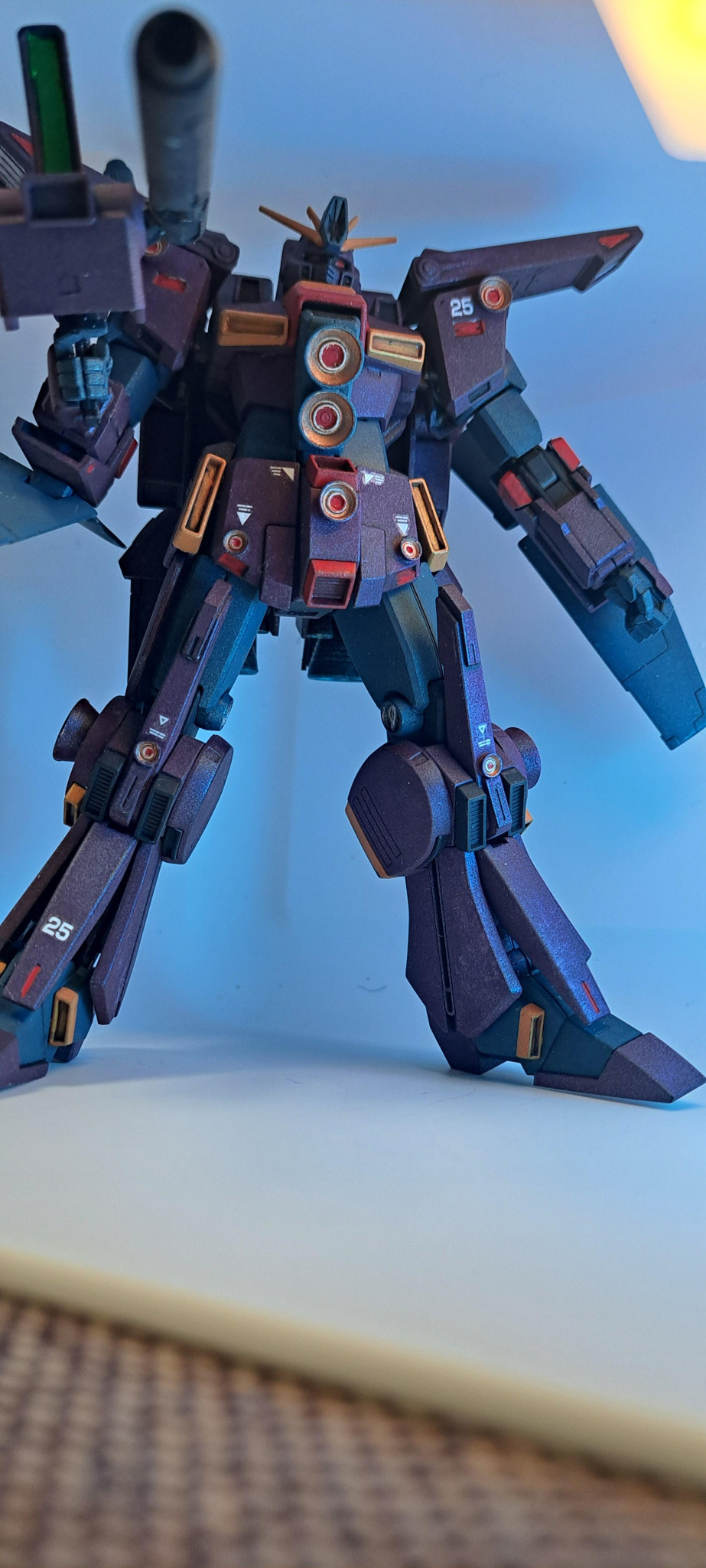胸と肩、あとスカートと膝、ふくらはぎにブースターを接着して拡散メガ粒子砲にしました。
