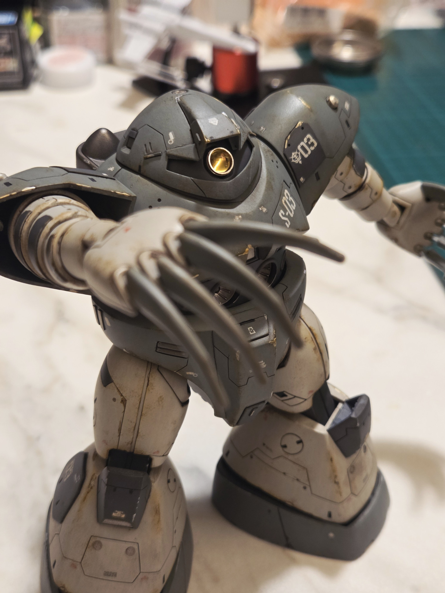 このキットは半年前に購入していましたが、脚部の処理をしたところで自分の好みのスタイルにどう仕上げるか思いつかず、引き出しにしまい込んで忘れてしまっていました。本当に申し訳ないです。