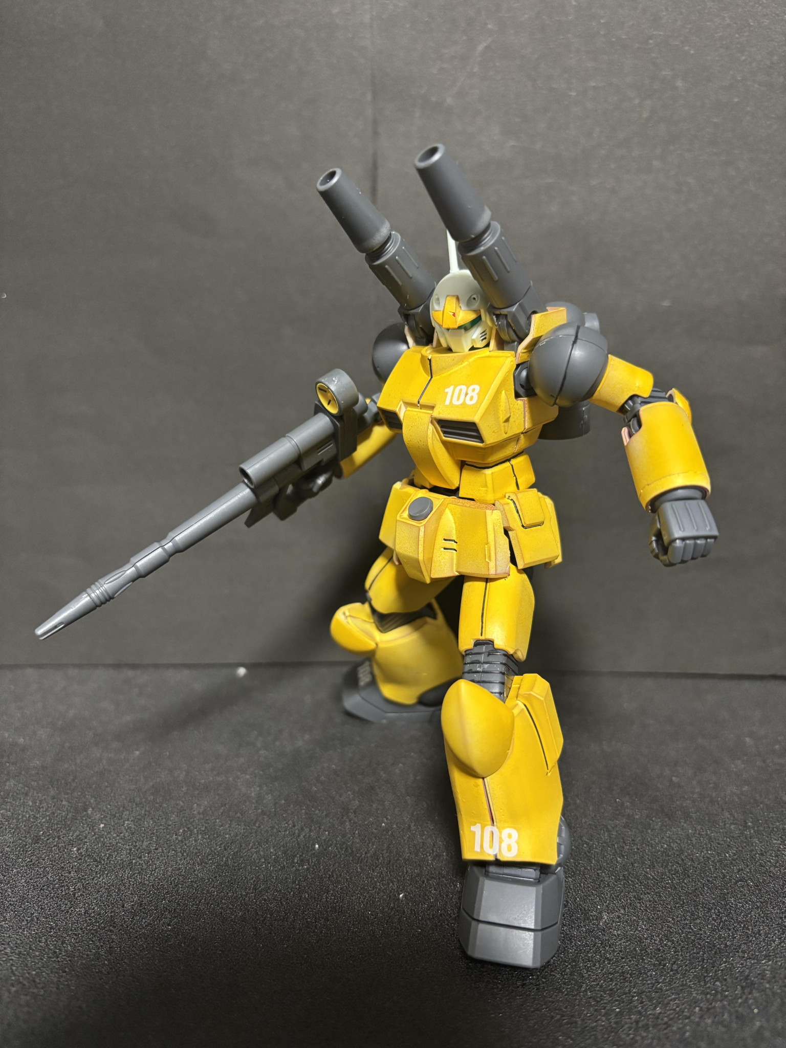 塗装はクリア以外はガンダムマーカーエアブラシシステムになります。なかなかイエローが思ったように色がのらず、2度吹きしましたら塗膜が厚くなりすぎて噛み合わせがうまくいかない所が出来てしまったのが反省点です。