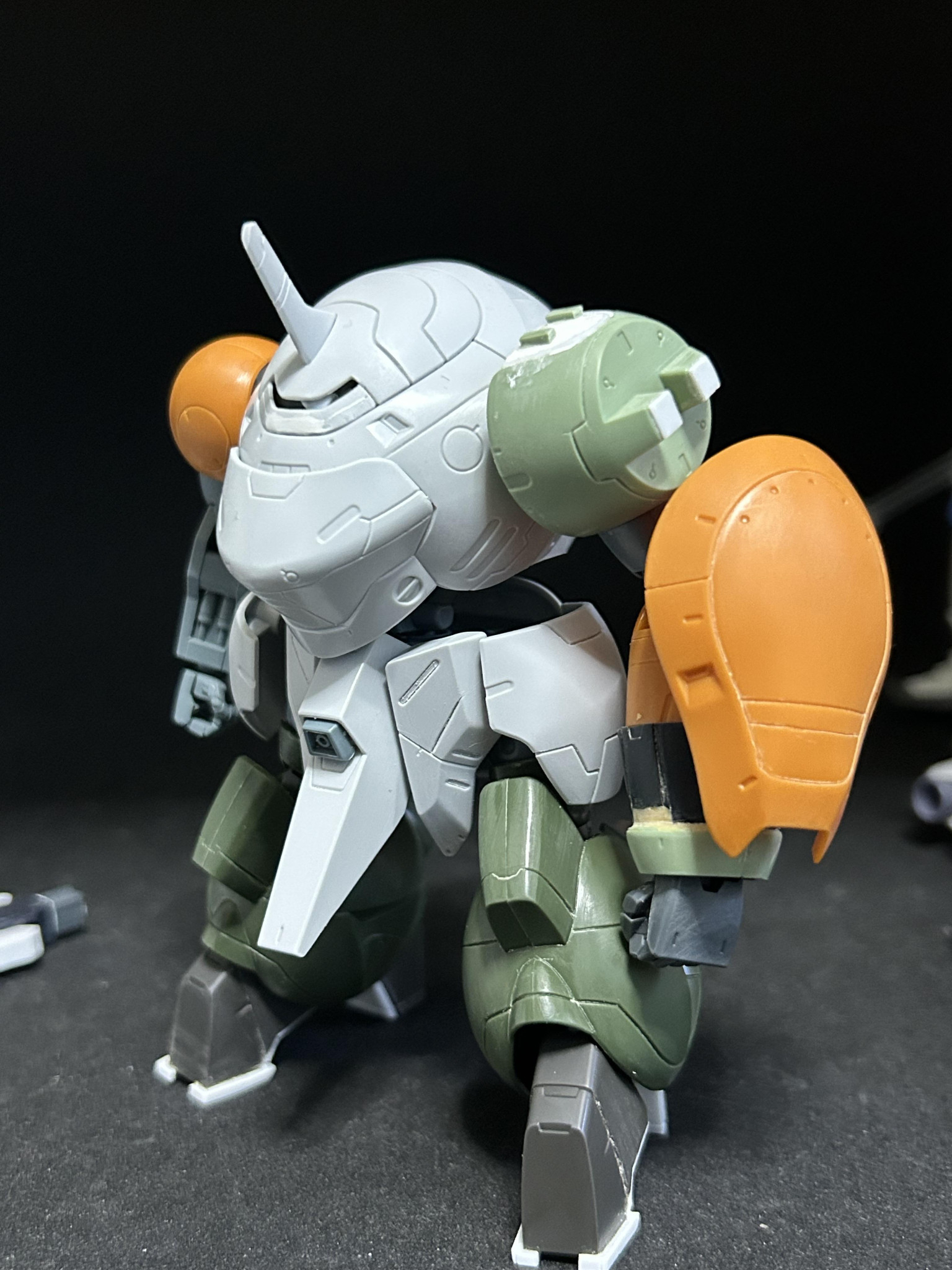 今回のロディはほぼモンキーロディを使っていますがプラ板で足やモノアイ部分を少し変えたり左腕を一部マンロディに変えたりしてます。