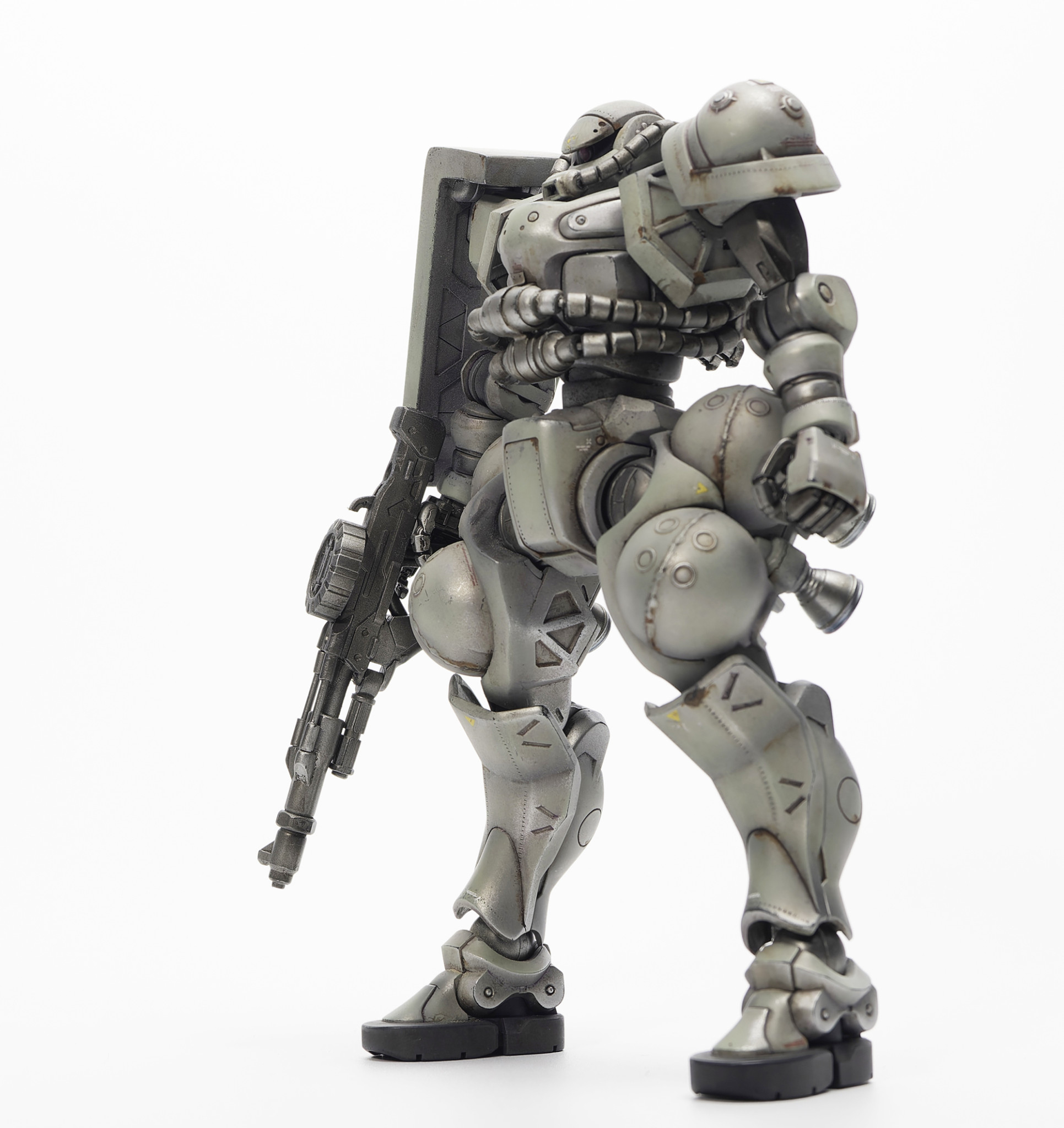 ガンダムというよりは士郎正宗の作品に出てきそうな感じだったので、アップルシードのランドメイトっぽいイメージにスチームパンク的な風味で制作しました。