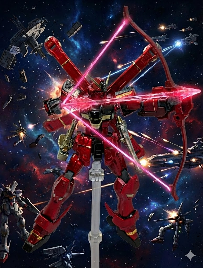 キットにはビームエフェクトの弦と矢が付くのですが、構えられませんで、ここは!!