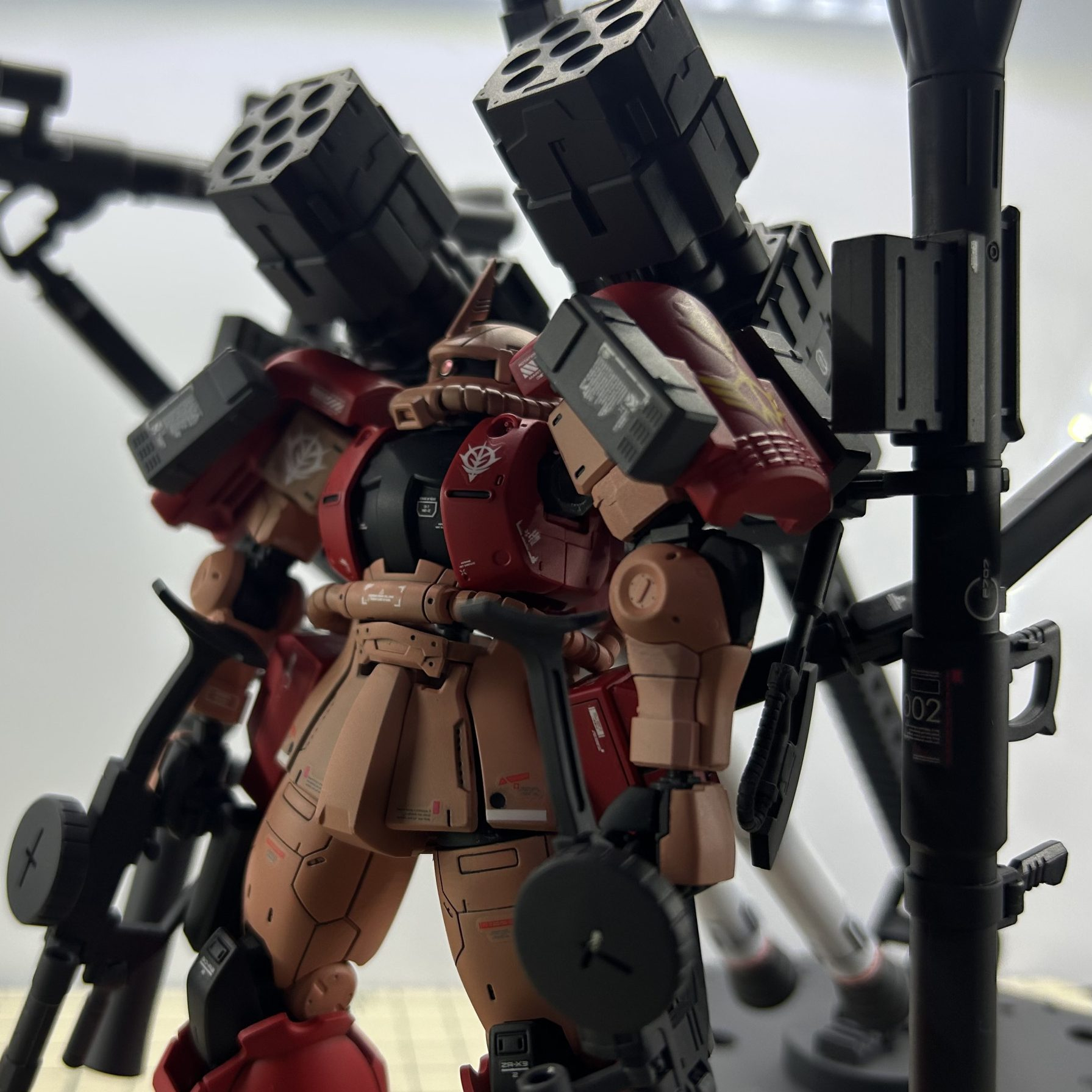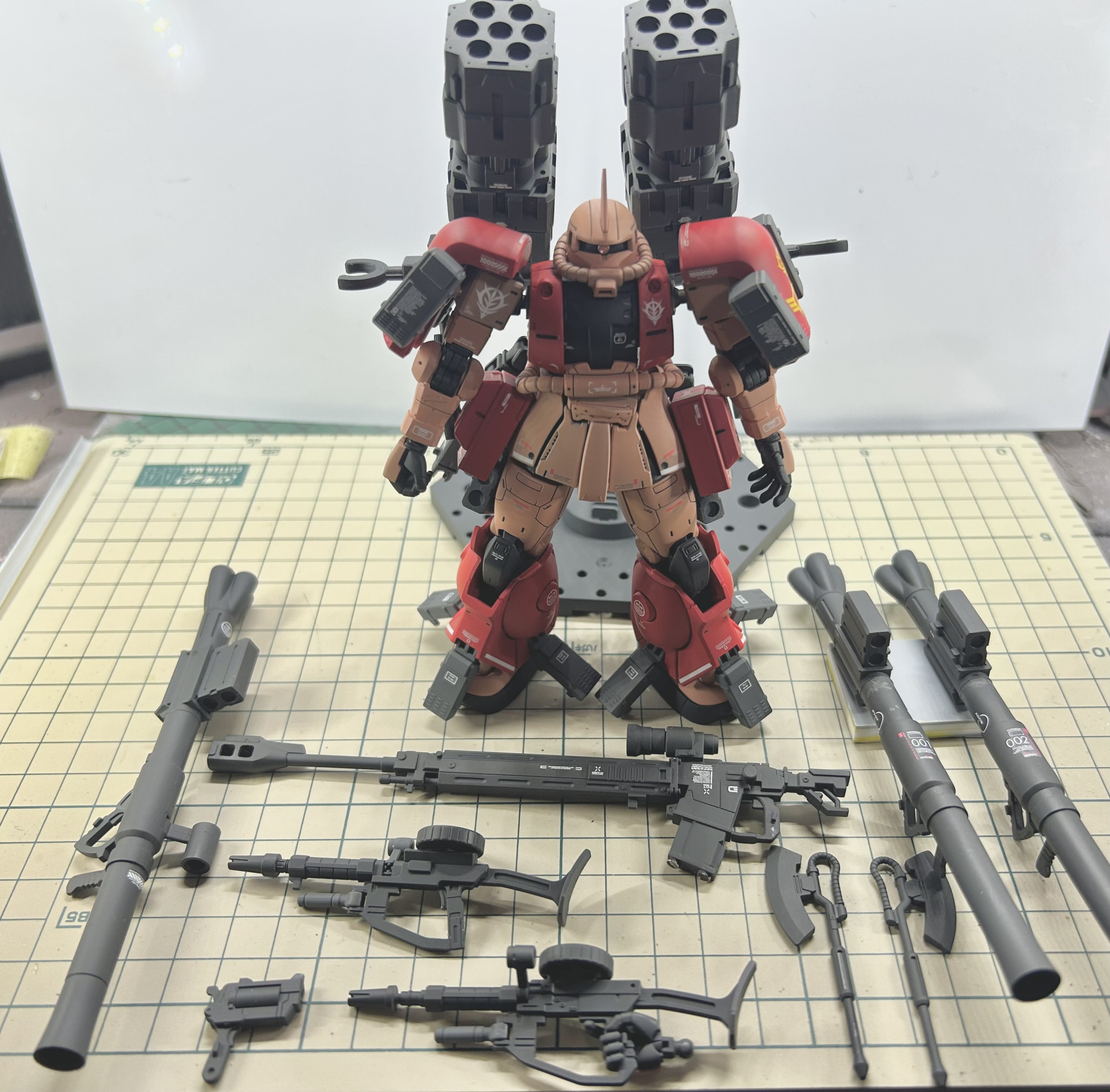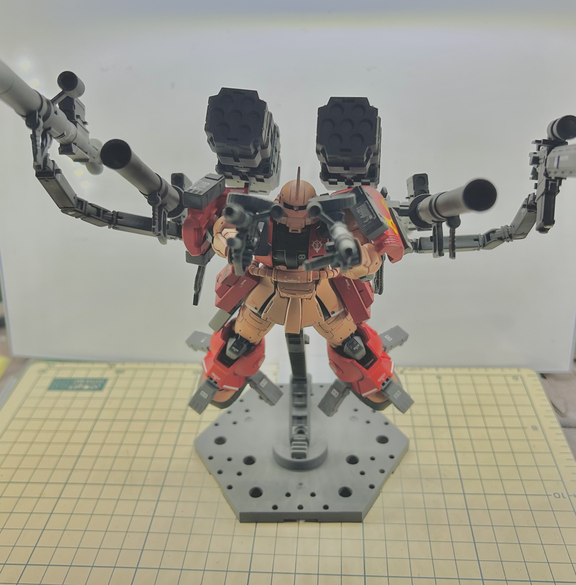 アメイジングブースターですが元々リバイブ版シャアザクに会うよう作られてるのでオリジンシャアザクにハメるとなると足首など加工が一部必要です。