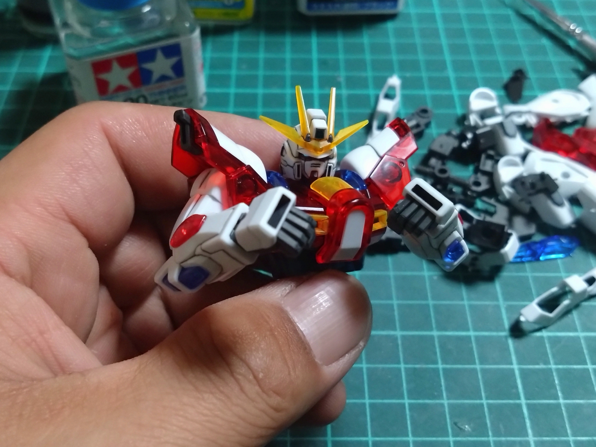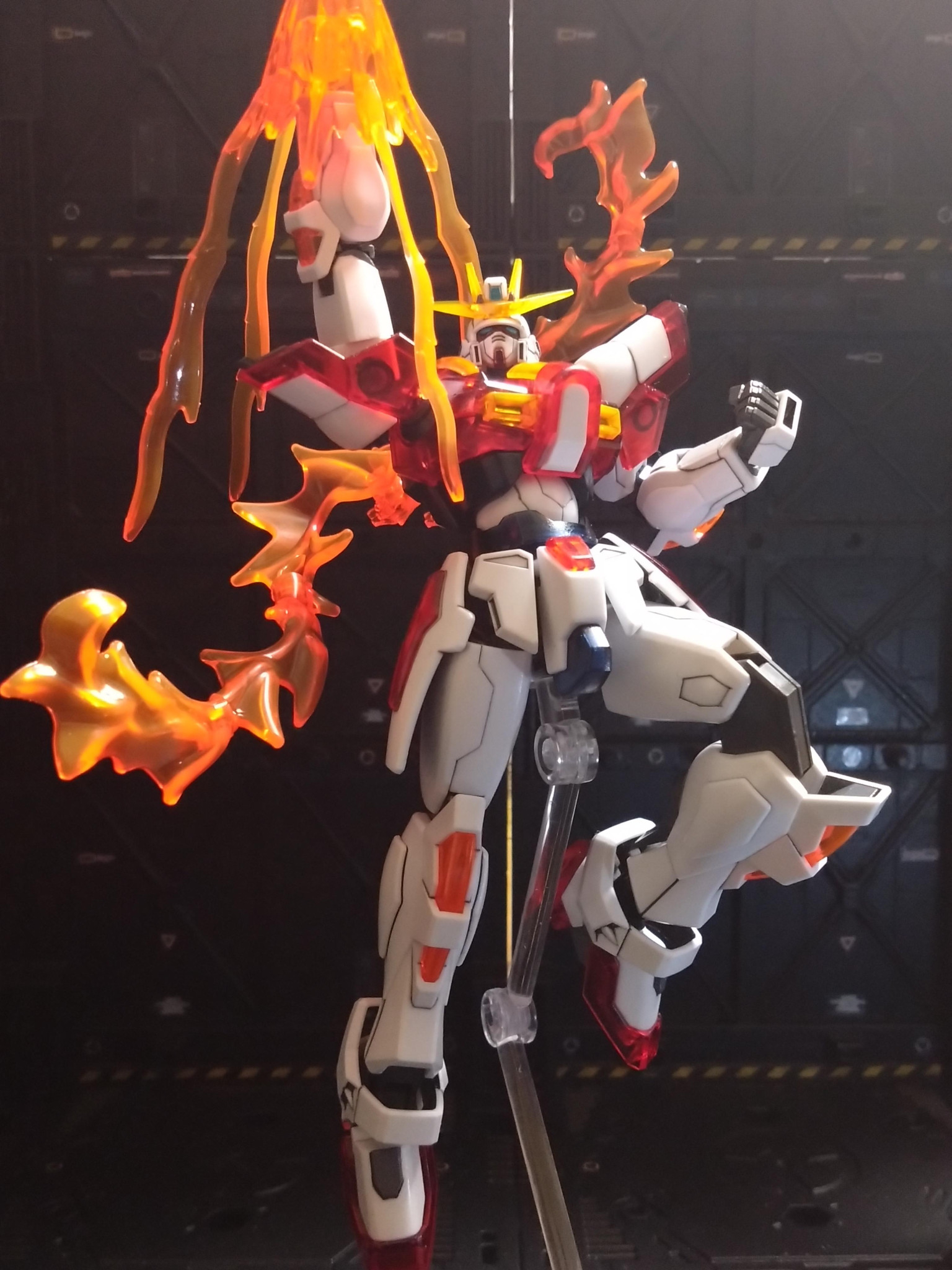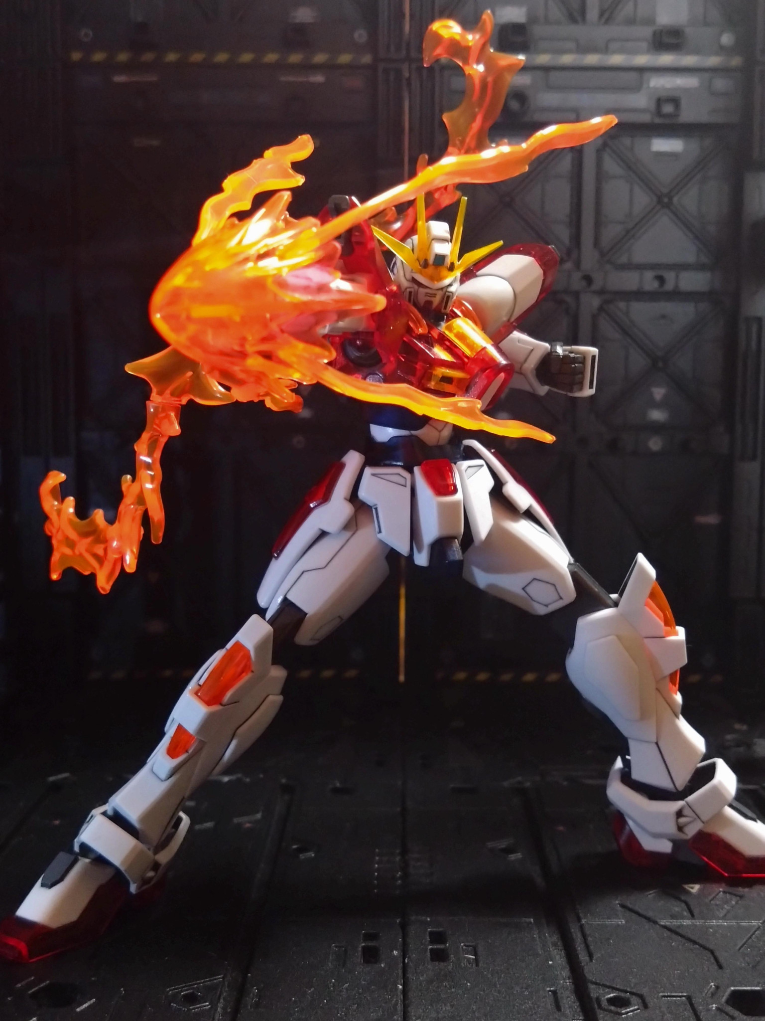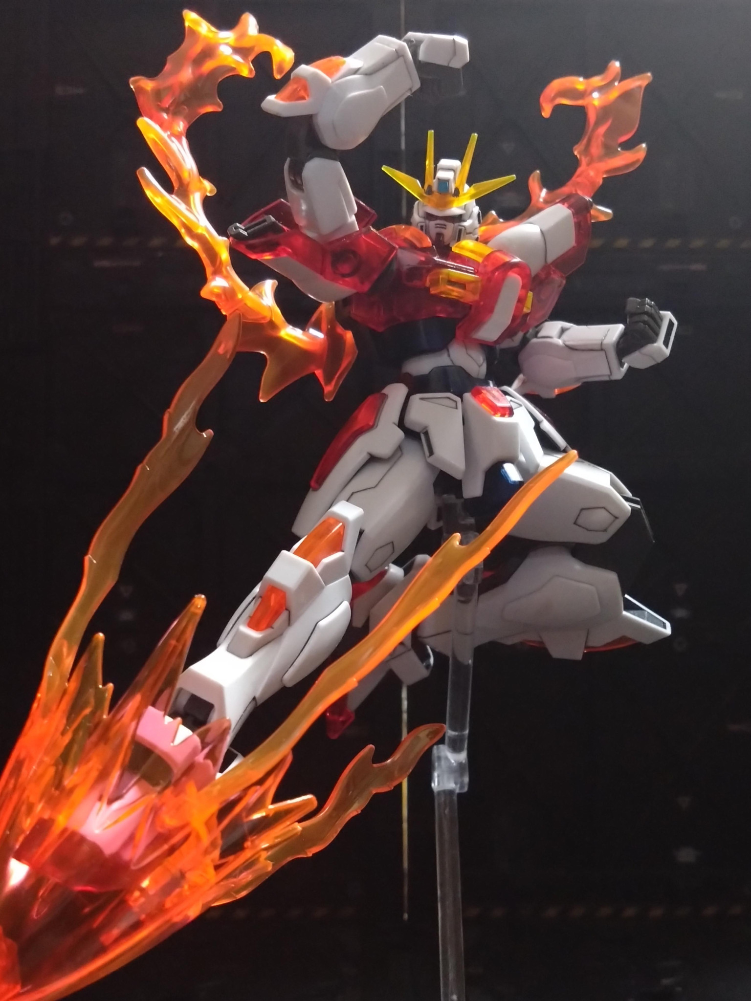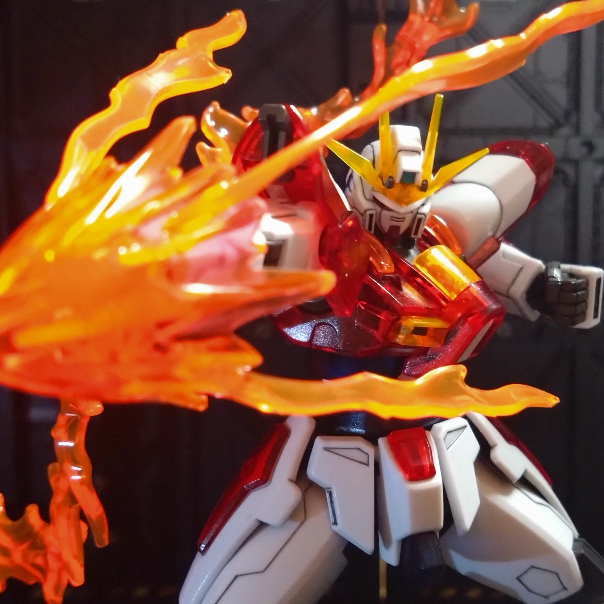 2026年最初のガンプラ HGBFビルドバーニングガンダム ソリッドクリア を表面処理にスミ入れと部分塗装で制作し、クリアパーツを活かす為に光沢クリアのトップコートを吹いて仕上げました😀