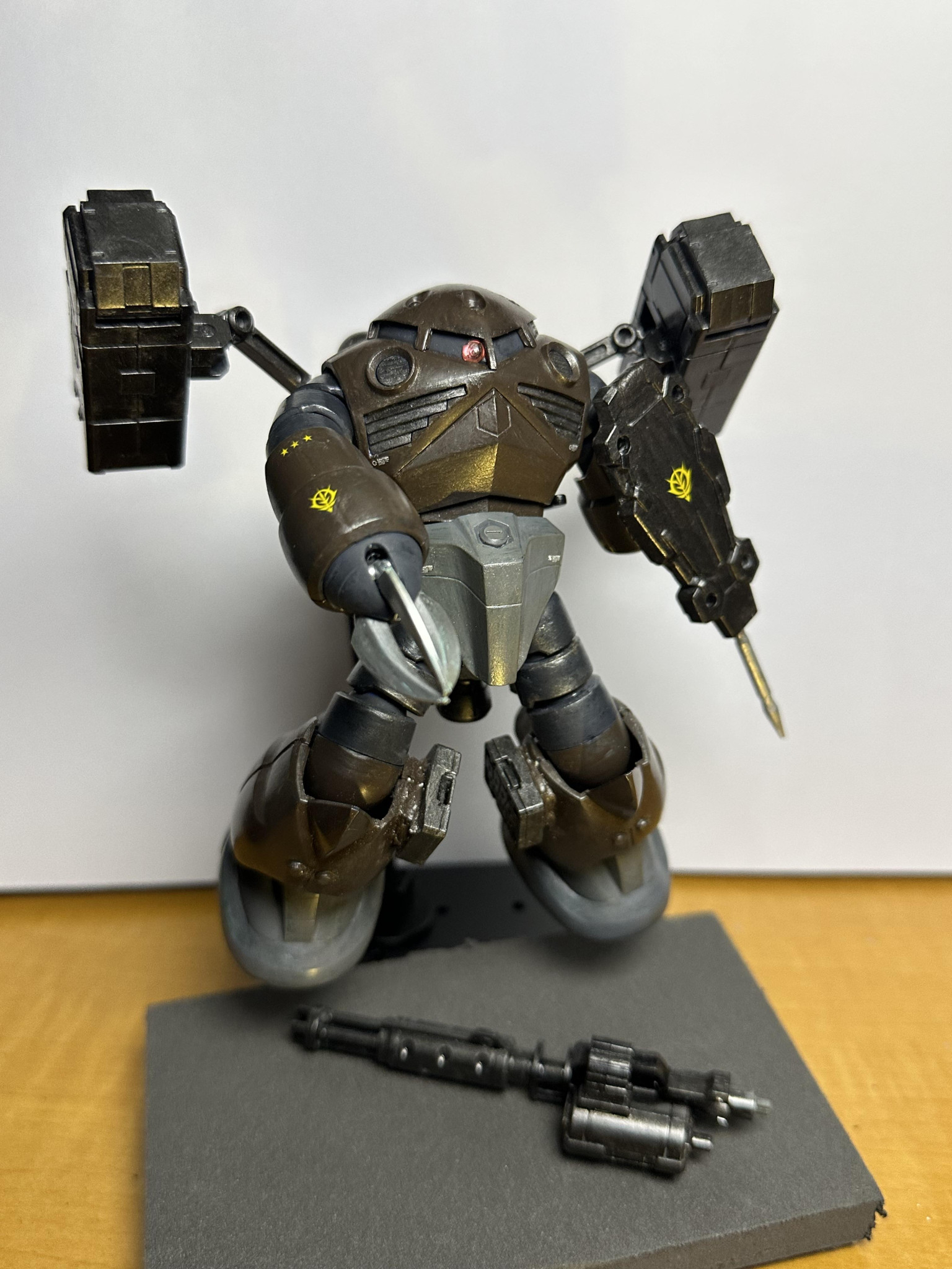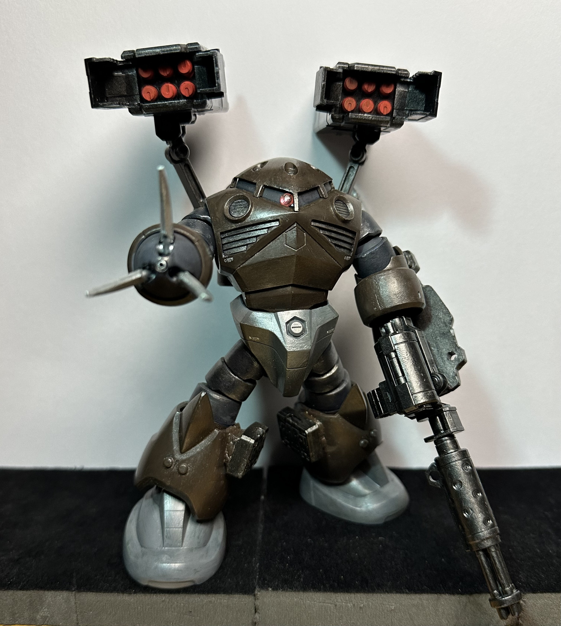 ズゴックの腕ガトリングにしたらなんか様になるんじゃ?って事で他の方の作品も参考にさせて貰いながら何とか完成にこぎつけました。