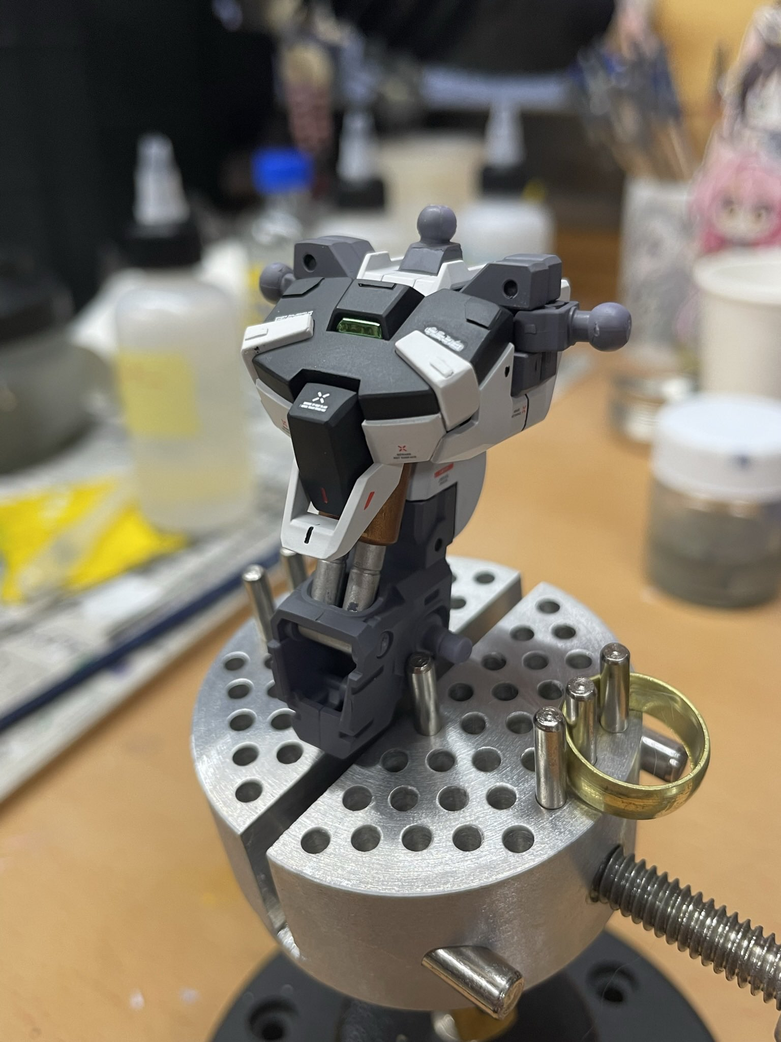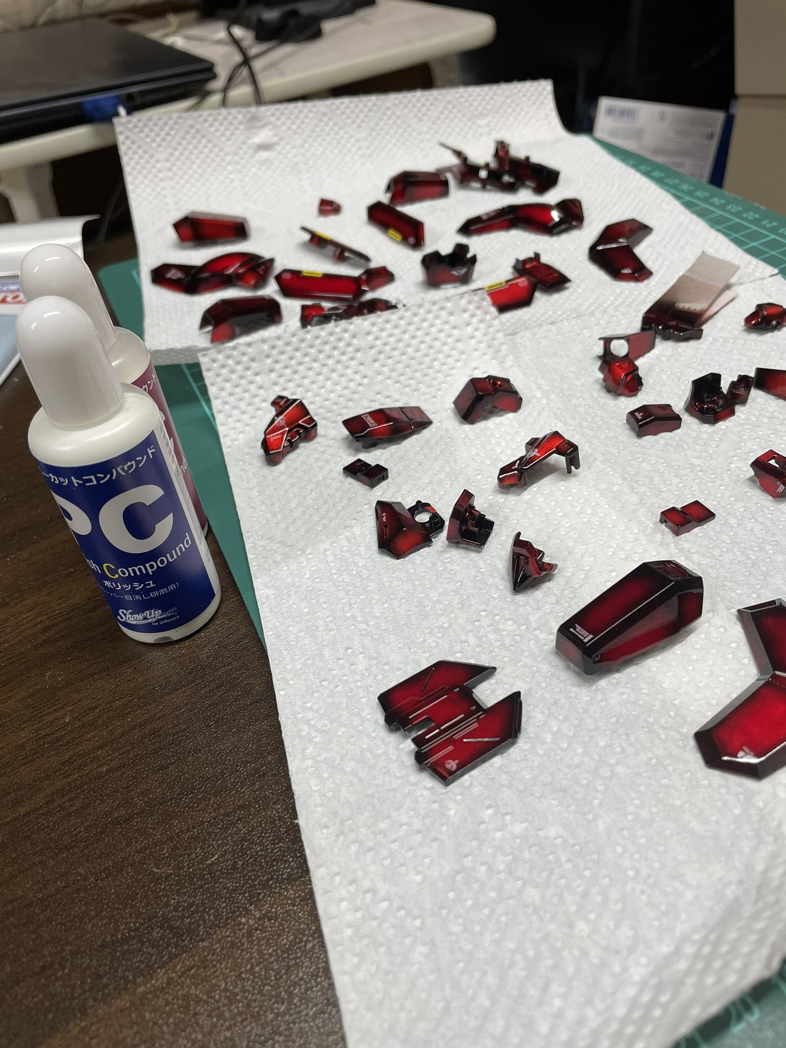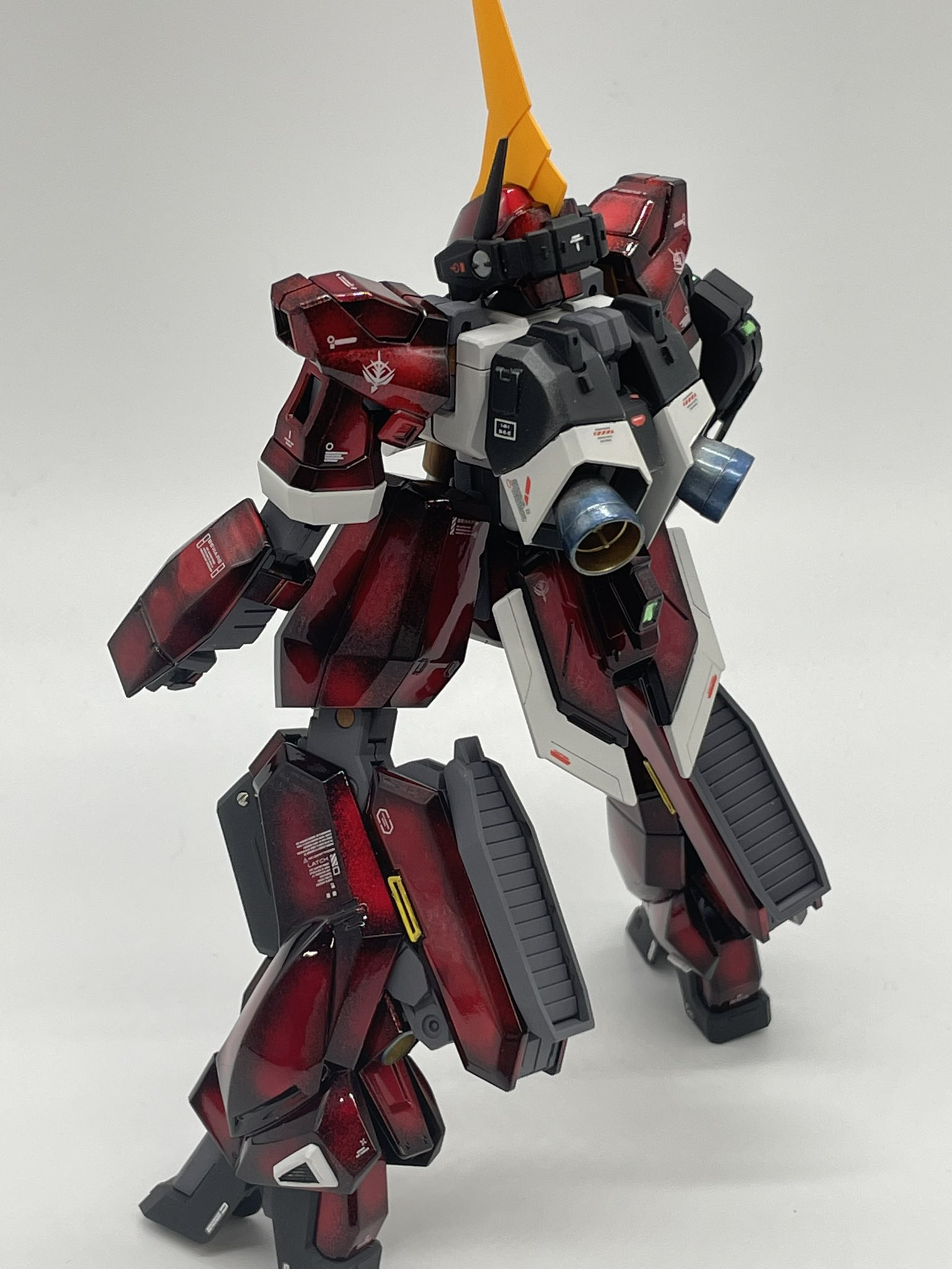 赤色部分はあえてあまり触らず純正のままで行き他色の所を特に筋彫りやらで加工 赤が目立つ様に艶消しに ここだけ見るとガンダム感出ますね