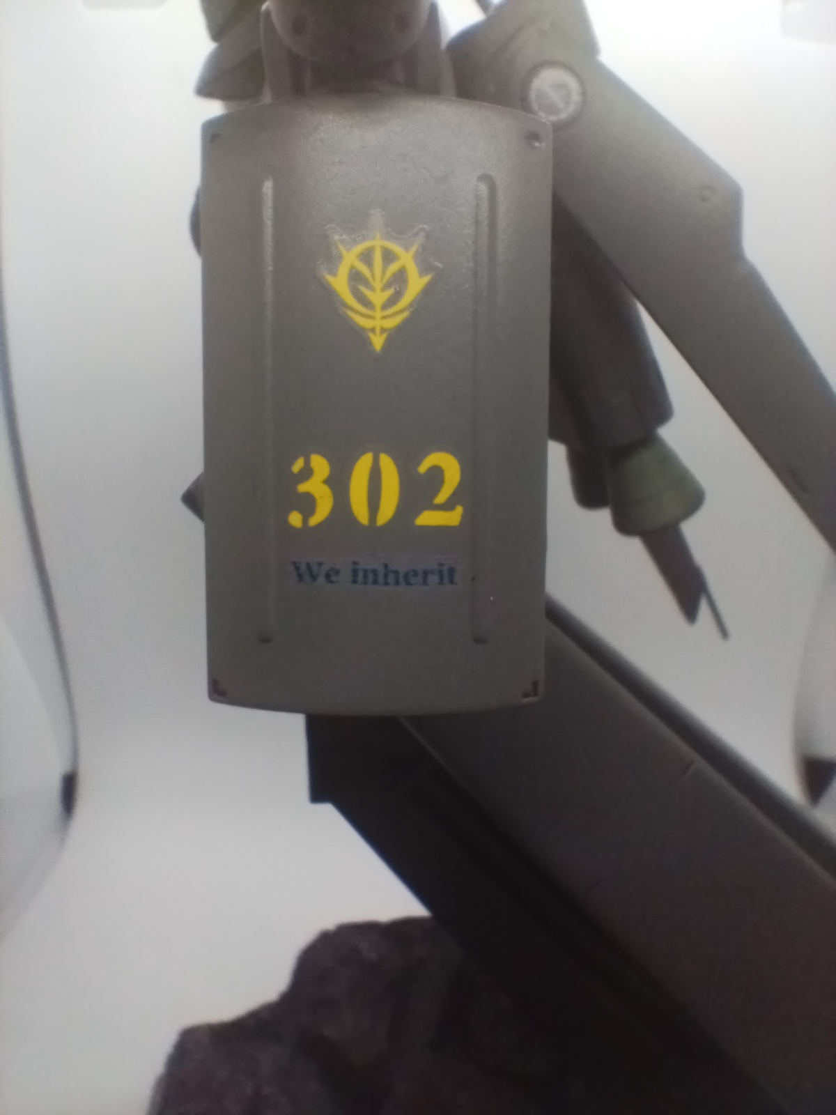 シールドに、エーワンのデカールシールで自作した部隊のモットーを貼付しました😃