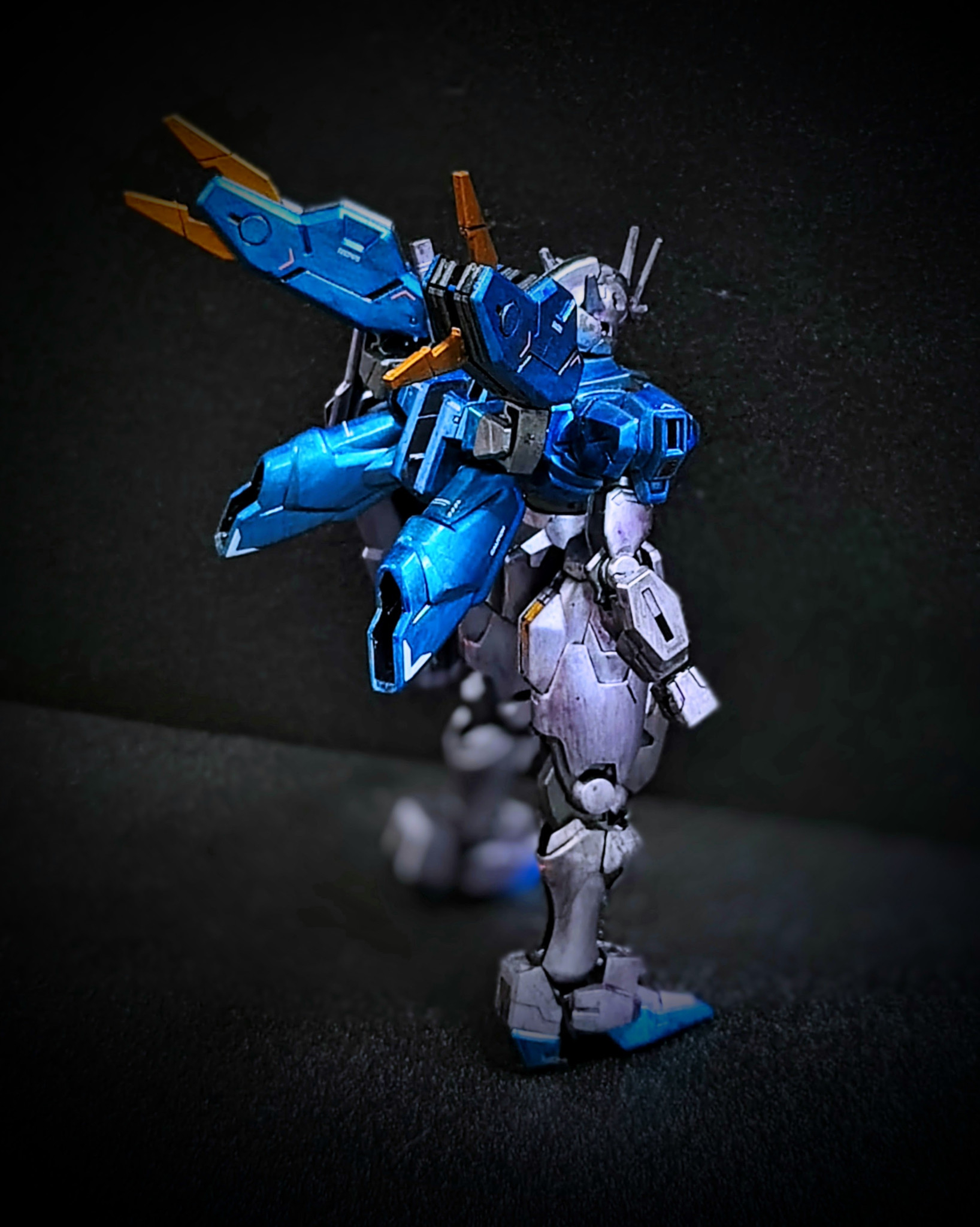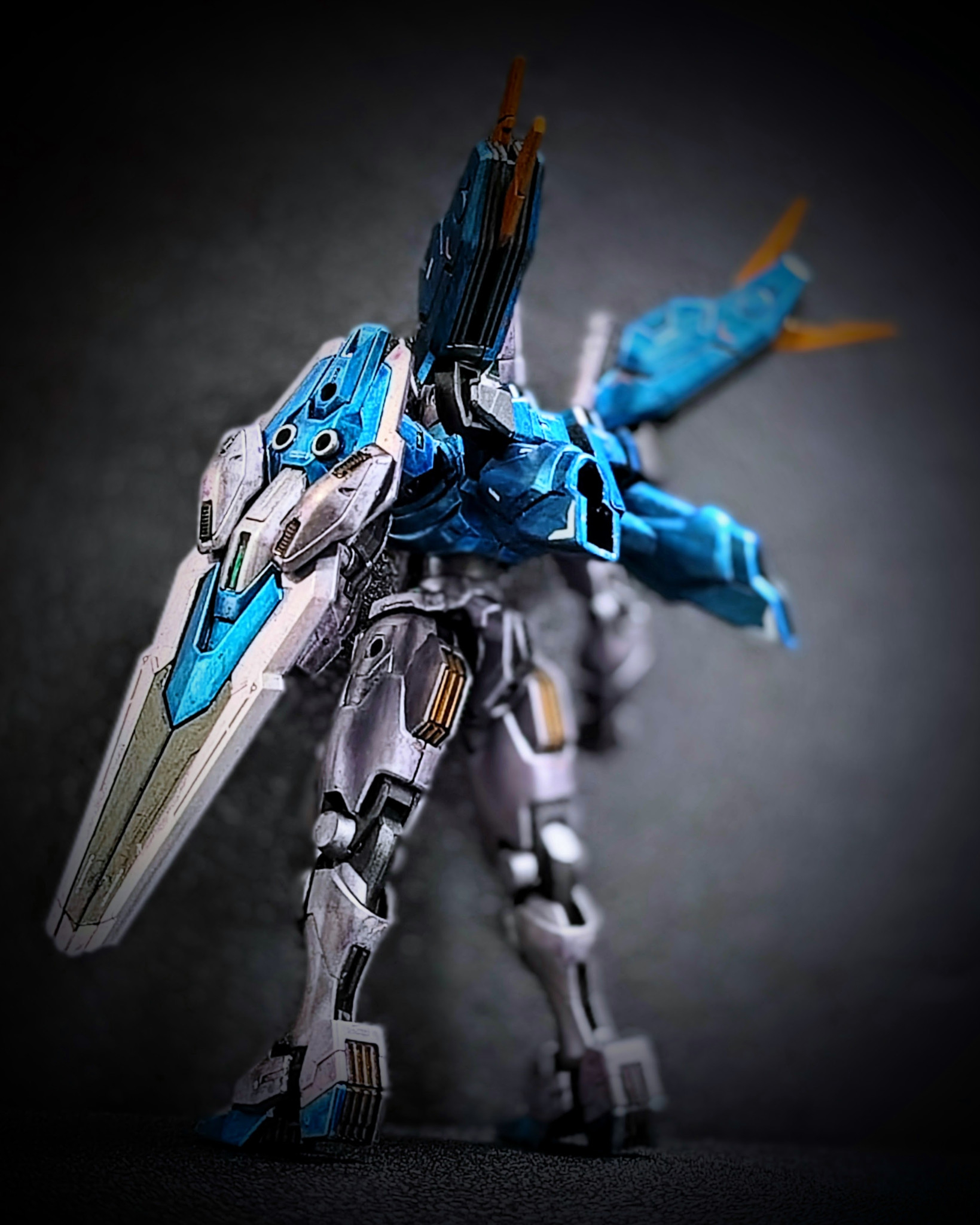 作品を最後まで(改修型が出てくるところまですら見ていない…)見ていないのと、デカールも専用のオフィシャルは出ていない(ですよね?)のでいろいろと自分のイメージで仕上げてみましたが、色んな装備を付けた状態が再現出来て、楽しいキットですね(gandam-hand2)