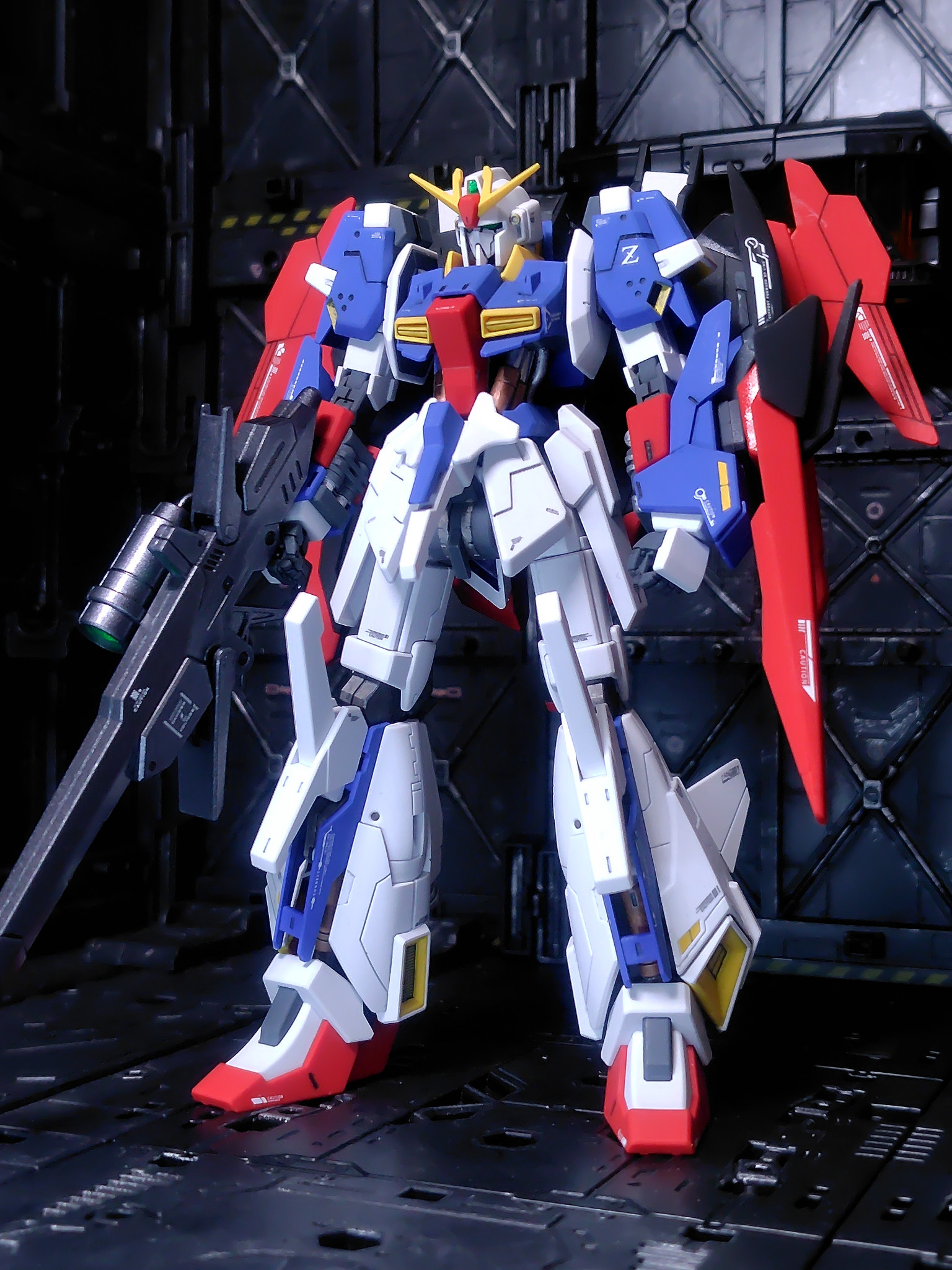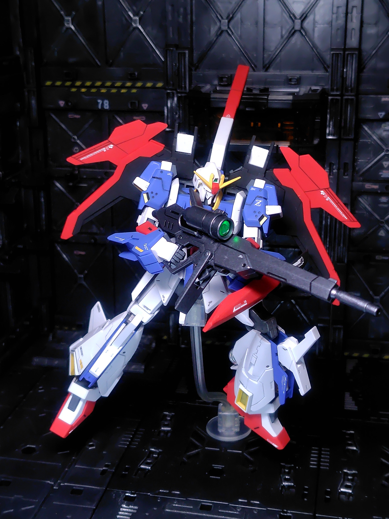 ほとんど手を加える箇所のない良くできたキットです。直前に作ったのが旧キットだったのでなおさらすごく感じました(gundam-kao5)頭部の合わせ目は消して、バックパックとライフルは段落ち化。腰と足のシリンダーは本来水色っぽいブルーグレーですがカッパーとシャインシルバーに変更し、足の関節と股関節にはガンメタルを使って少しメカ感を出しました。ガワラ立ちできるのも良い!