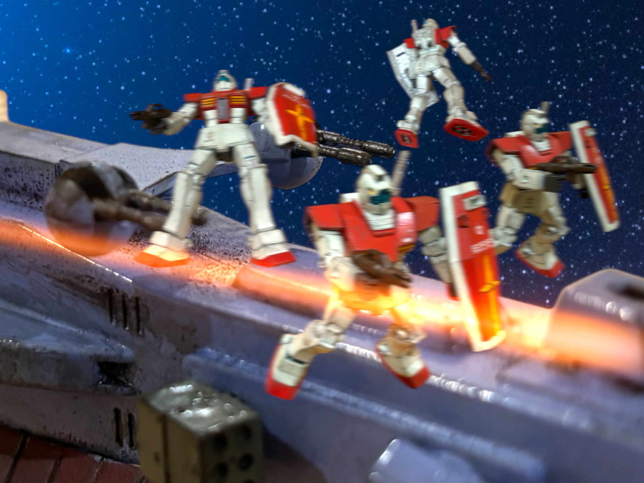 それは、マイセンではなく、サラミスを貫いた。サラミスが火を吹くと同時に、艦体の下に潜り込むようにして狙撃する、ザクの姿が見えた。もう1機は、弾幕を巧みにかいくぐり、砲塔を潰していく。加えて、威嚇射撃をしていた部隊も突撃し、MS隊を制圧した。