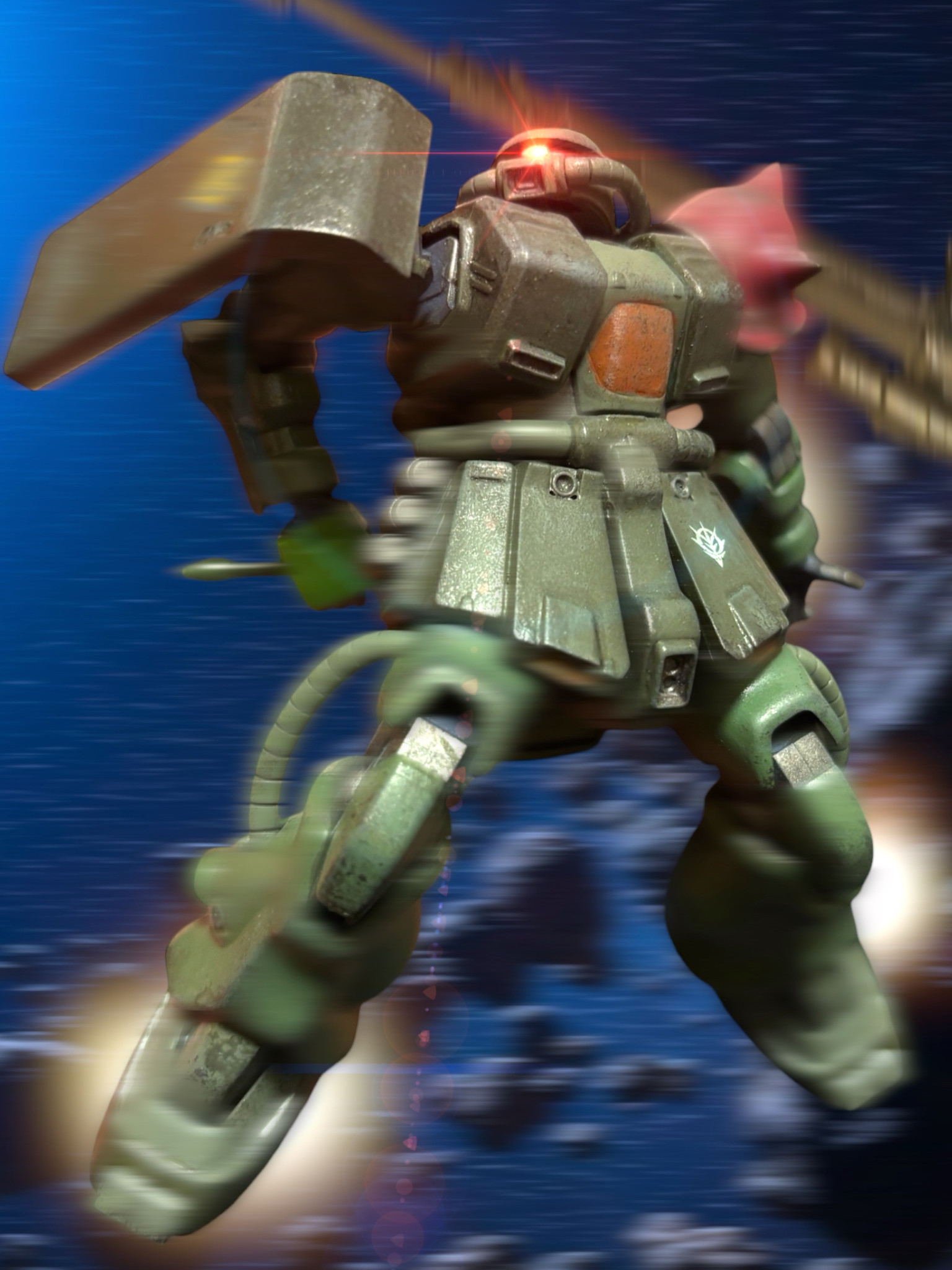 アシンメトリーの巨大盾、自分の癖にぶっ刺さりです🤤デカールの貼る位置もこだわってますね(zaku-kao2)