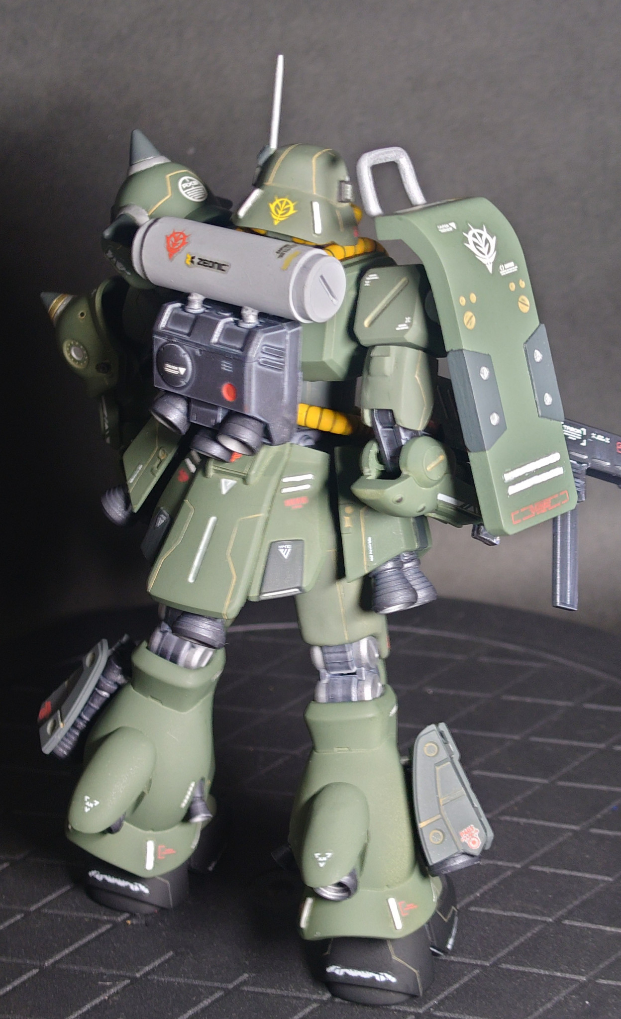 塗り分けを少し増やして頭部アンテナとシールドの増加装甲を加え、デカールを貼ってつや消しトップコート仕上げです。