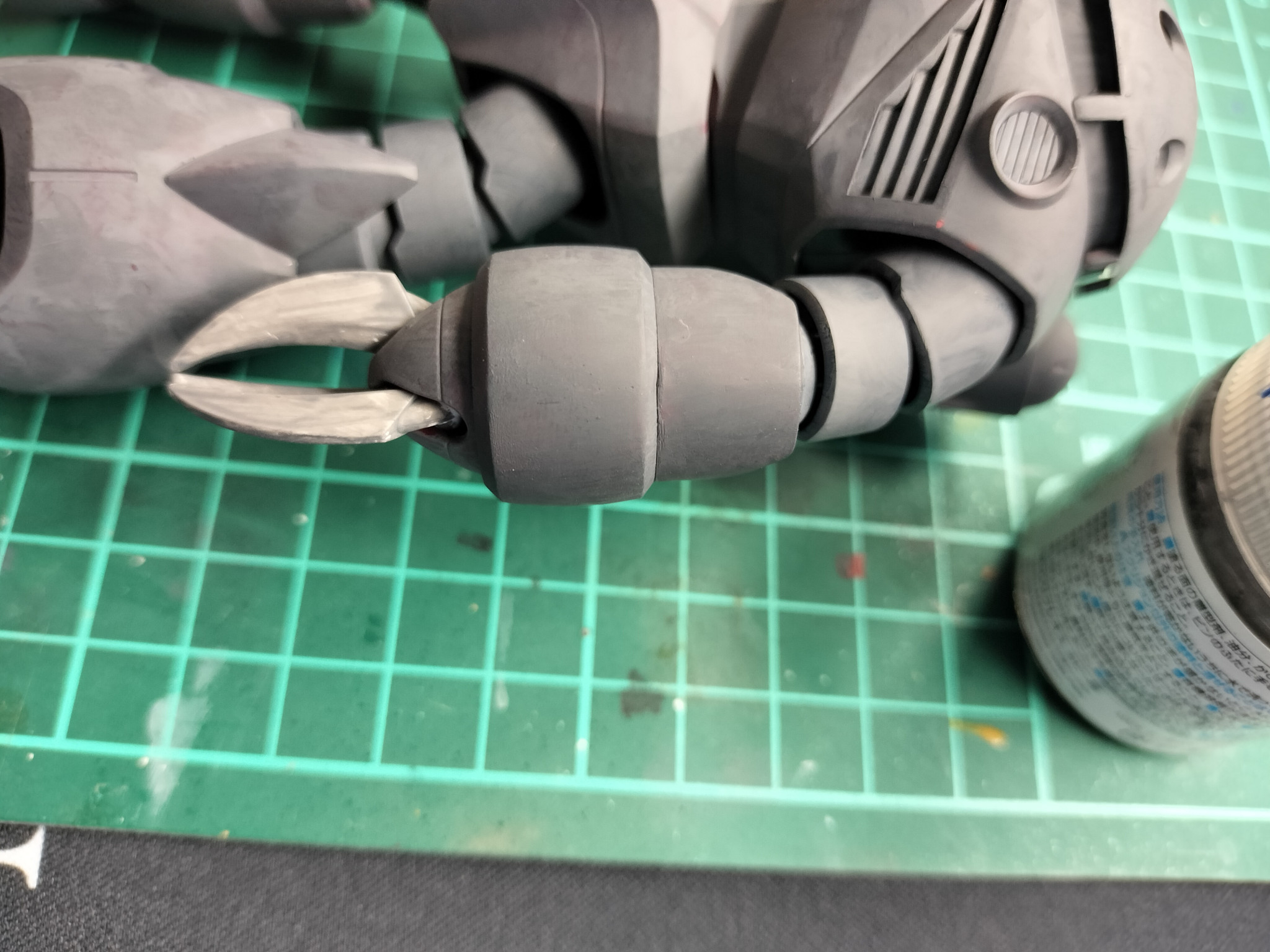 アクリジョンベースグレーで下塗り。スタンピングでペタペタと雑に塗っていきました。成形色が透けていてもおかまいなし!