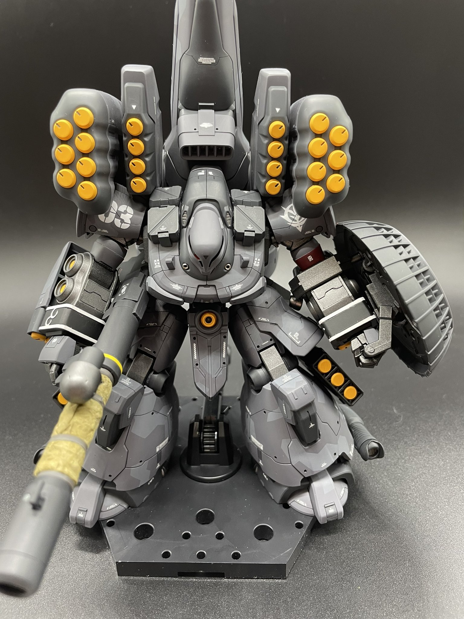 カラーリングが渋い!脚のミサイルがオミットされてる分ギャンシールドでミサイル盛られてるのが面白いですね!