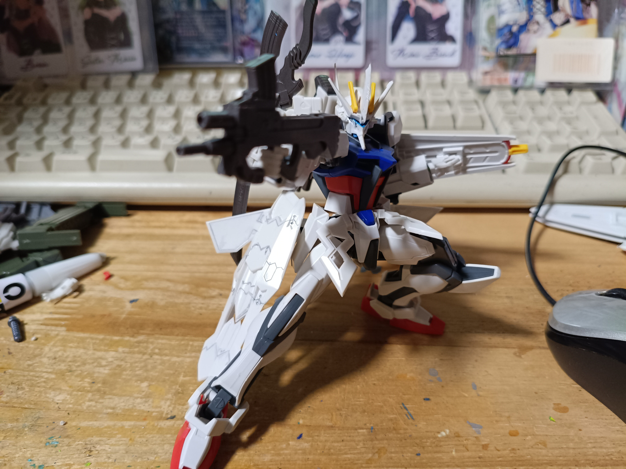 プラモの戦術機と同じようにストライクのボディの背中に穴空けましたこれで戦術機みたいに武装できますえ?ストライカーパック・・・(;・∀・)この装備外せば装備できる