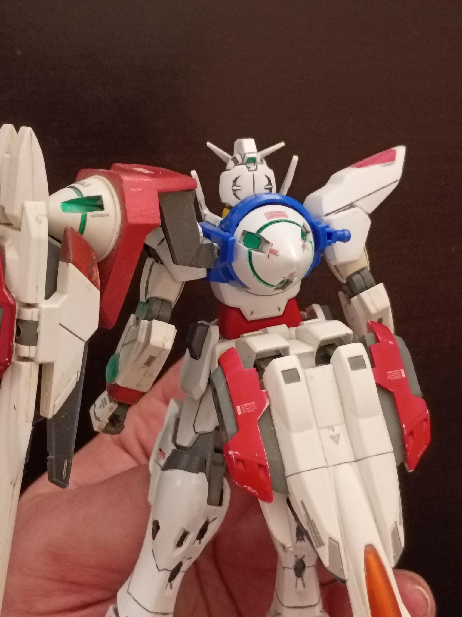 私はOOガンダムのバックパックから取り外したアーム部分を、3mmのピンを追加して改造したものを使用しています。OライザーはOガンダムのリアスカートアーマーに接続しています。GNソードIIIやストライクガンダムのシールドはまだ取り付けていません。