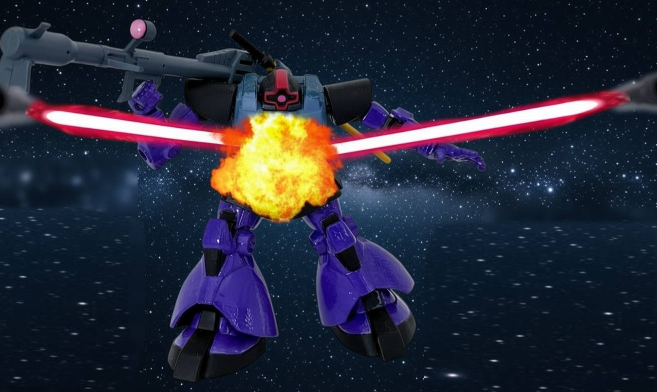 ビームサーベル二刀流。機体を黒くしてマントを付けるとバットマンみたくなるかも(gundam-kao6)