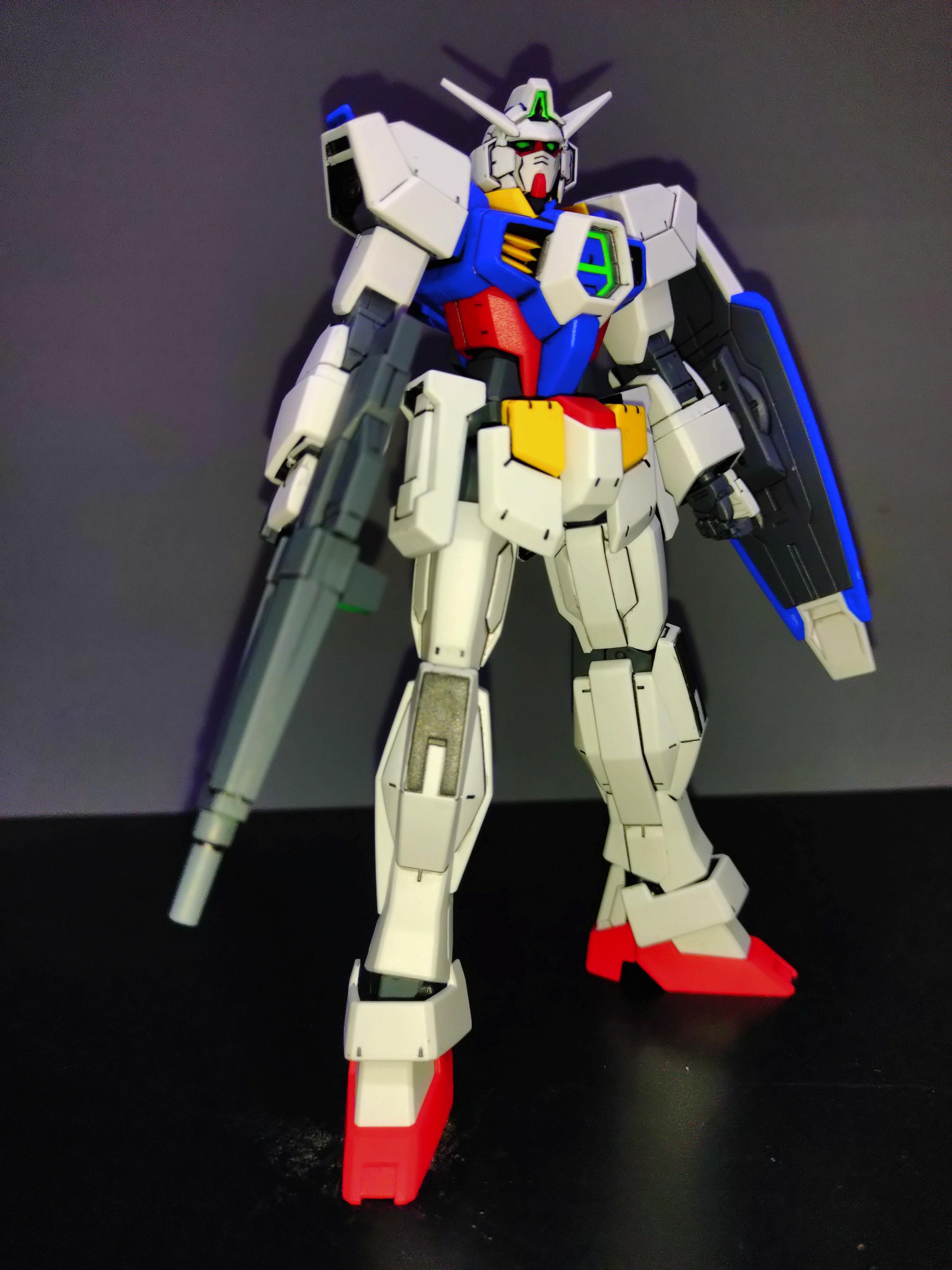 HGガンダムAGE-1ノーマルを制作しました。部分塗り、影塗り、スミ入れ、つや消しトップコートで仕上げました。デカールを貼る予定でしたが、手に入らなかったので、今回は貼っていません。