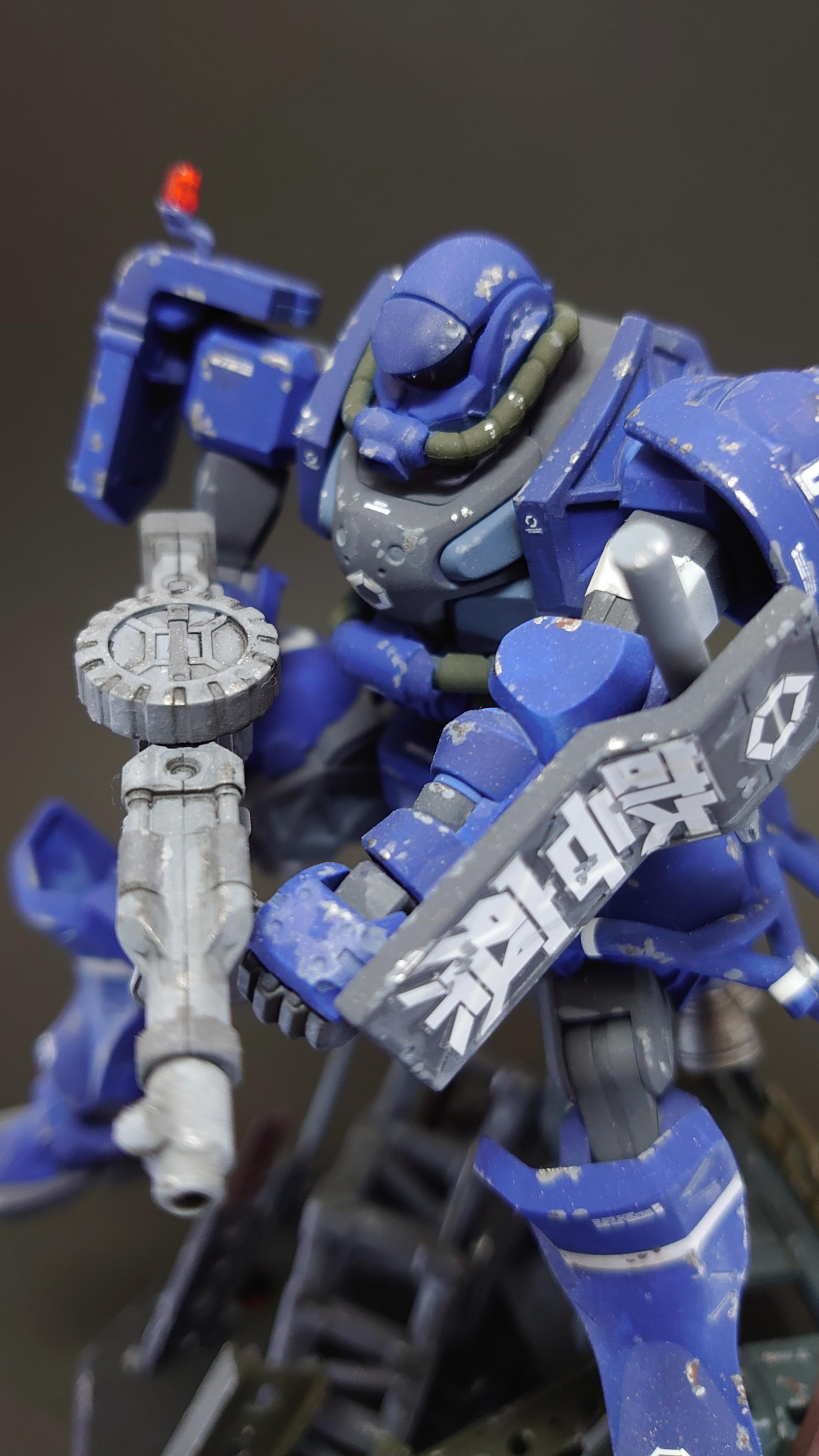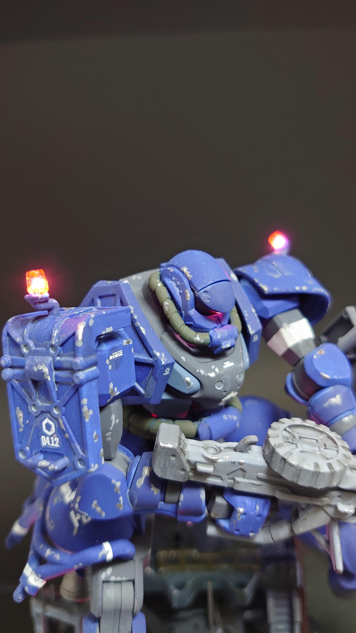 HG軍警ザク に 電飾やモノアイ駆動を組込みました。スイッチ入力で挙動や効果音が切り替わります。制作時期:’25/11【A15】