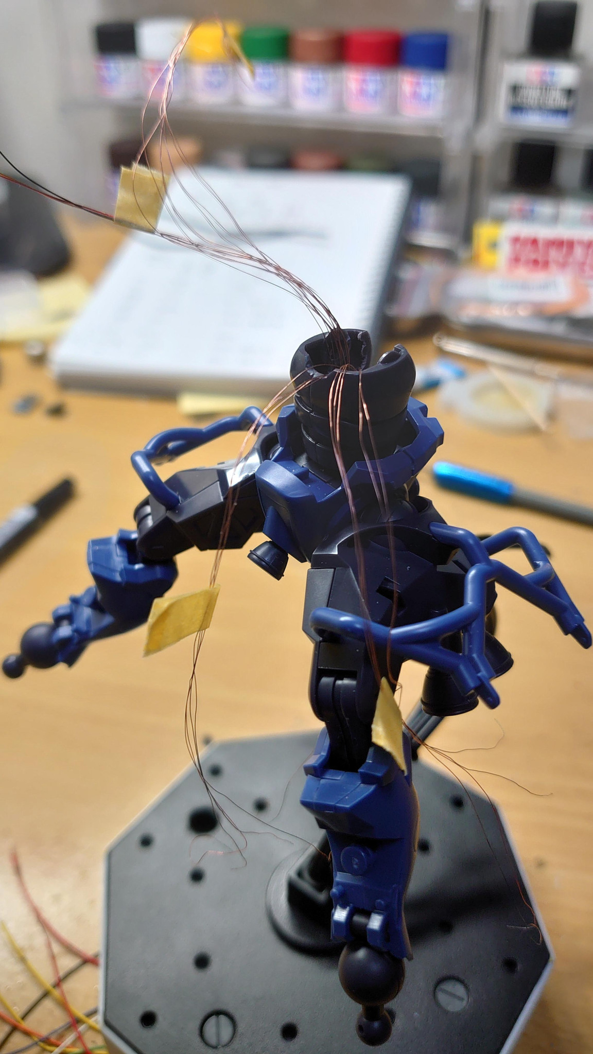 台座からMS部へ配線を伸ばして、電力供給と制御指令を伝達しています。