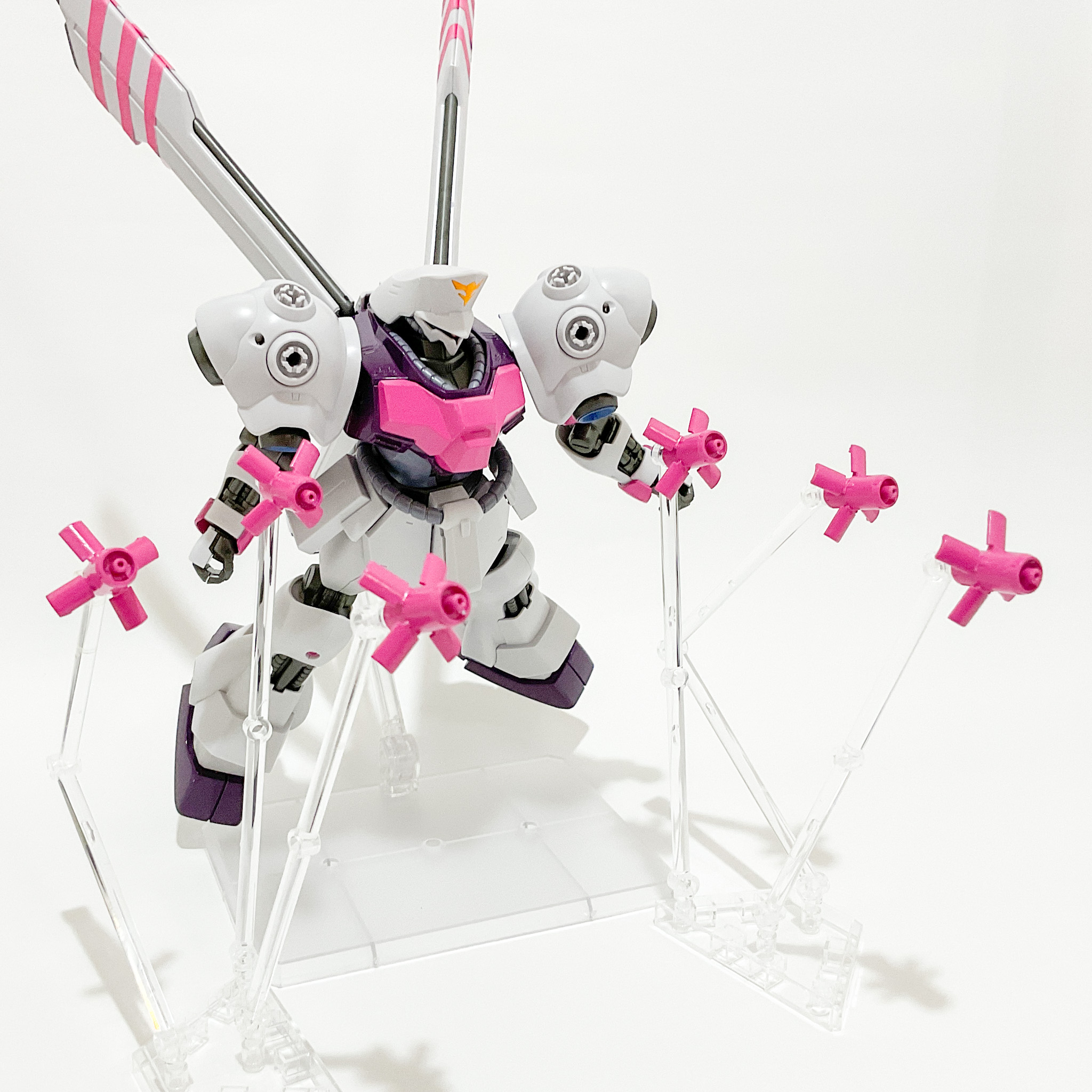ハマーン様の愛機であるキュベレイのカラーリングをモチーフに塗装を施しております。