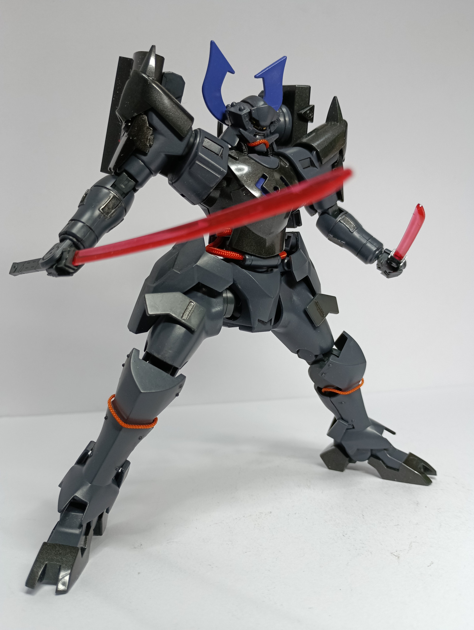 部屋の掃除をしている際にこれを発掘。「そういえばまだアカウント名(ガンジロー)の由来であるGN系の機体を出してないな」と思い作成。名前はアニメ「ヤマトタケル」の敵の魔空戦神の1体から拝借