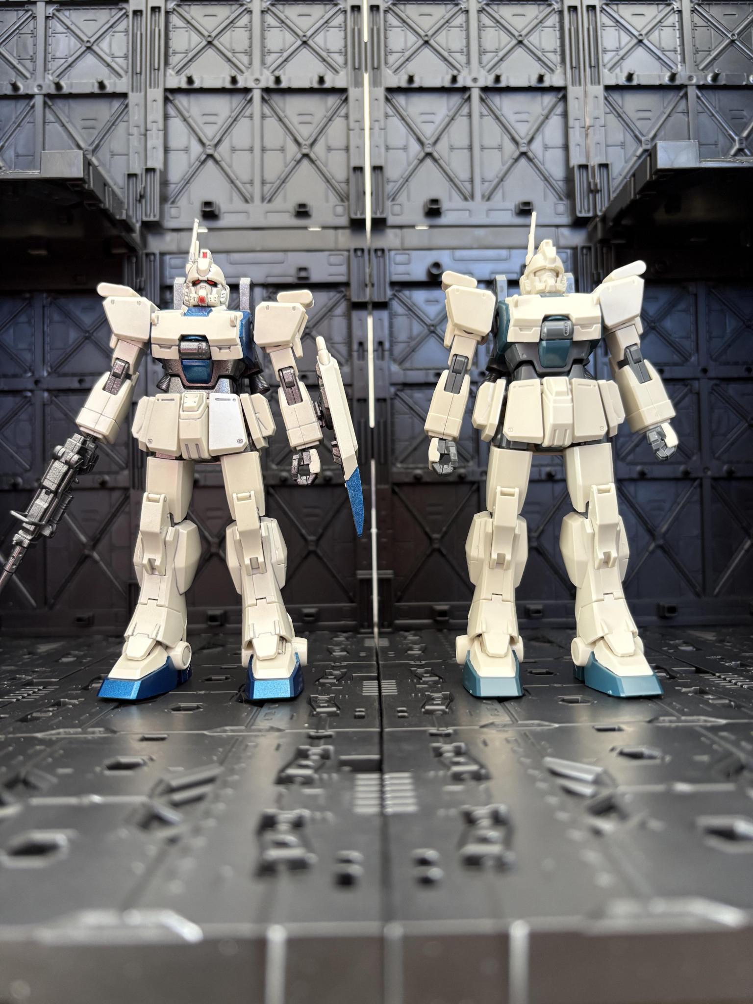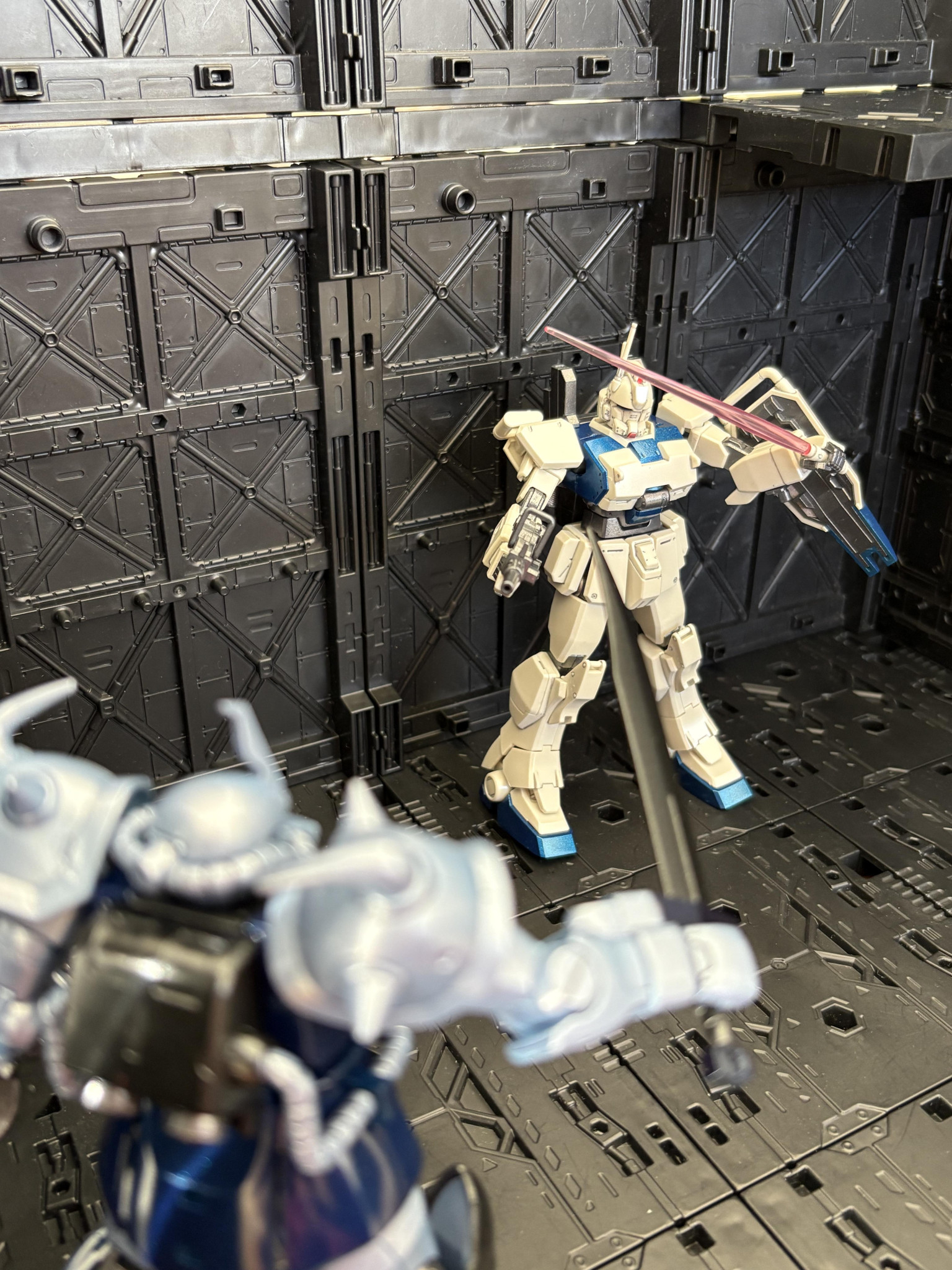 ウェザリングは苦手なので、ピカピカ仕様です。同じくピカピカ✨のグフカスと対峙してみました😁
