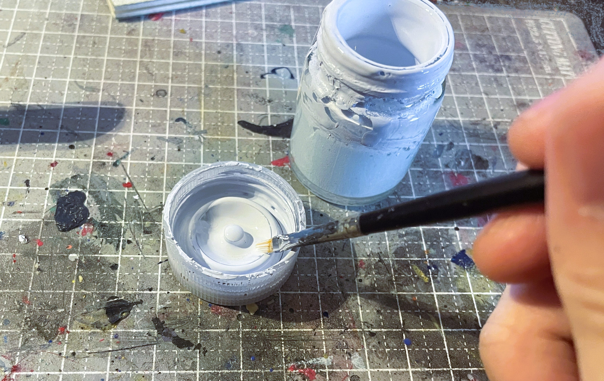 そんなこんなで試行錯誤した私は、七転八倒の末ホワイト塗料との向き合い方を見つめなおし、発色のさせ方・ムラの減らし方と研究を進めていきました。そうして見つけた答えの一つが、今回ご紹介したホワイトの塗料です。