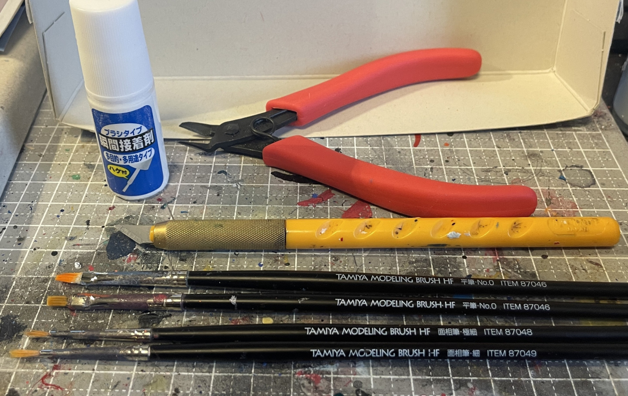 気を取り直します。初めの道具紹介で筆をお見せしましたが、基本私は細めの平筆がメインです。作るのが1/144シリーズが多めなこともあり、この太さでも意外と塗れます。