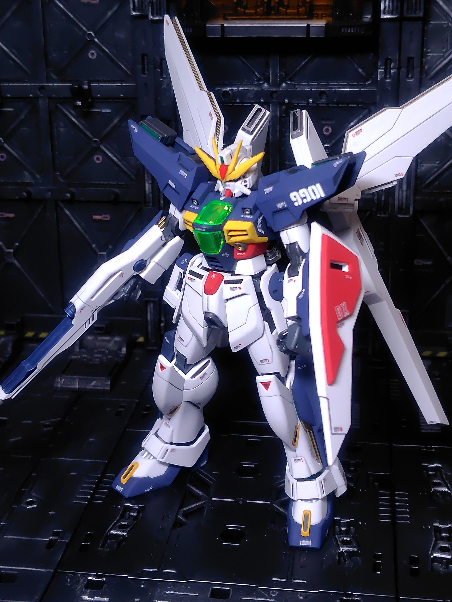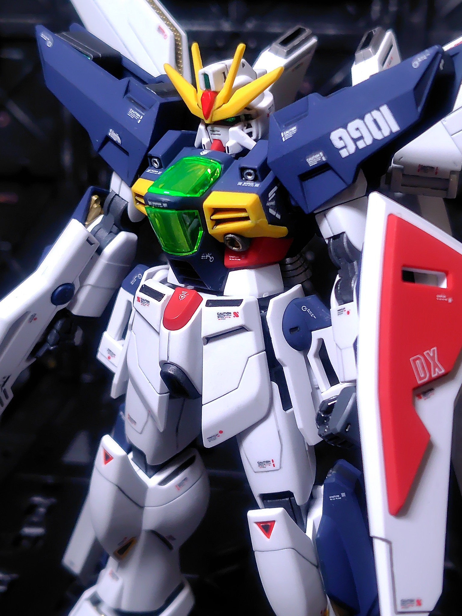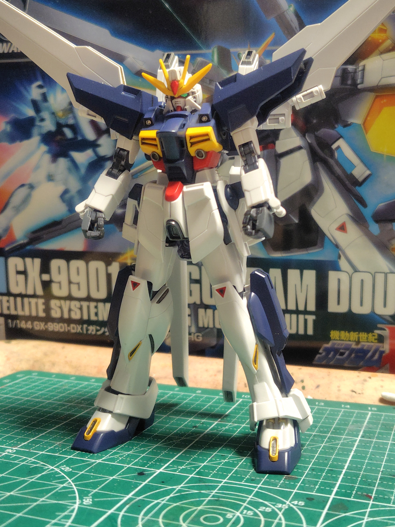 HGAW ガンダムDXです。ティターンズブルーを使って少し雰囲気を変えて塗装したつもりですがあんまり印象変わらなかったです(gundam-kao5)もっとティターンズ機っぽくなると思ってたんですが。