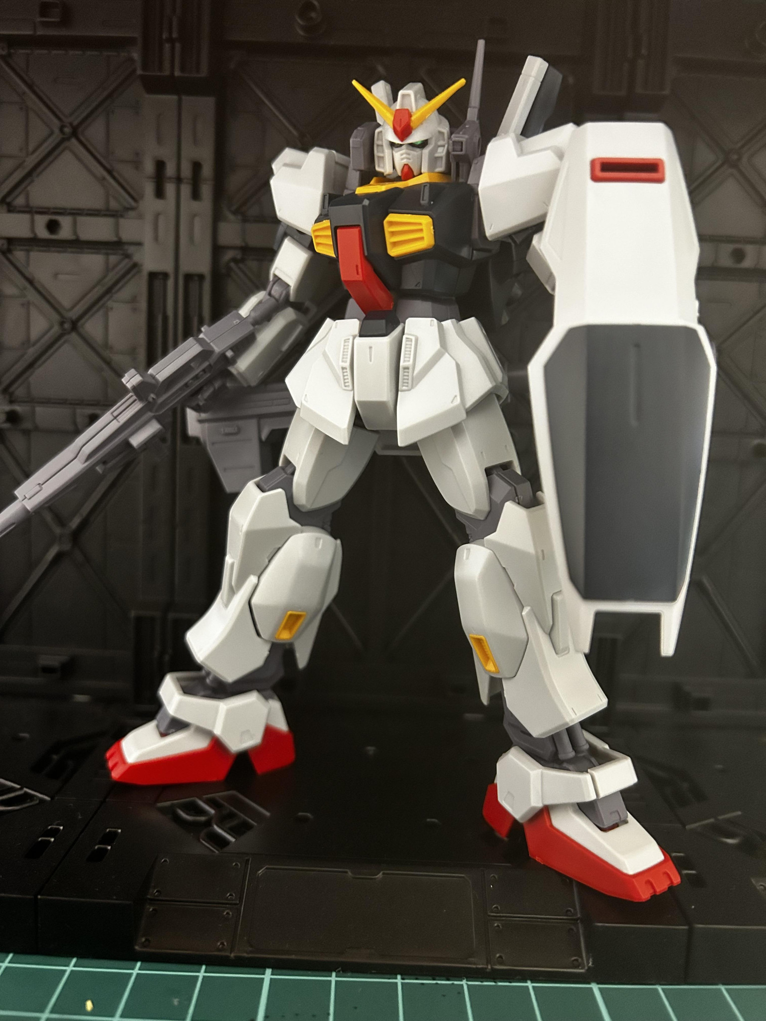 変形機構もなく派手な色使いでもないですが基本的な武装やガッシリ無骨なフォルムが堅実なMSという感じでめちゃくちゃ好きです