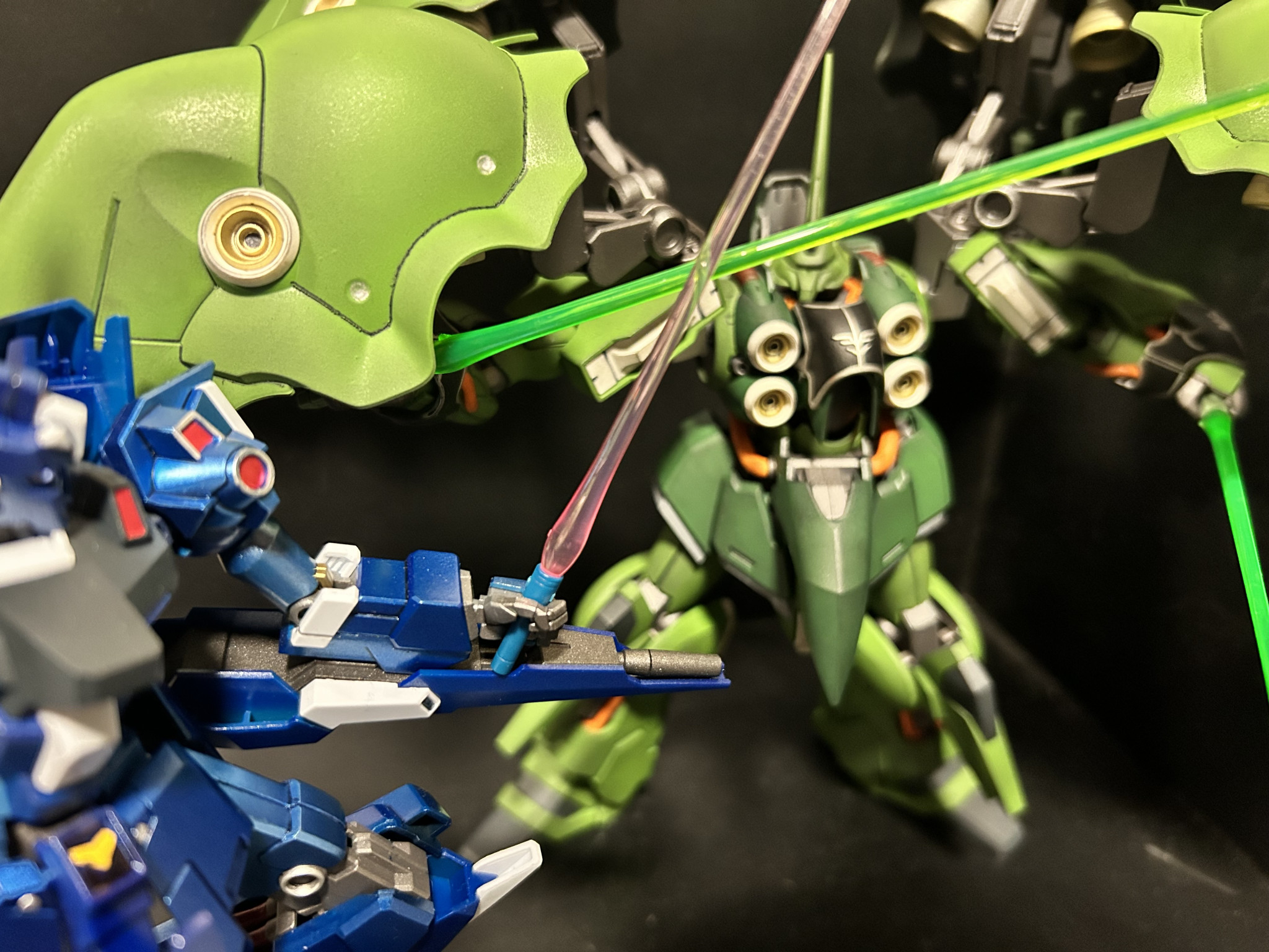 前回のリゼルでも言ってた様に、これがしたかったんですよぉ。 スタークジェガンでもいいんやけどこのピンクと緑のビームサーベルがねぇ たまらん。
