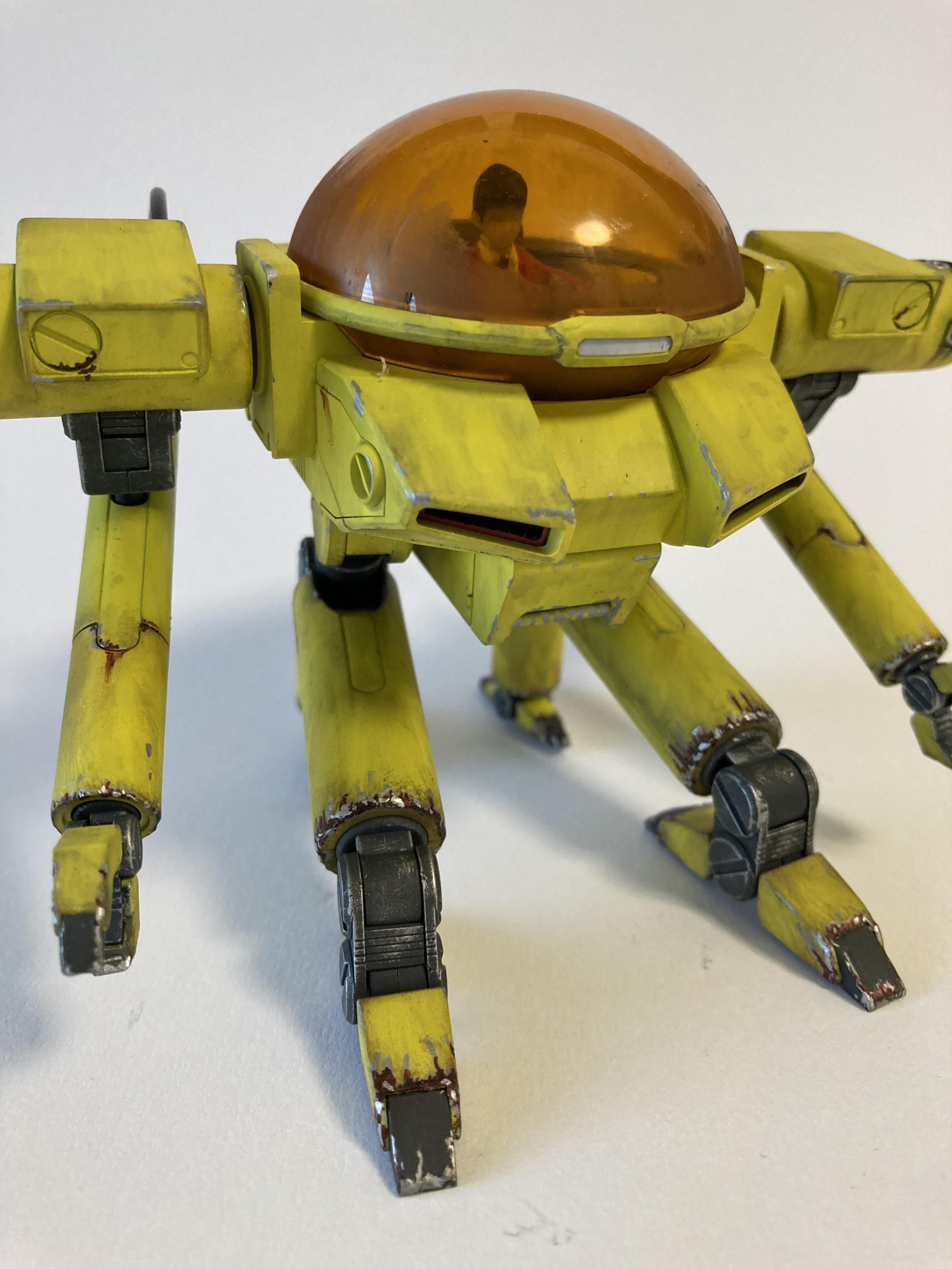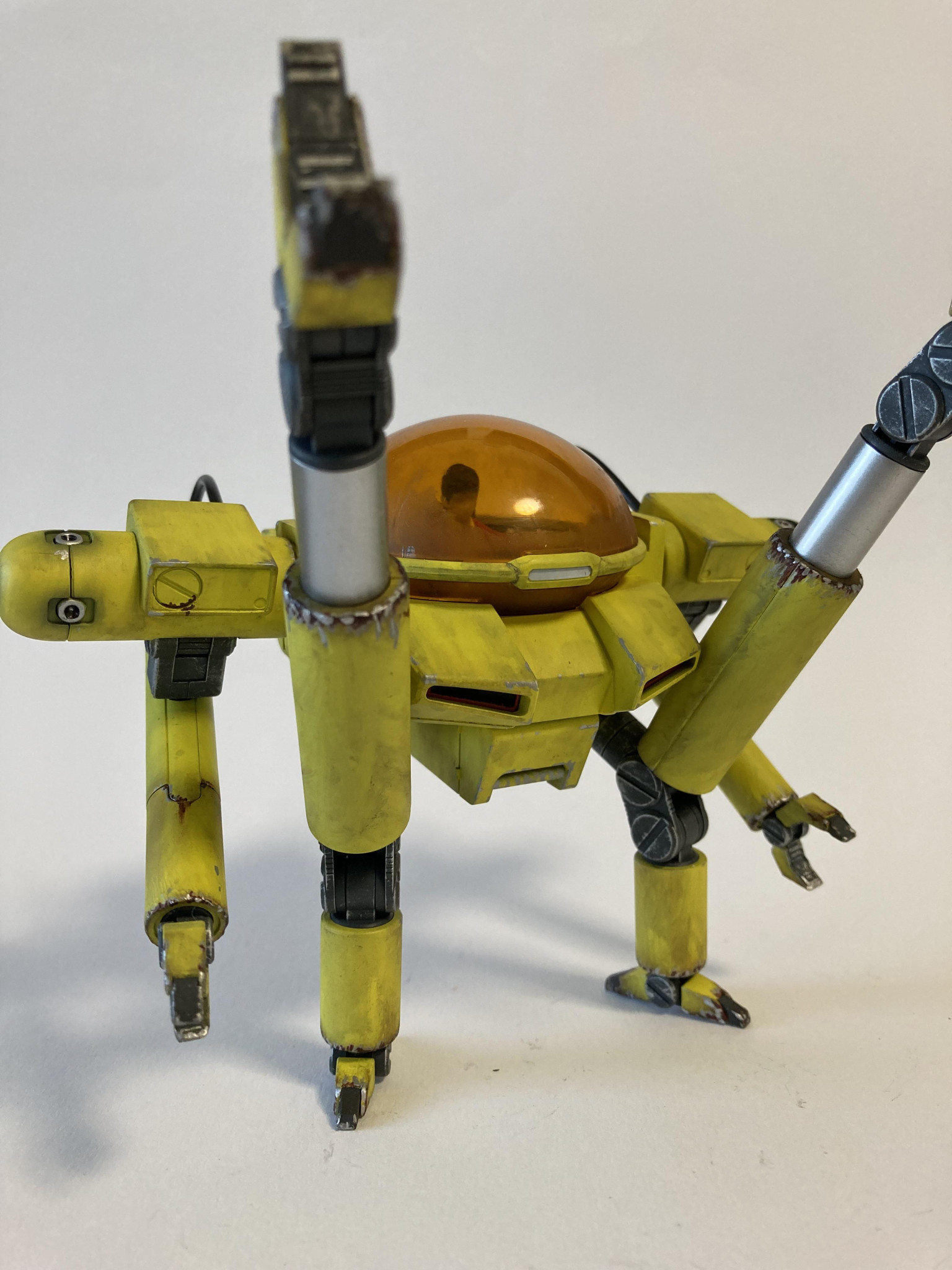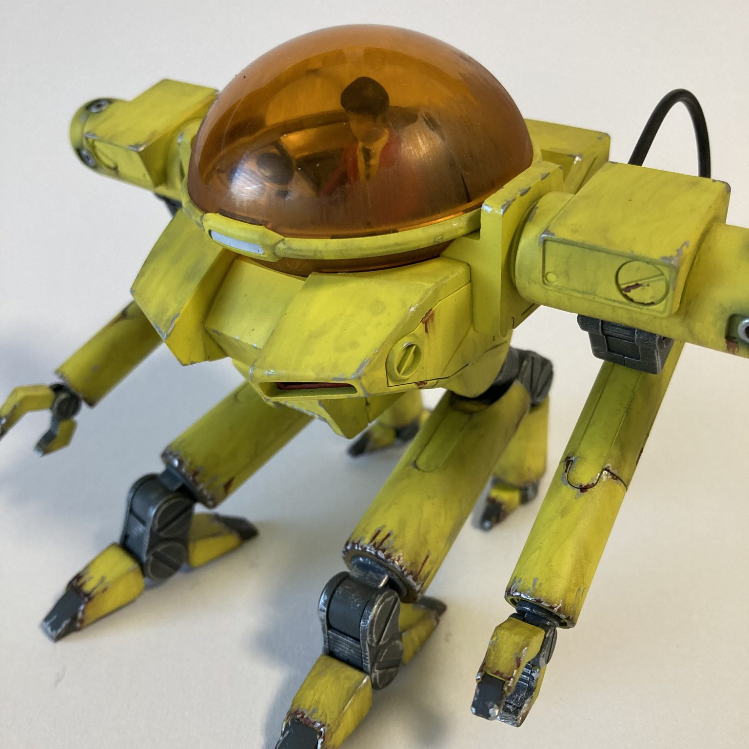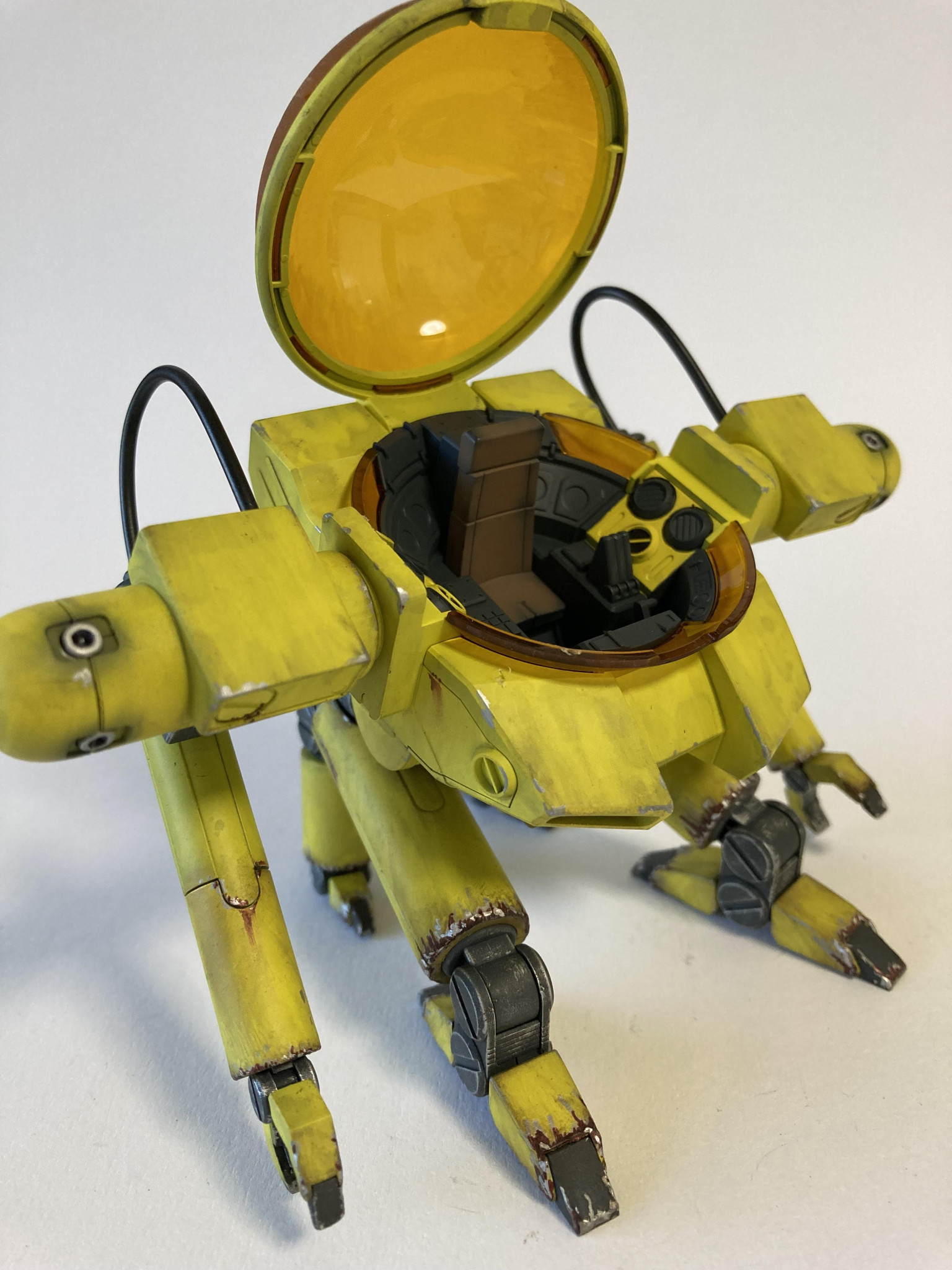 塗装は黒サフ→下地ホワイト→キアライエローです。グラデを我慢しフラット塗装からのウェザリングです。