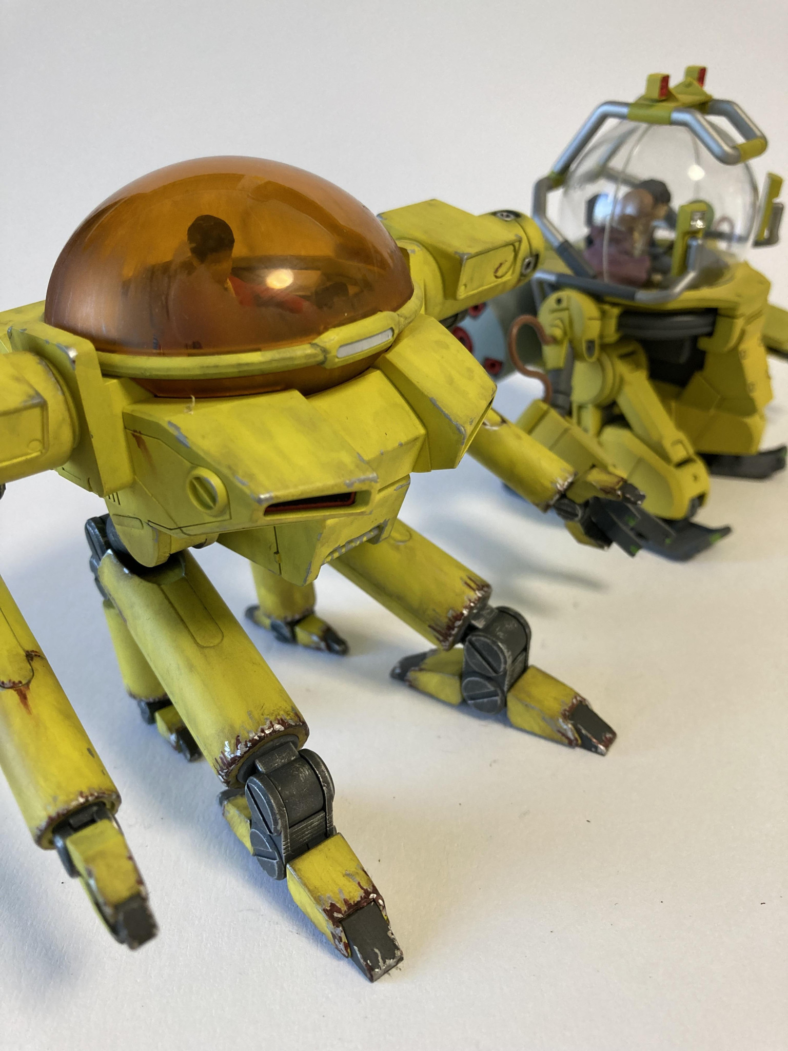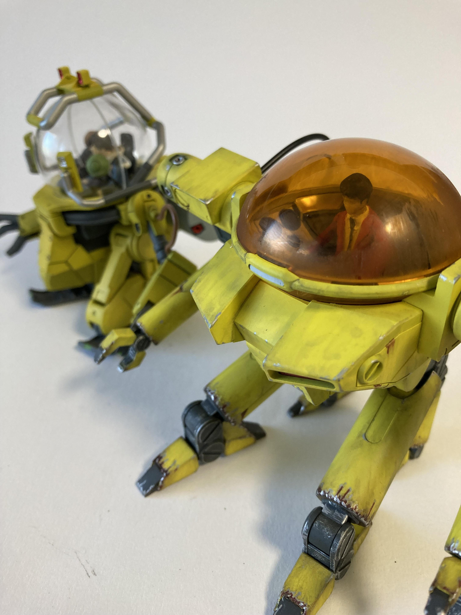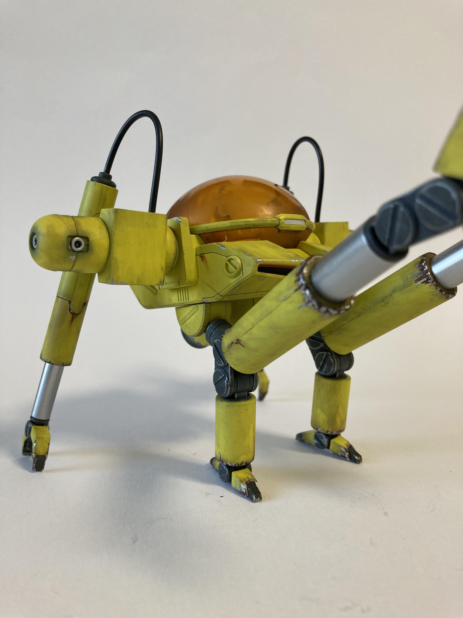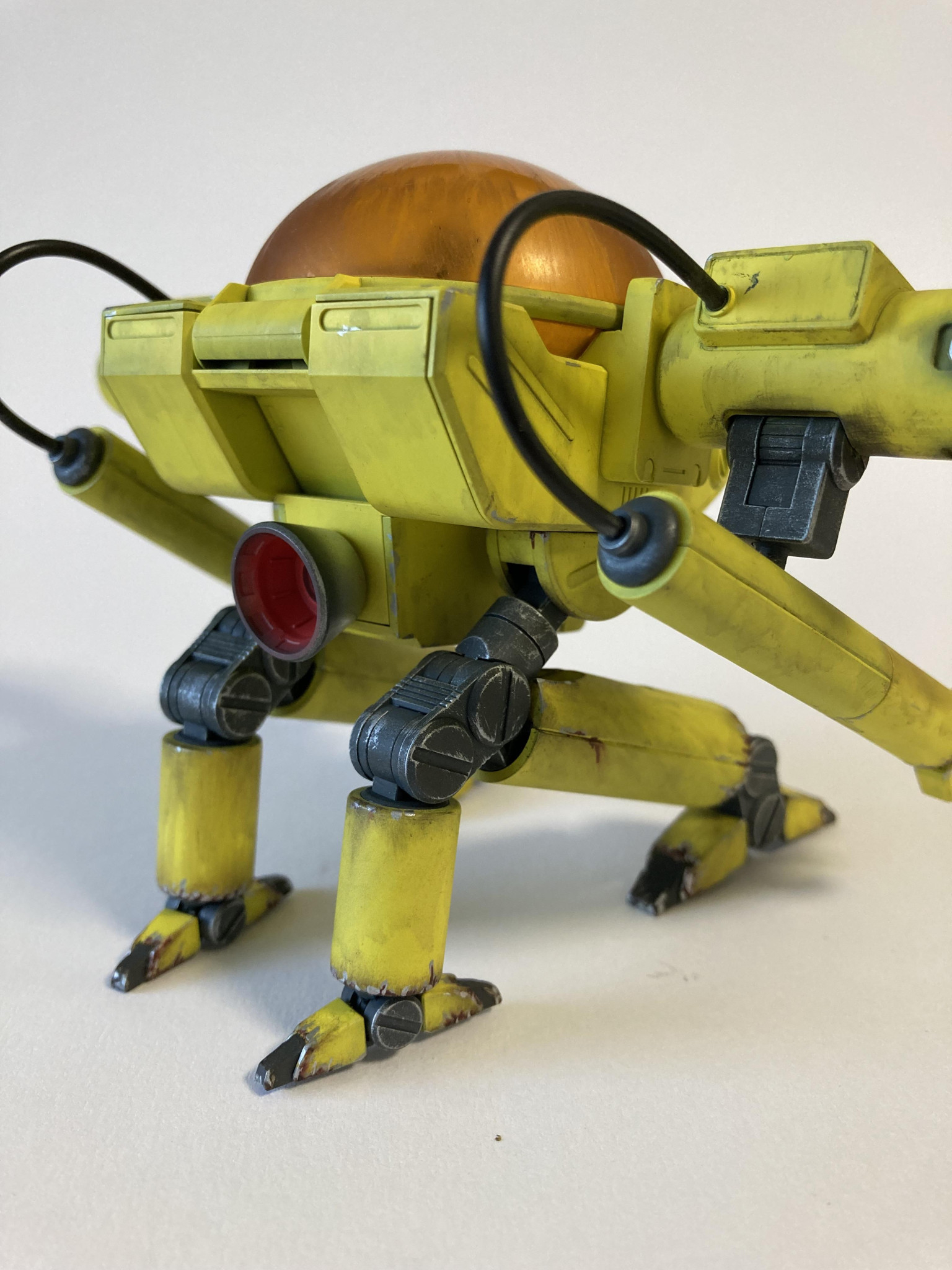 塗装は黒サフ→下地ホワイト→キアライエローです。グラデを我慢しフラット塗装からのウェザリングです。