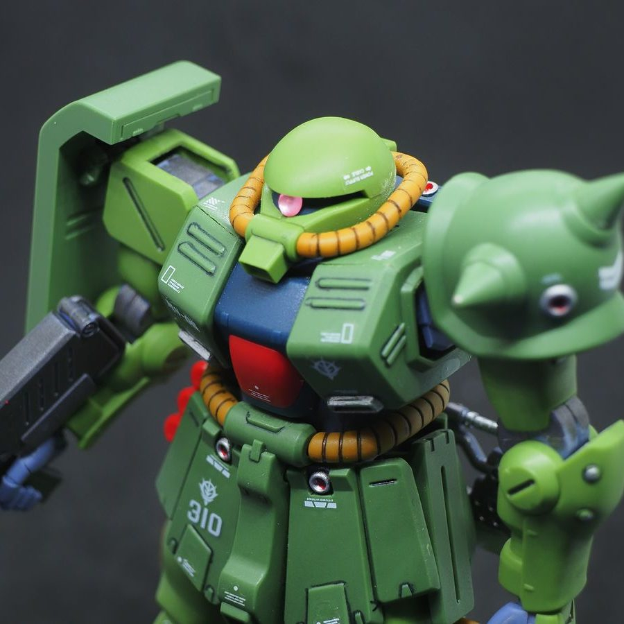 全塗装が出来ない人なので、成型色仕上げでカッコ良く出来るかが私の狙いです(zaku-kao5)