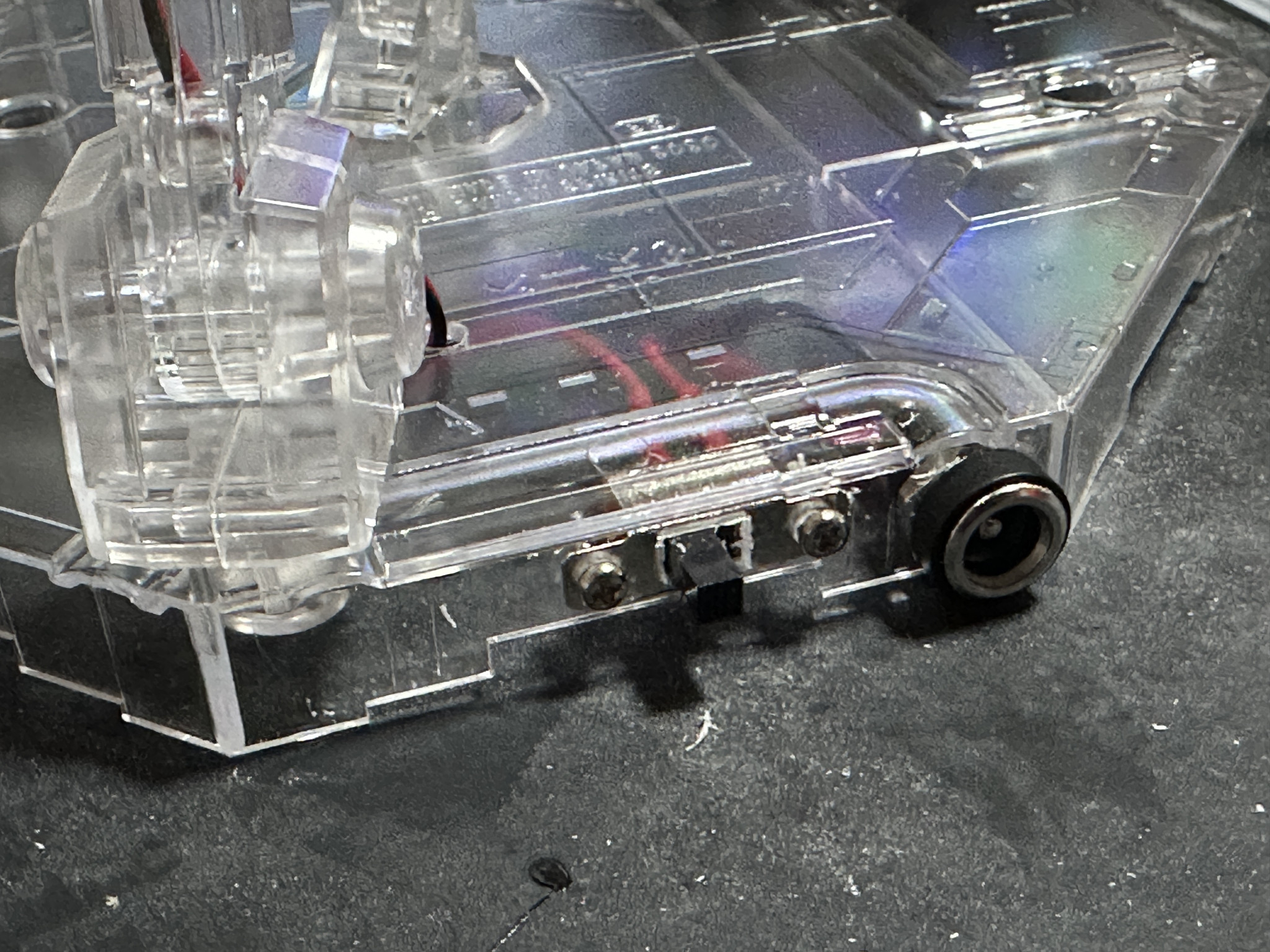 電源は外部電源としアクションベースの支柱の中に配線を埋め込み接続部にコネクタを仕込んであります