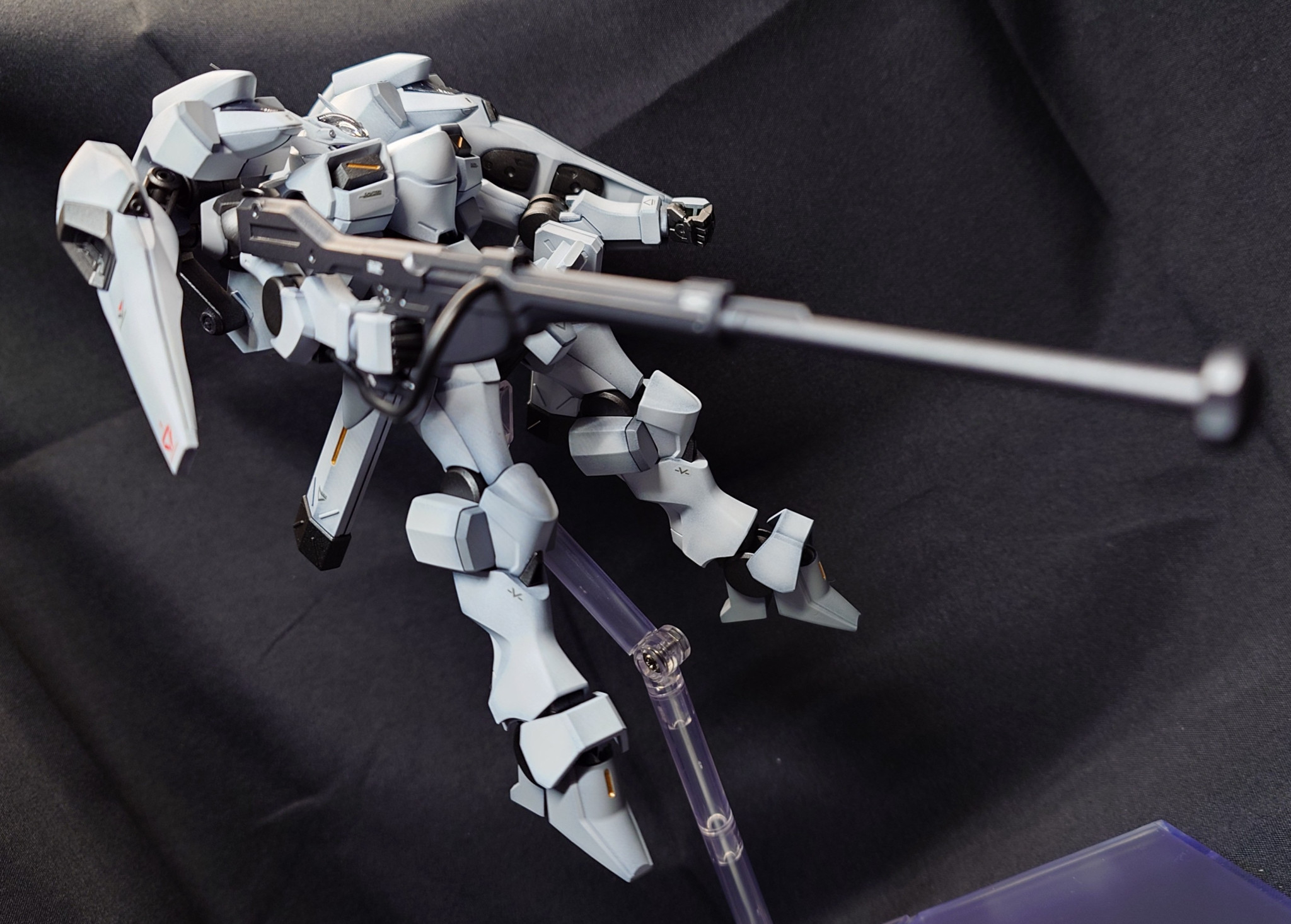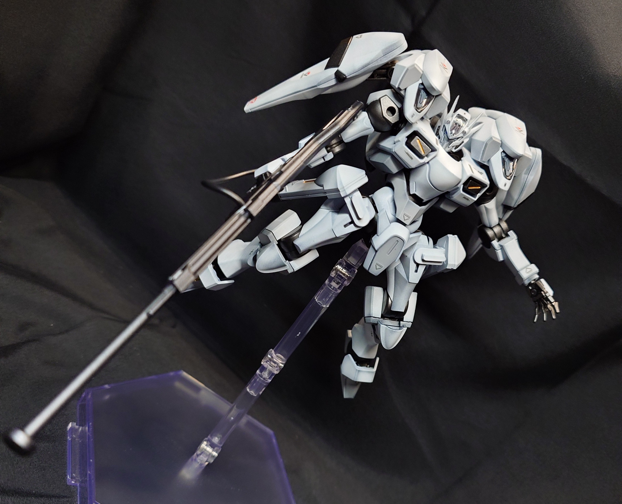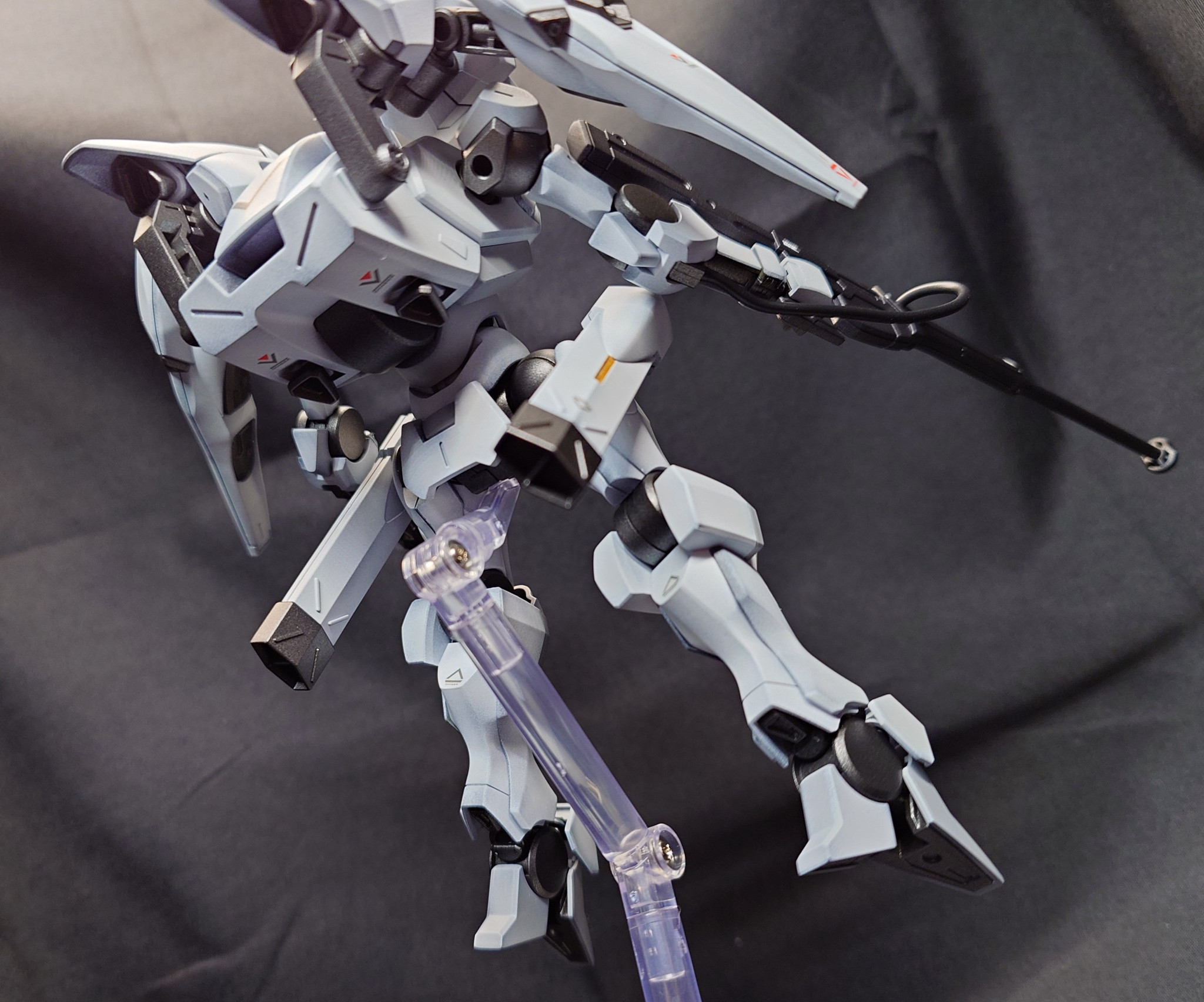 頭部アンテナはファラクトのものより短くしています。まだガンドアームは搭載はしたものの運用まで至っていないというイメージです。
