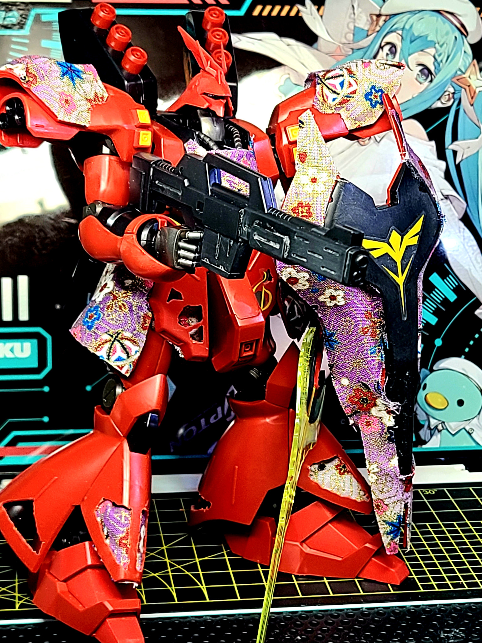 三河サブ郎 HG 2026.01/13更新 サザビー ハレの日 40 10 いいねしたモデラー(10) 0 0 作品を共有 サザビーを成人の日ってことで端切れ布を張り合わせて着物を着てる風に。 前垂とアンクルカバーは彫り抜きして裏から布を貼り合わせてみた。後ろも布貼った後に切り抜いて柄を一体に揃うようにリューターというものを買ってみたが面白いくらいよく彫れた。ちょっと大きめに切って貼り付けてナイフで端を裂いていく サザビー 2026年最新作 新成人の皆さんおめでとうございます。 コメント コメントをして応援しよう コメントにはログインが必要です 三河サブ郎 プラモ歴5年。 ほぼ素組。月に1個は塗装したい。 7 シャア専用ズゴック MGシャア専用ズゴック完成。 HGは3体RGは2体作ってきた… 4 ウーンドウォート サイコブレードカスタム仕様 ウーンドウォート サイコブレードカスタム仕様完成。 小さいな… 4 リックドム青鬼 今年最後のガンプラその2 青鬼をイメージしたGQリックドム。 4 リックドム赤鬼 2025年最後のガンプラその1 赤鬼をイメージしたGQリック… 三河サブ郎さんのページ この作品をお薦め作品に設定する Please login to update your profile! Please login to update your profile! Please login to update your profile! Please login to update your profile!